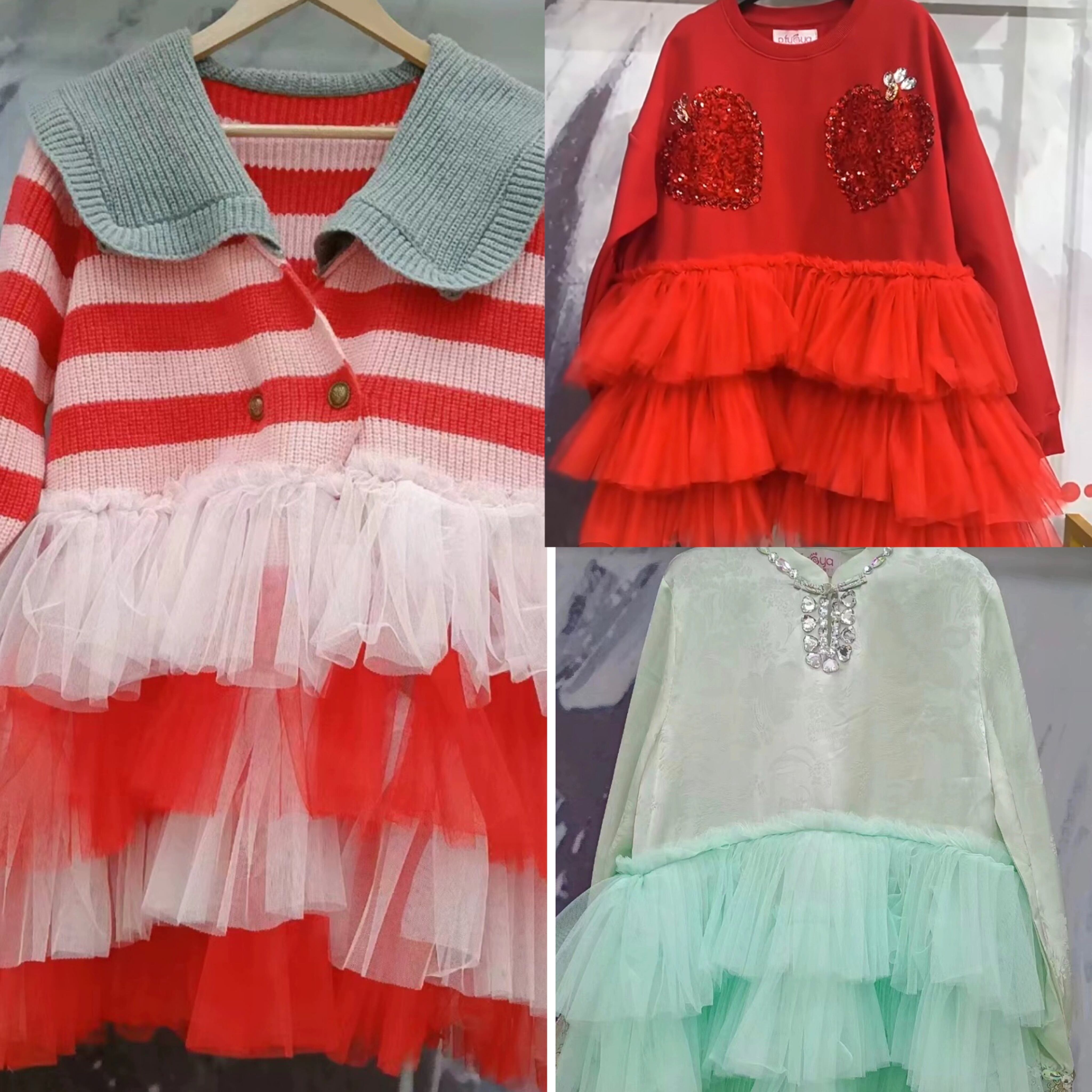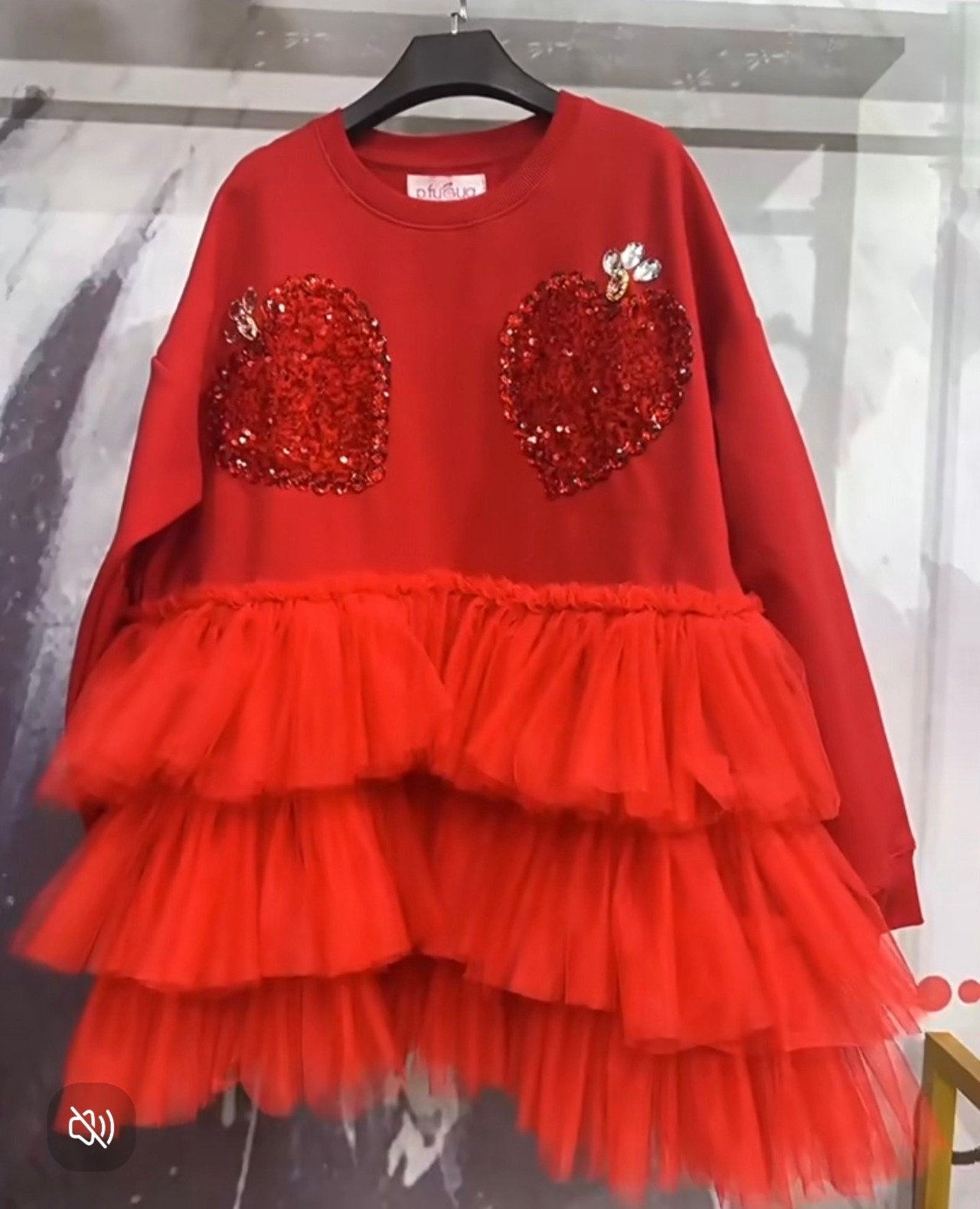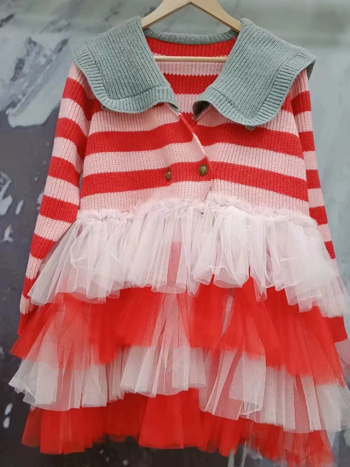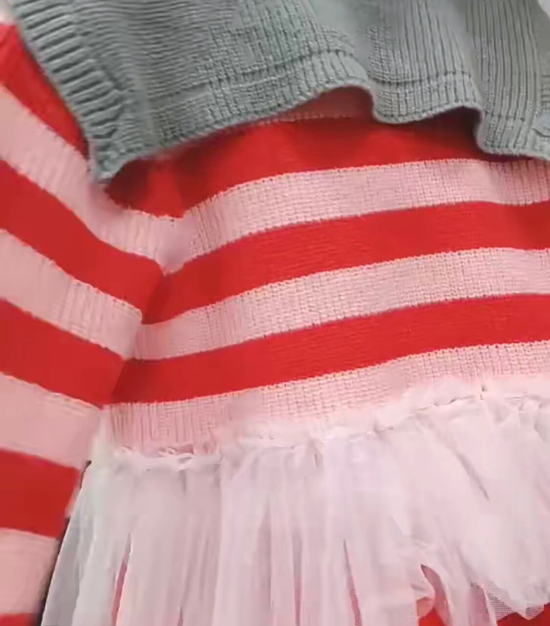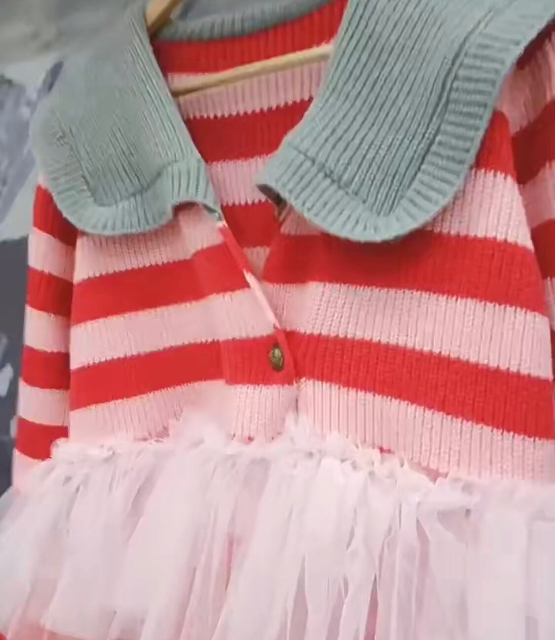 赤 ボーダー ピンク 赤 セーター ハート キラキラ ワンピース ワンピース ニット ラインストーン