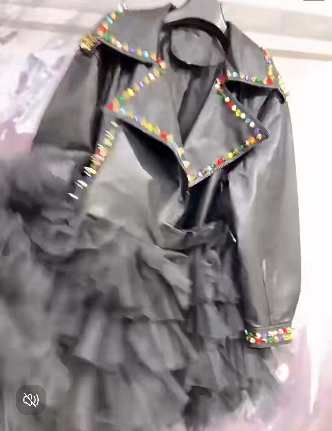 黒 レザー ジャケット アウター スタッズ コート ブラウス ブラック フリル ロック ワンピース