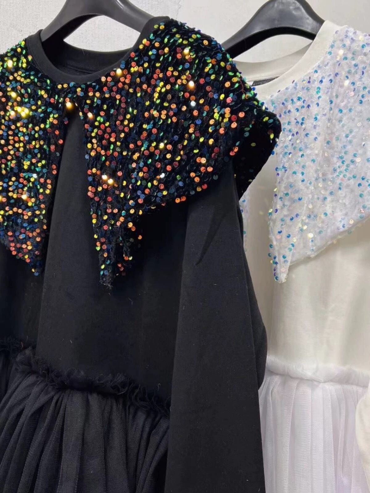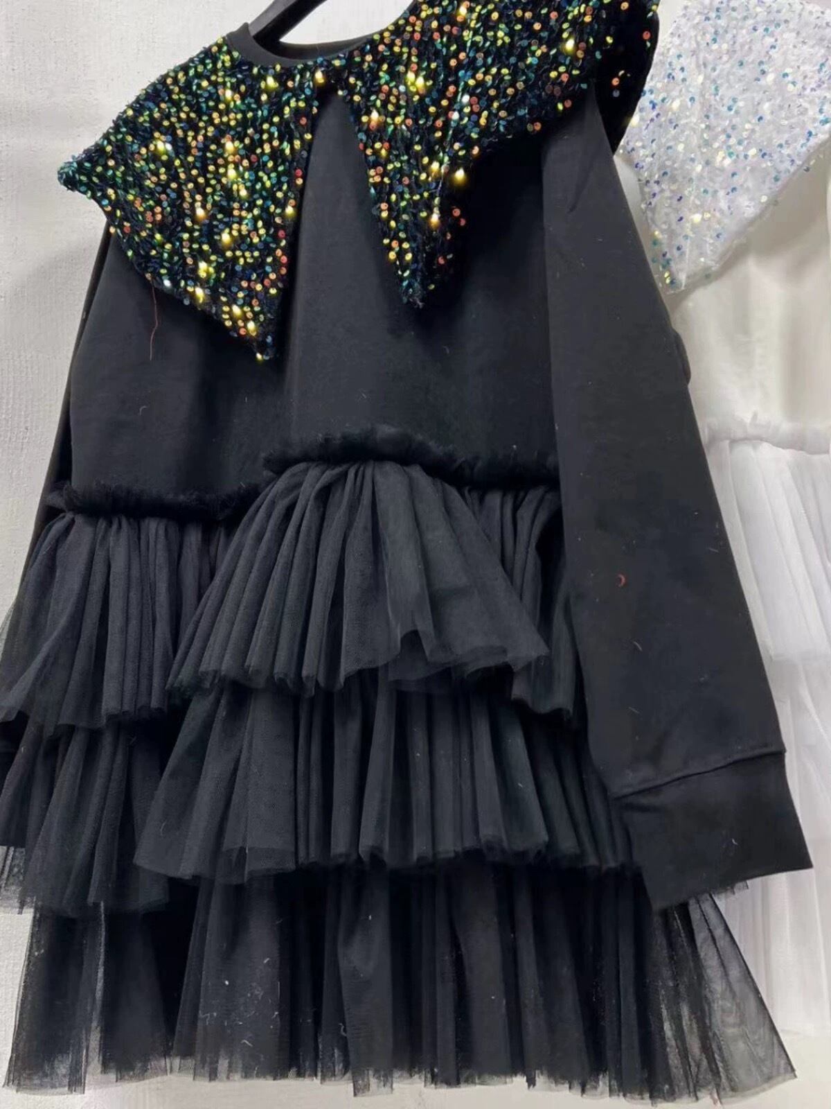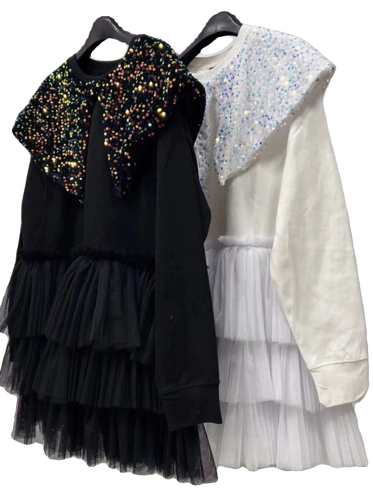 【特設ページ】キラキラ スパンコール 白 黒 カジュアル 襟 ワンピース 黒 白 デカ襟 スウェット
