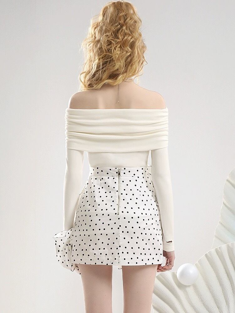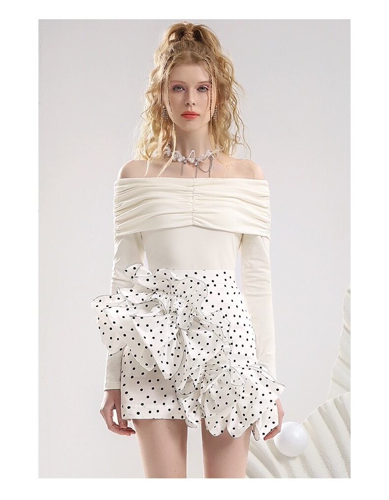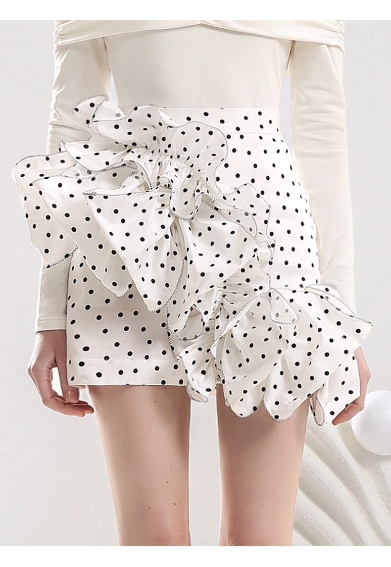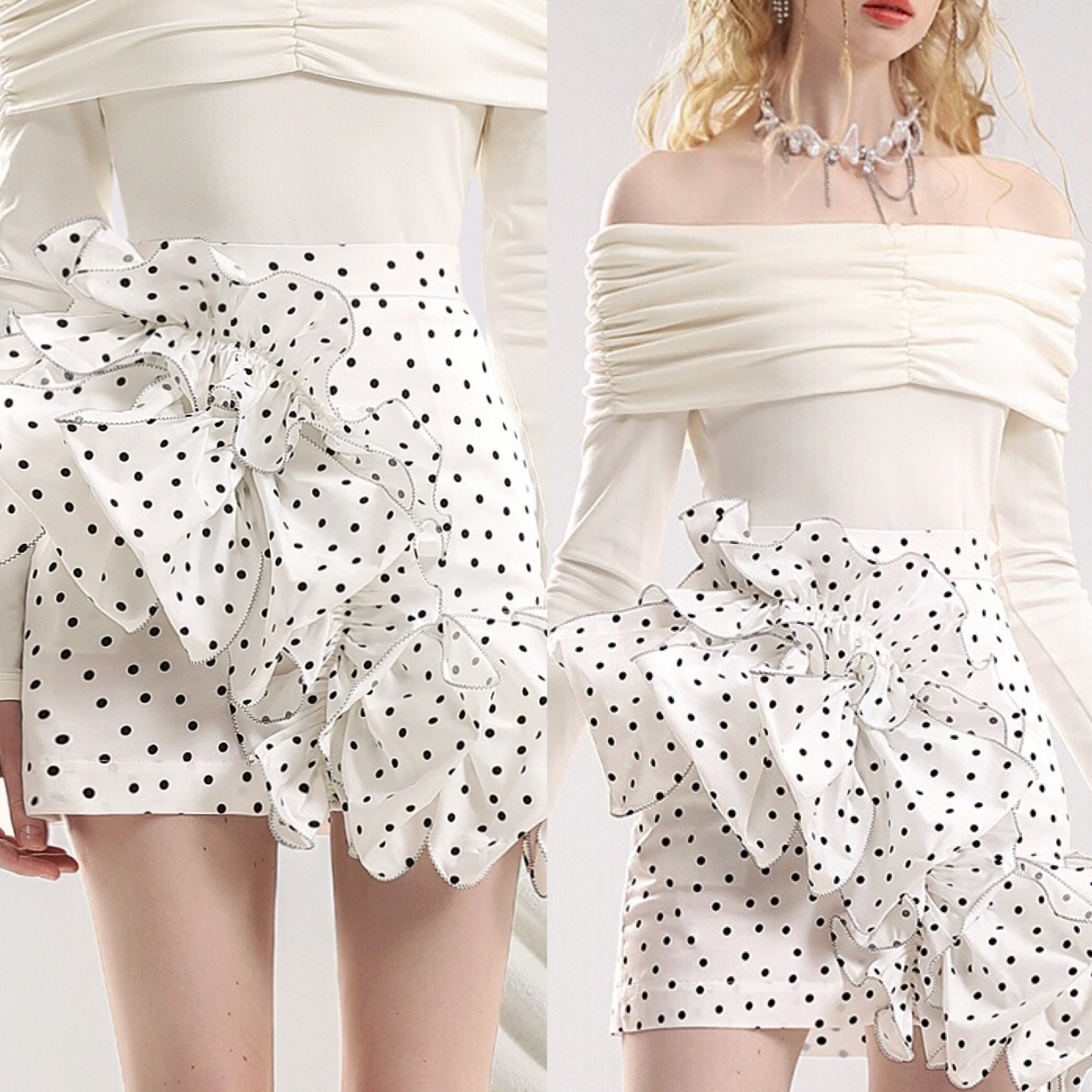 水玉 ドット 白 黒 リボン ガーリー エレガント ミニスカート ボトムス ドレス ワンピース