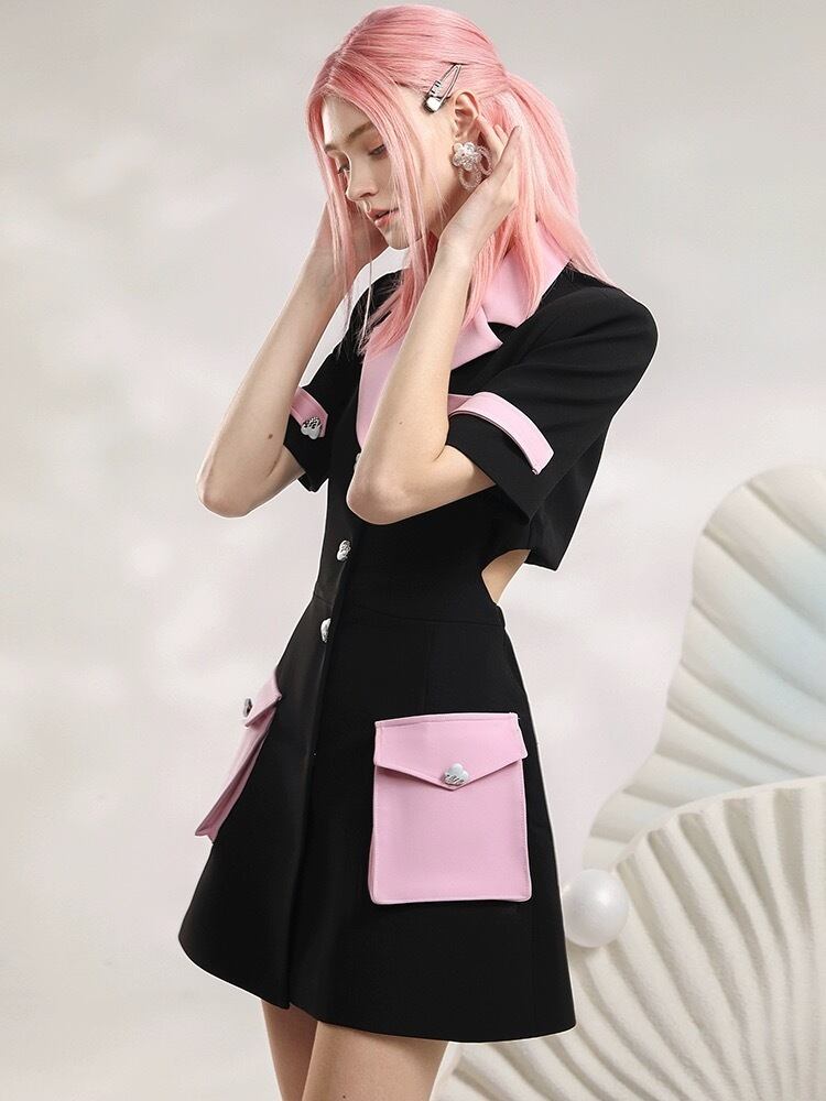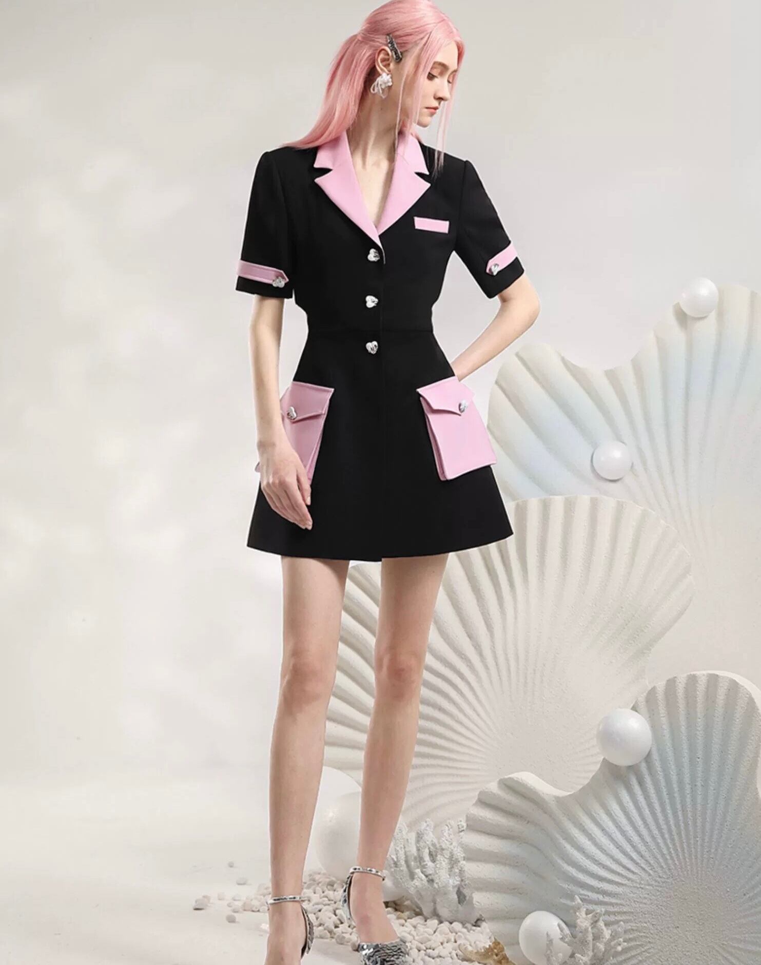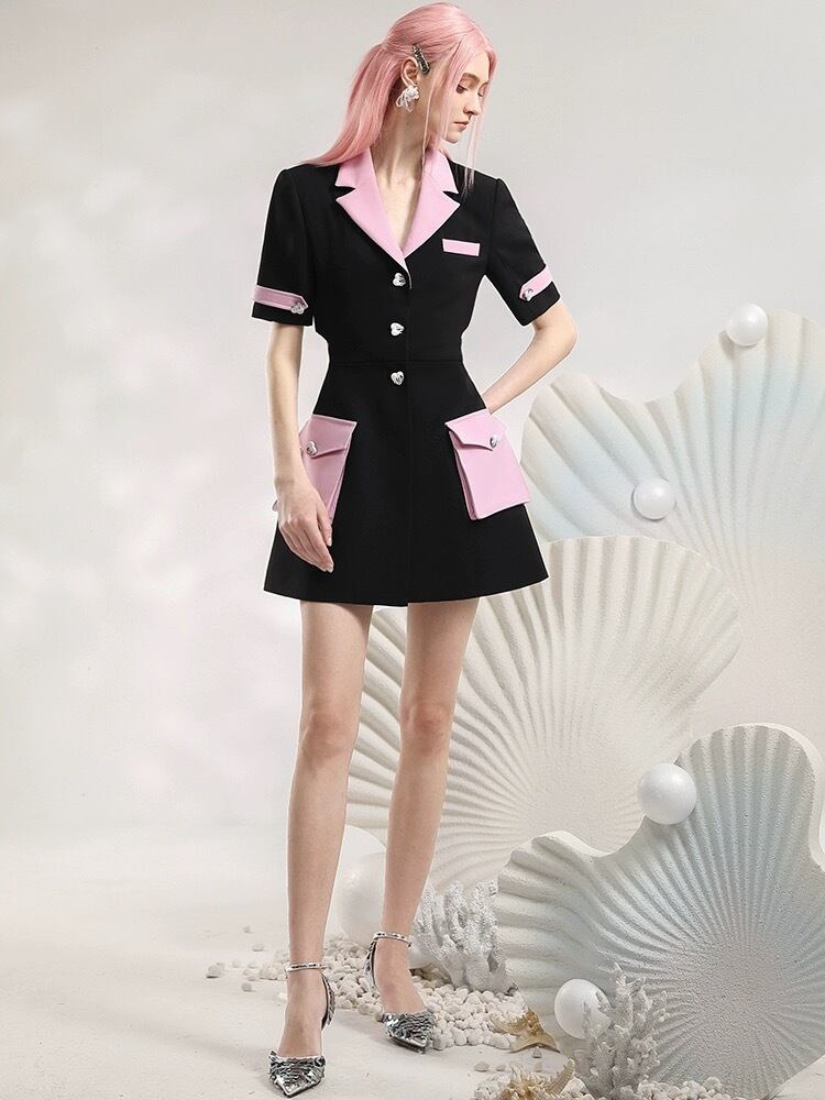 ワンピース ジャケット ピンク 黒 ハート エレガント ポケット ガーリー 可愛い スーツ アウター カーディガン