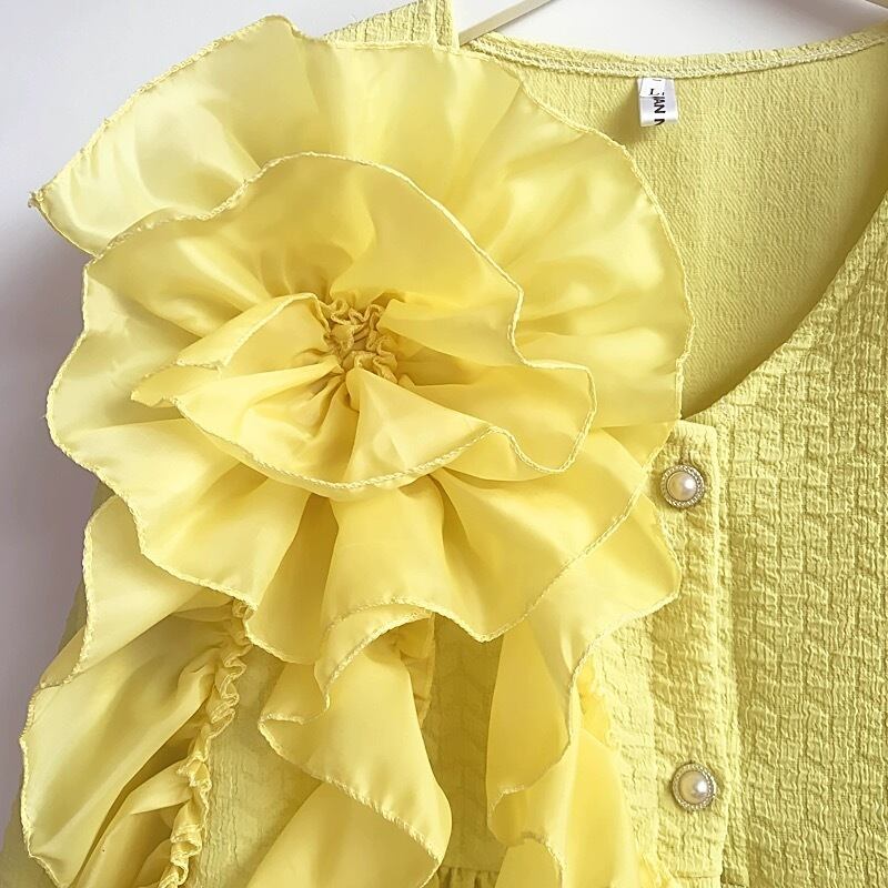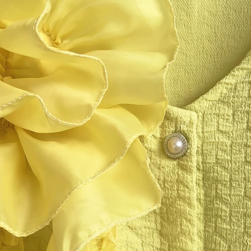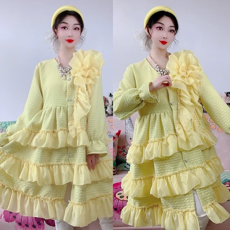 黄色 フリル カーディガン ゆったり ワンピース アウター トップス デコレーション
