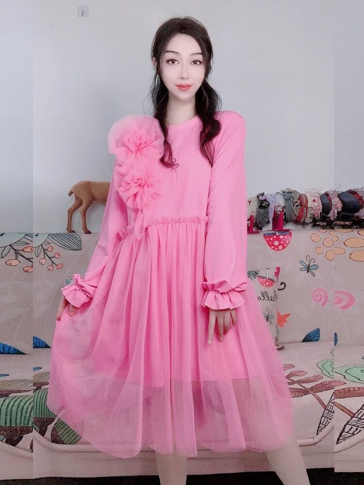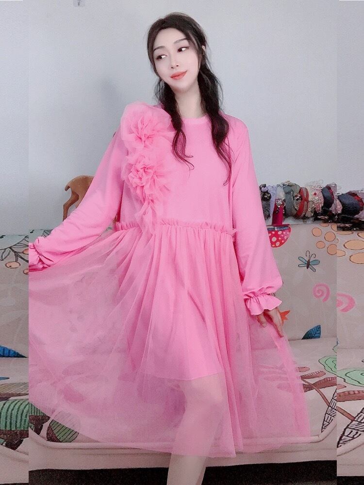 ピンク ゆったり ワンピース カジュアル ふり