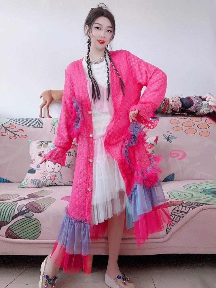 カジュアル ピンク 紫 カーディガン ワンピース