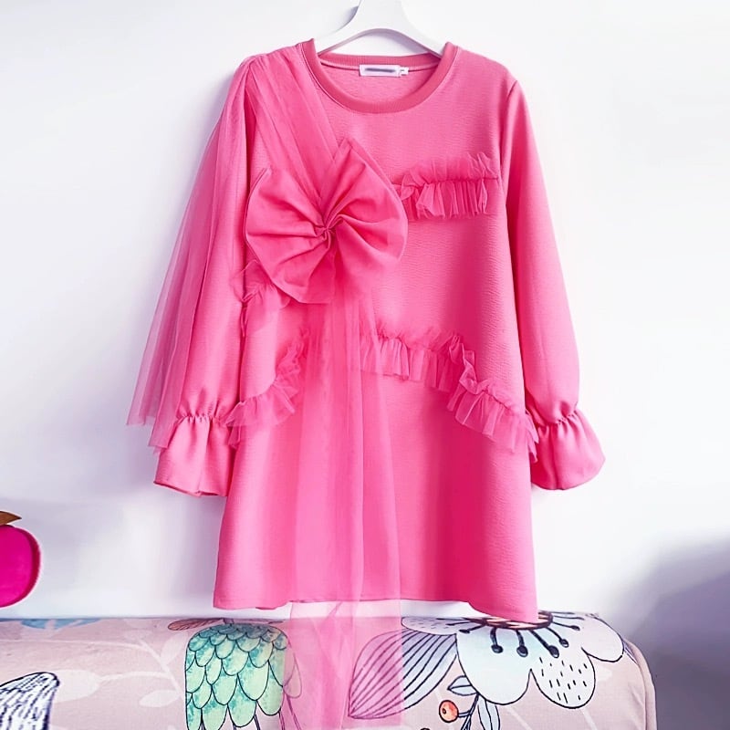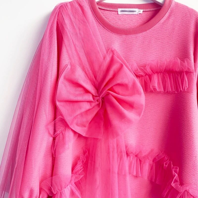 リボン ワンピース ピンク 水色 緑 カジュアル