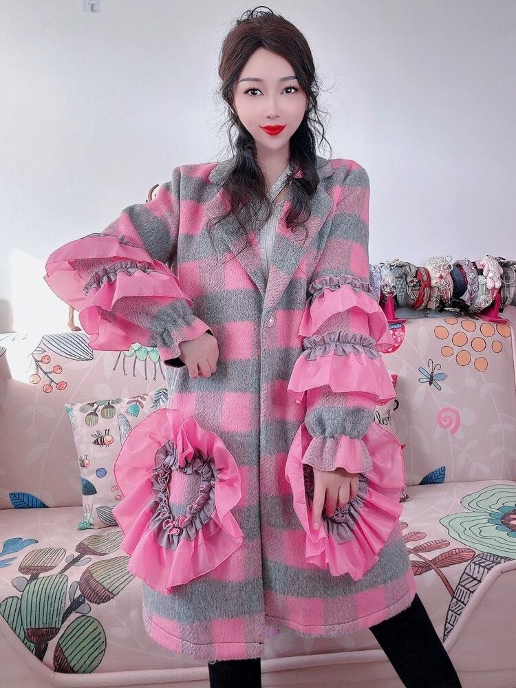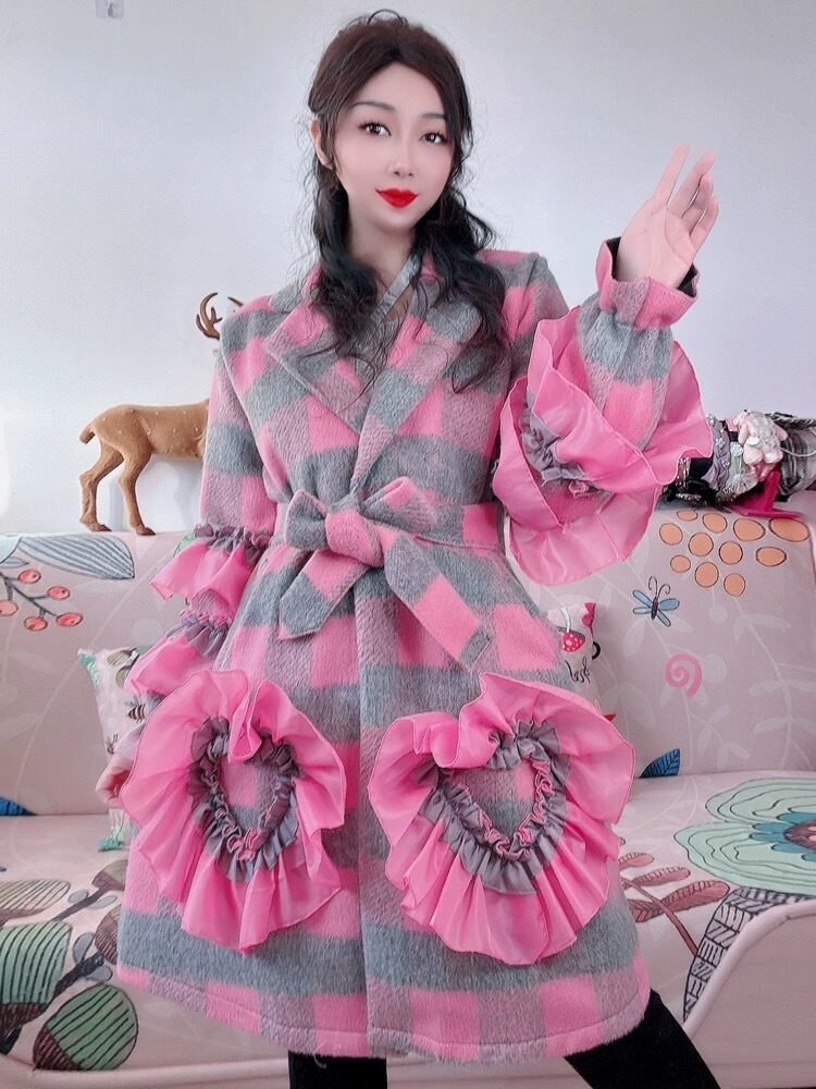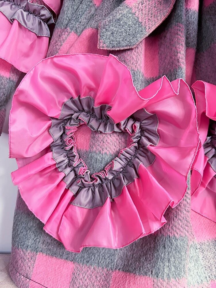 チェック ピンク グレー ワンピース ハート コート アウター ジャケット