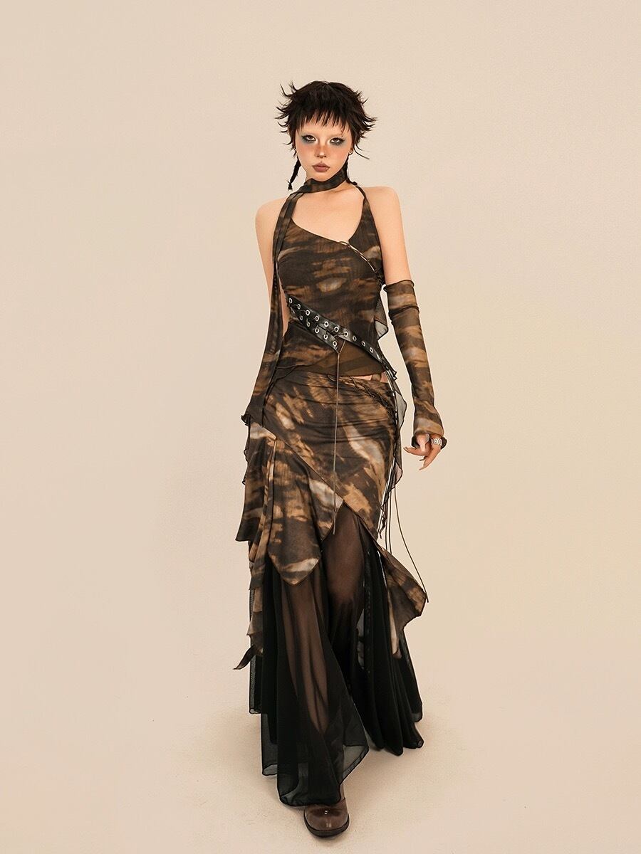スカート マキシ ゆったり 茶色 黒 ボトムス