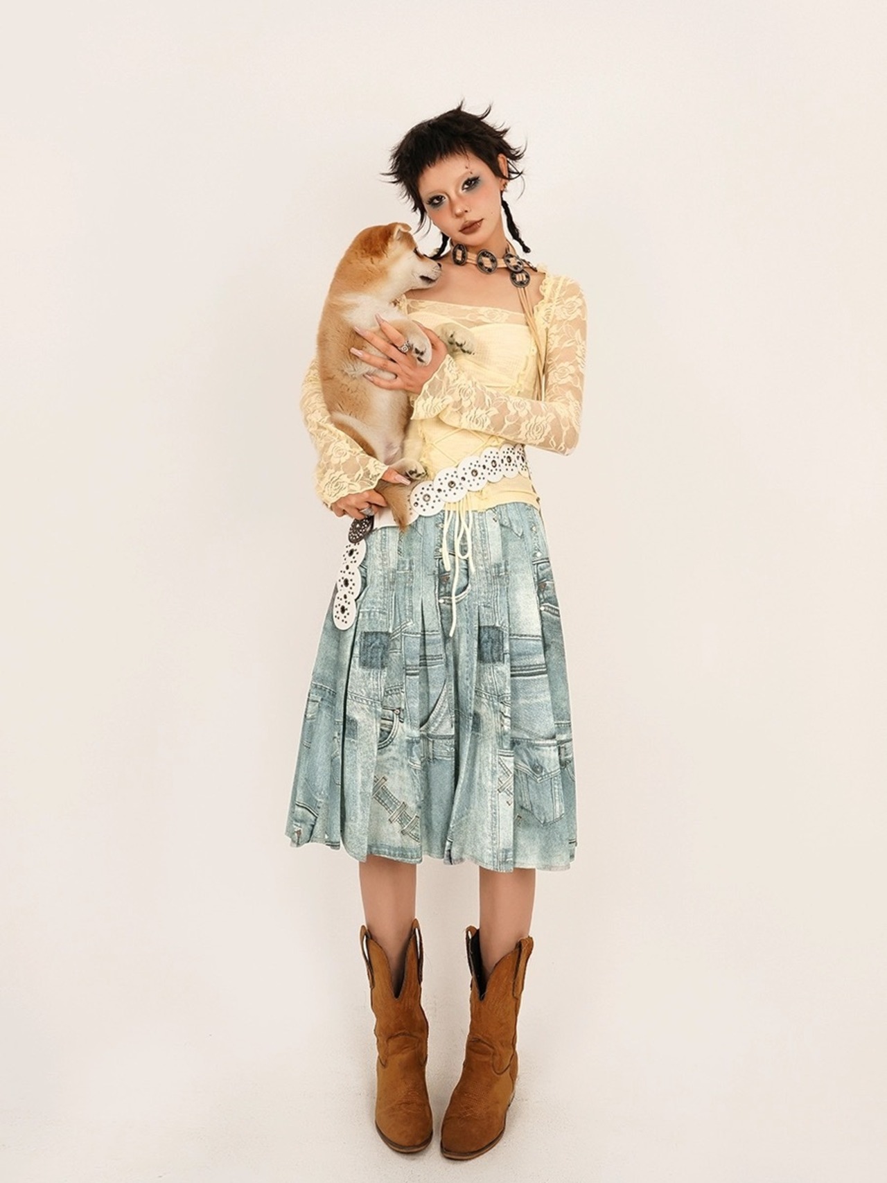 デニムカラー 水色 プリーツスカート ボトムス カジュアル シンプル