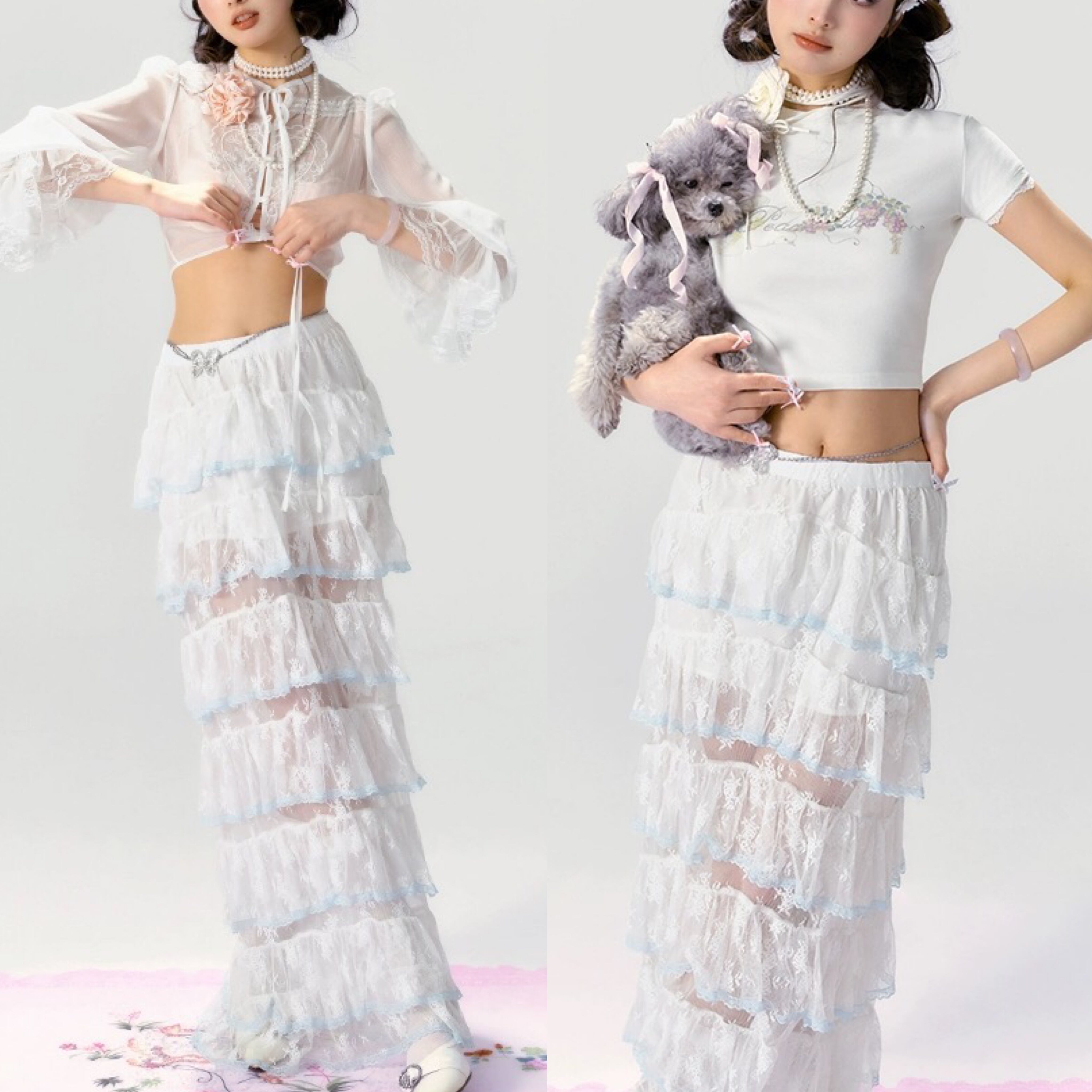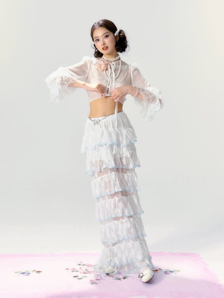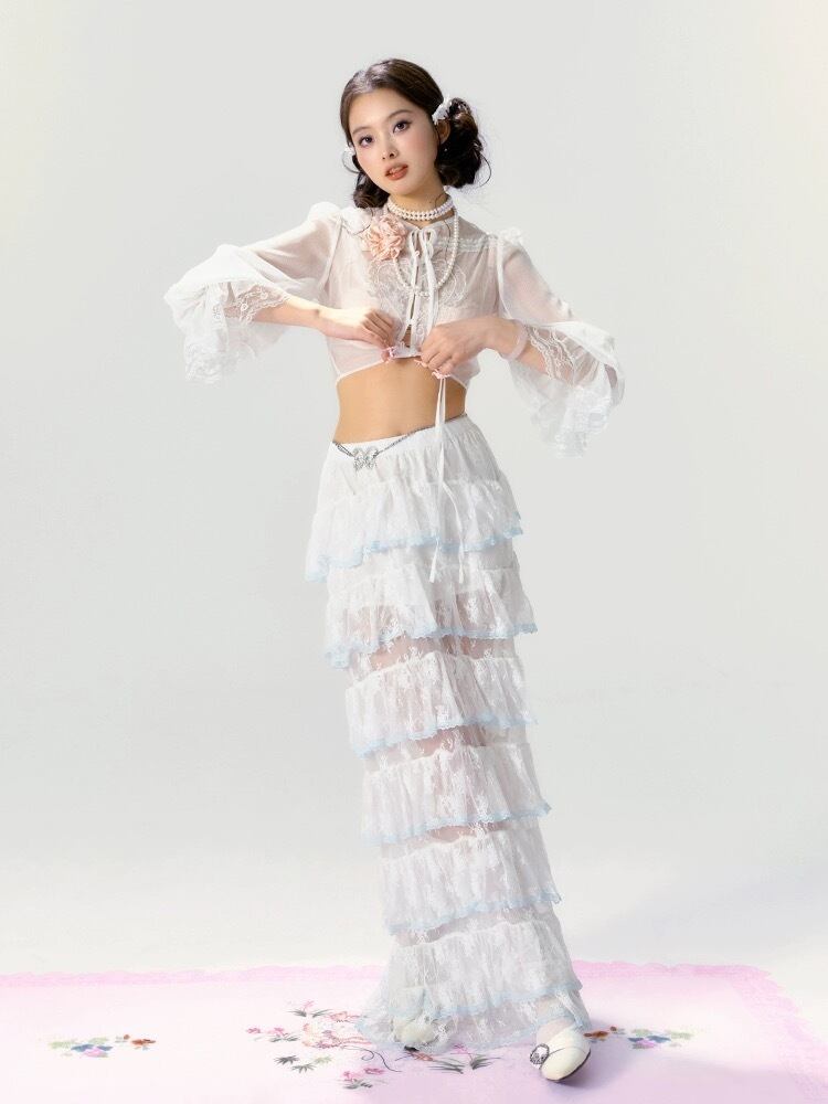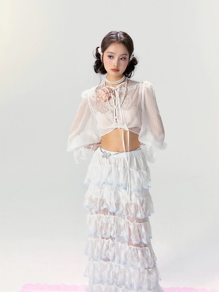 【ボトムス】スカート 白 ガーリー フリル リボン シースルー