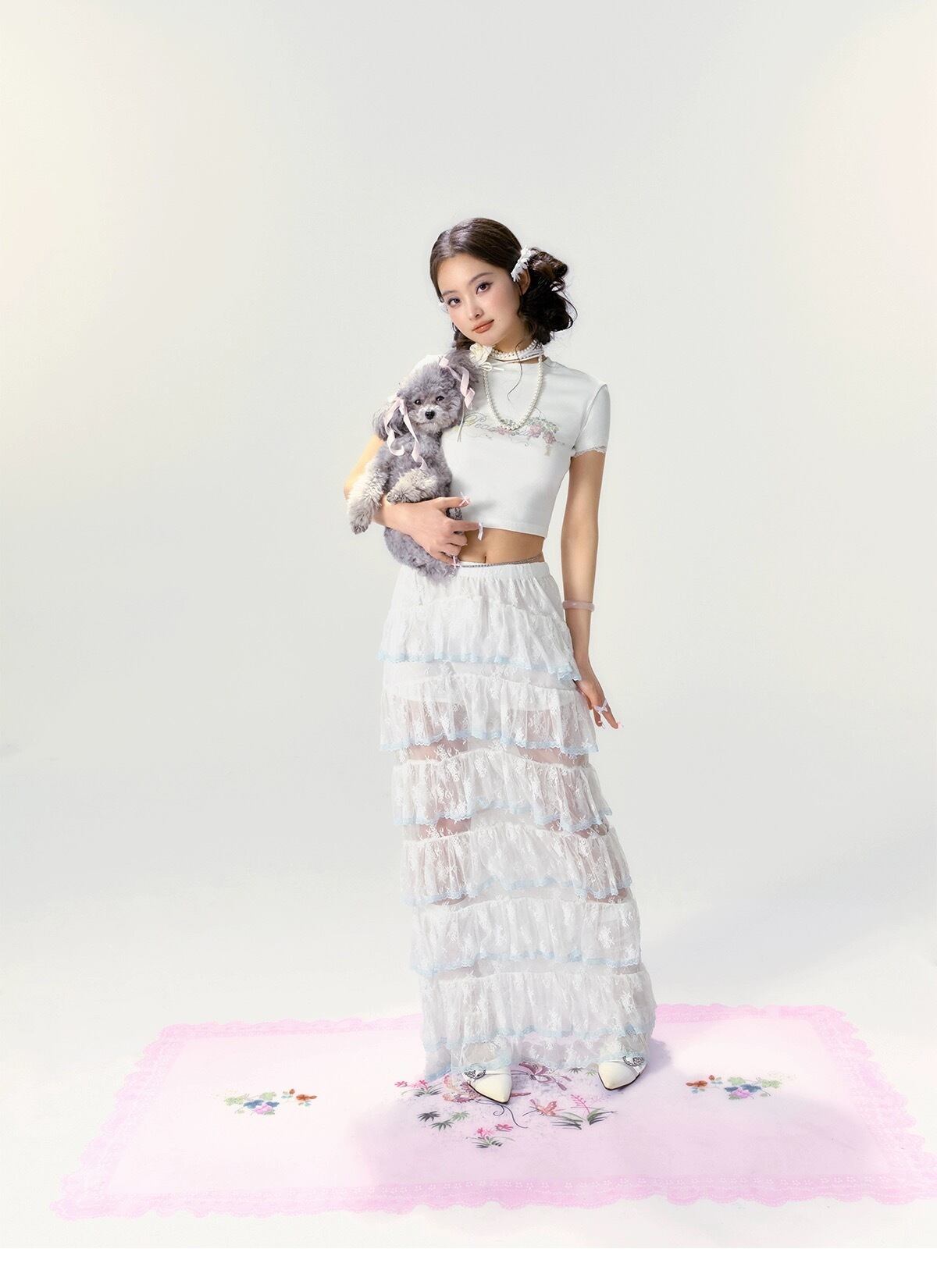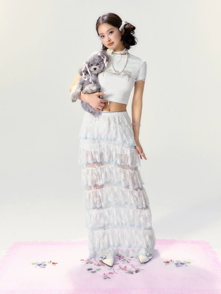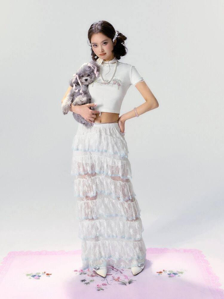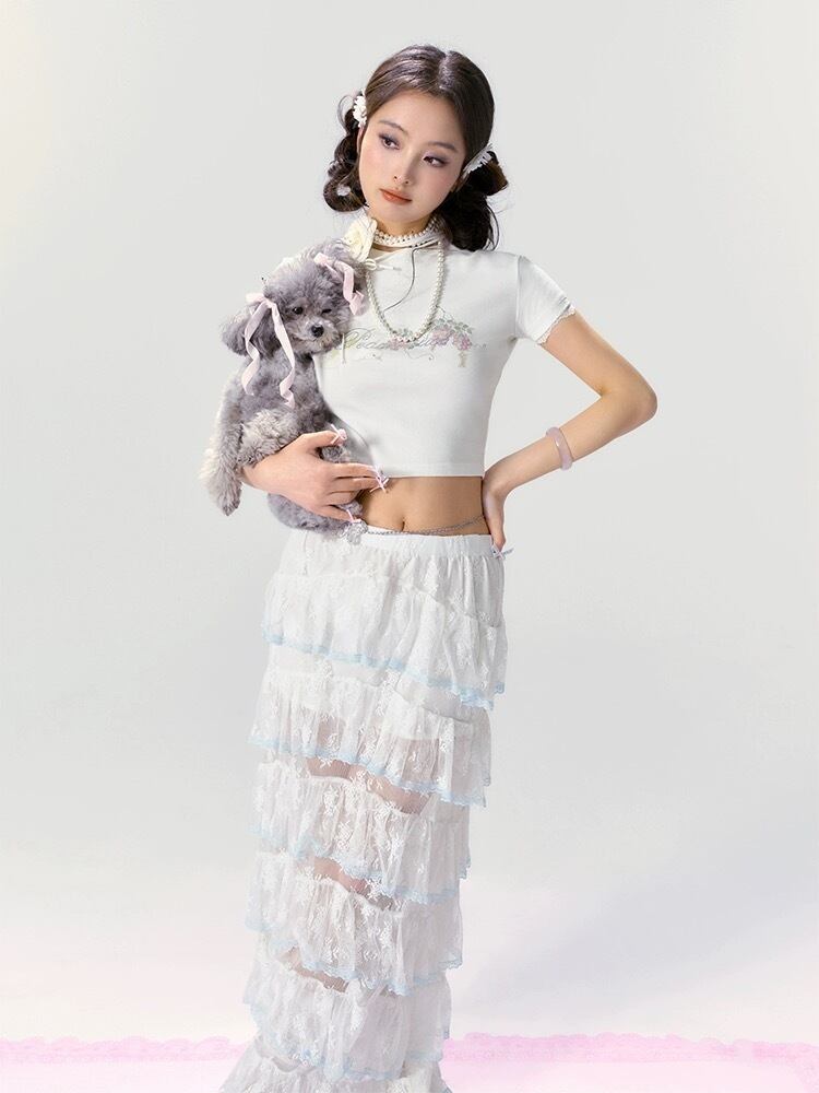 【ボトムス】スカート 白 ガーリー フリル リボン シースルー