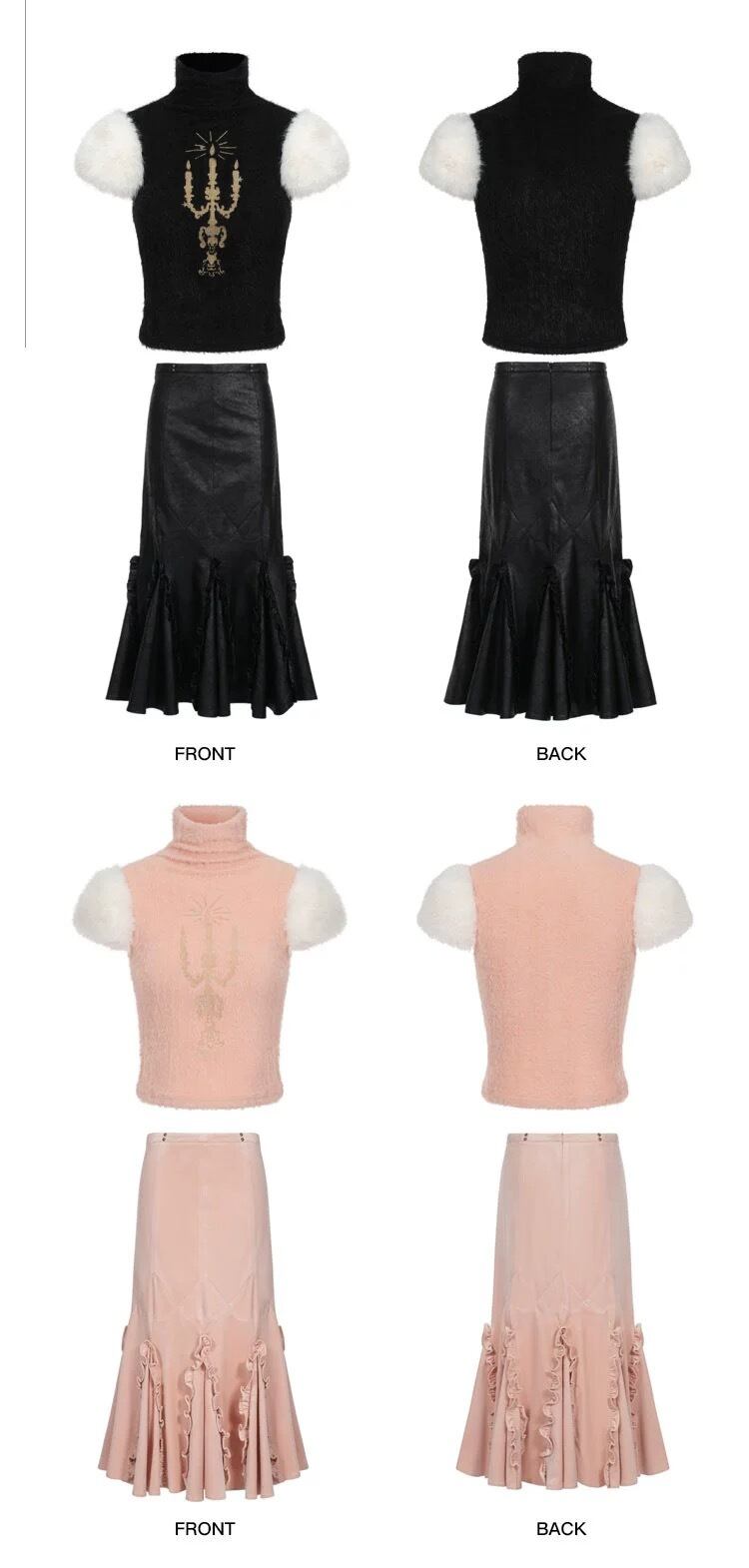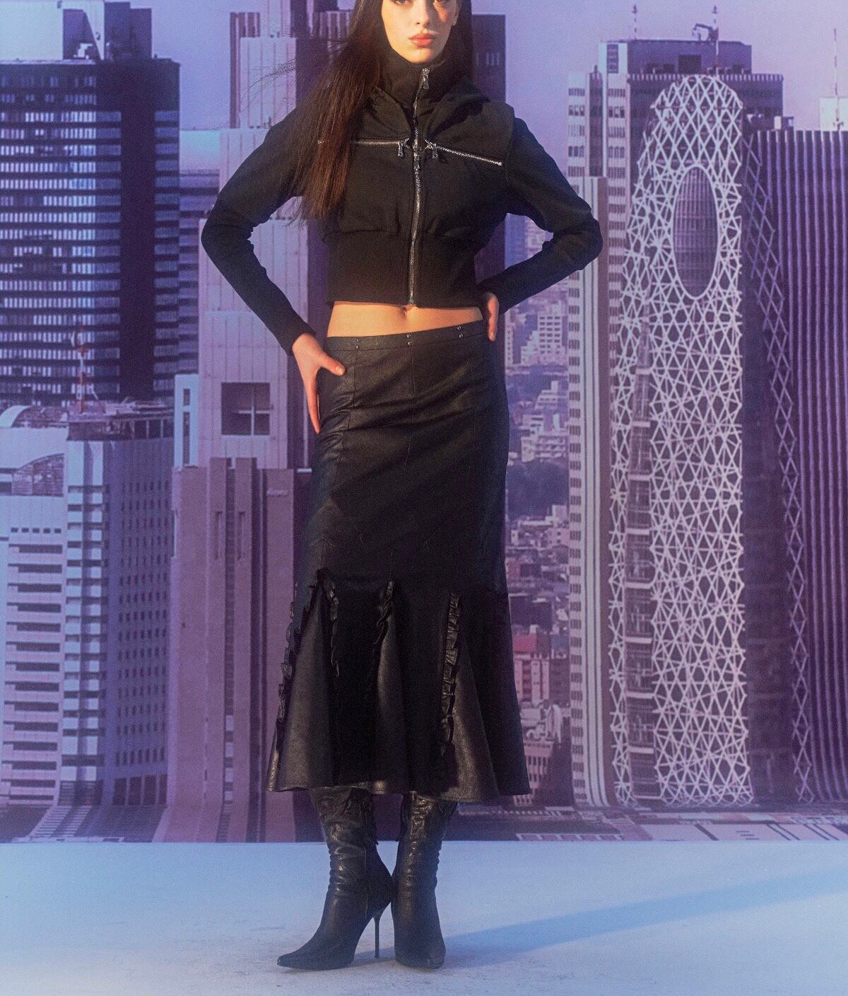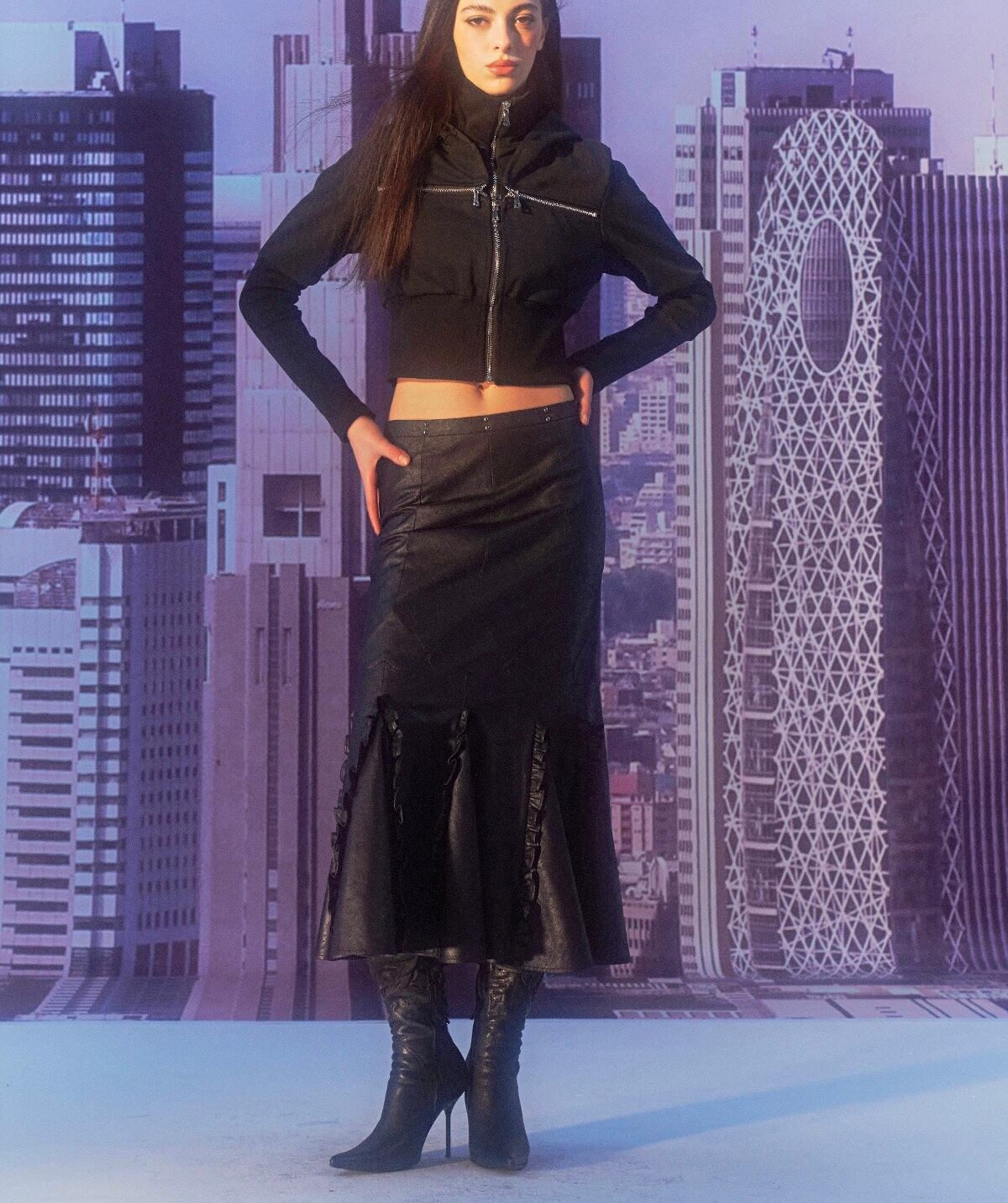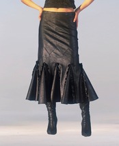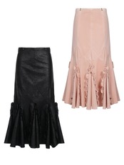 【ボトムス】黒 ピンク レザー マキシ フリル