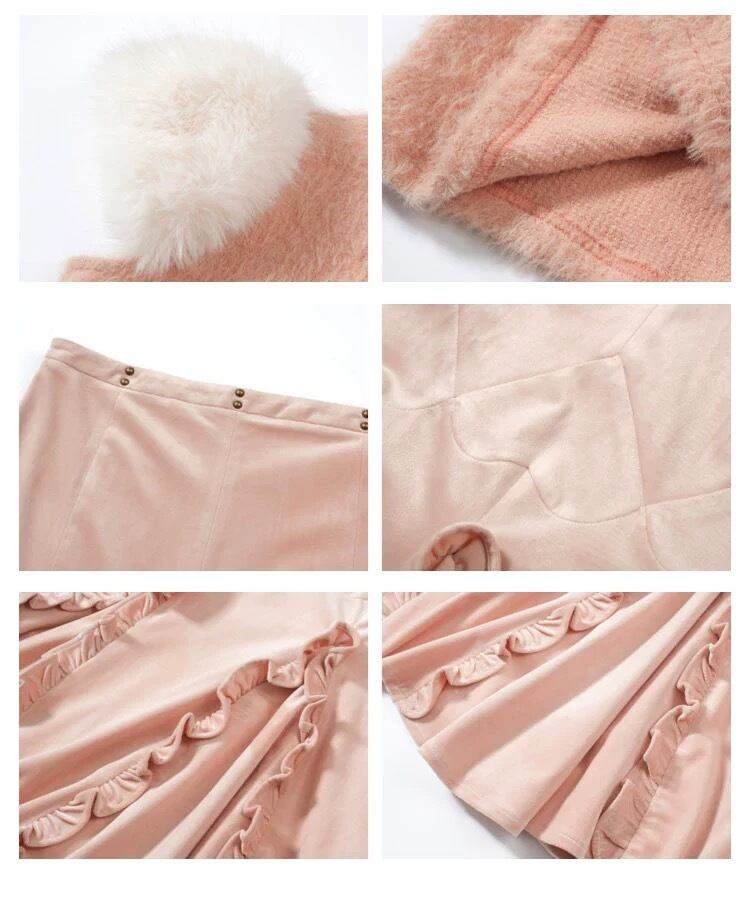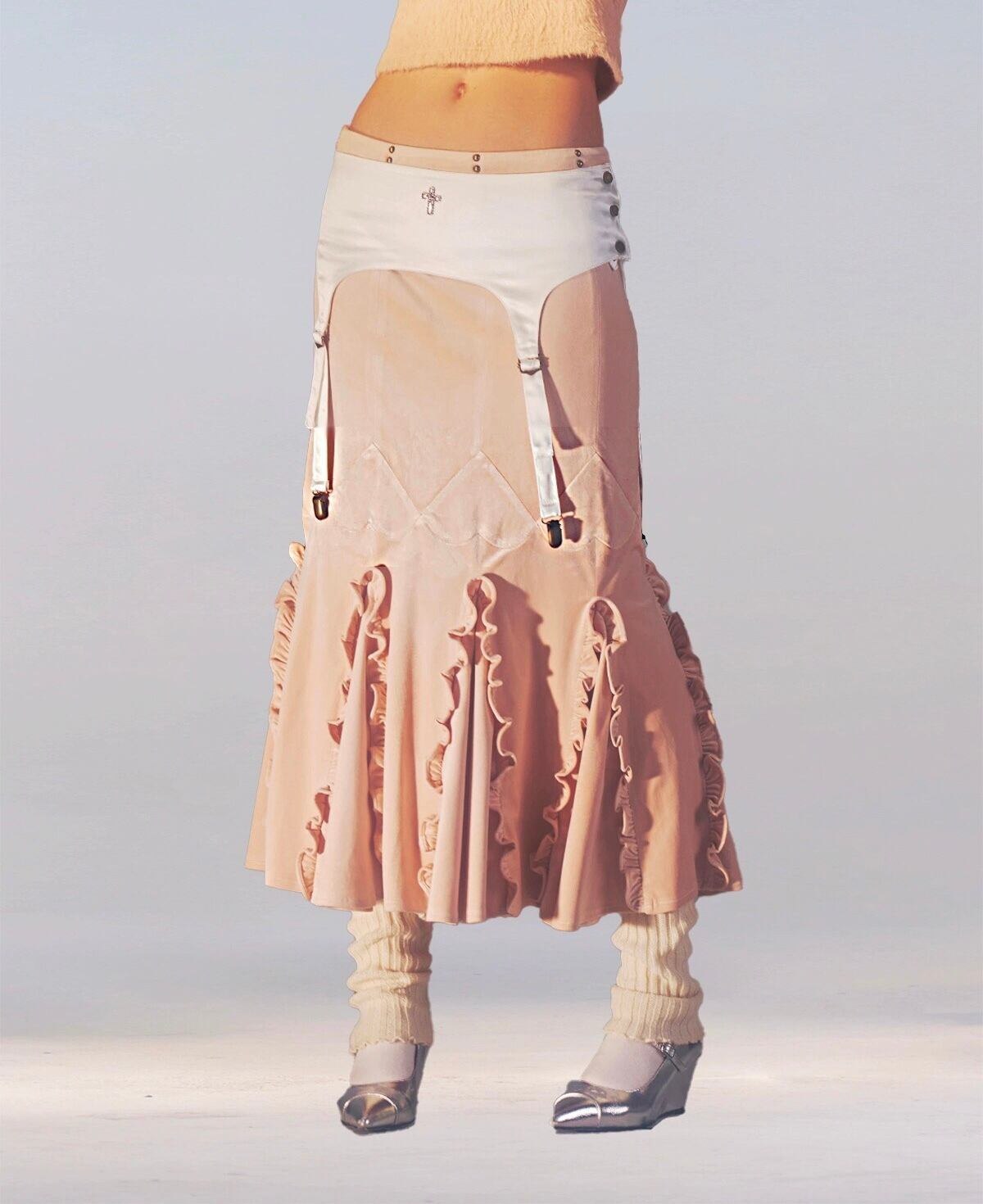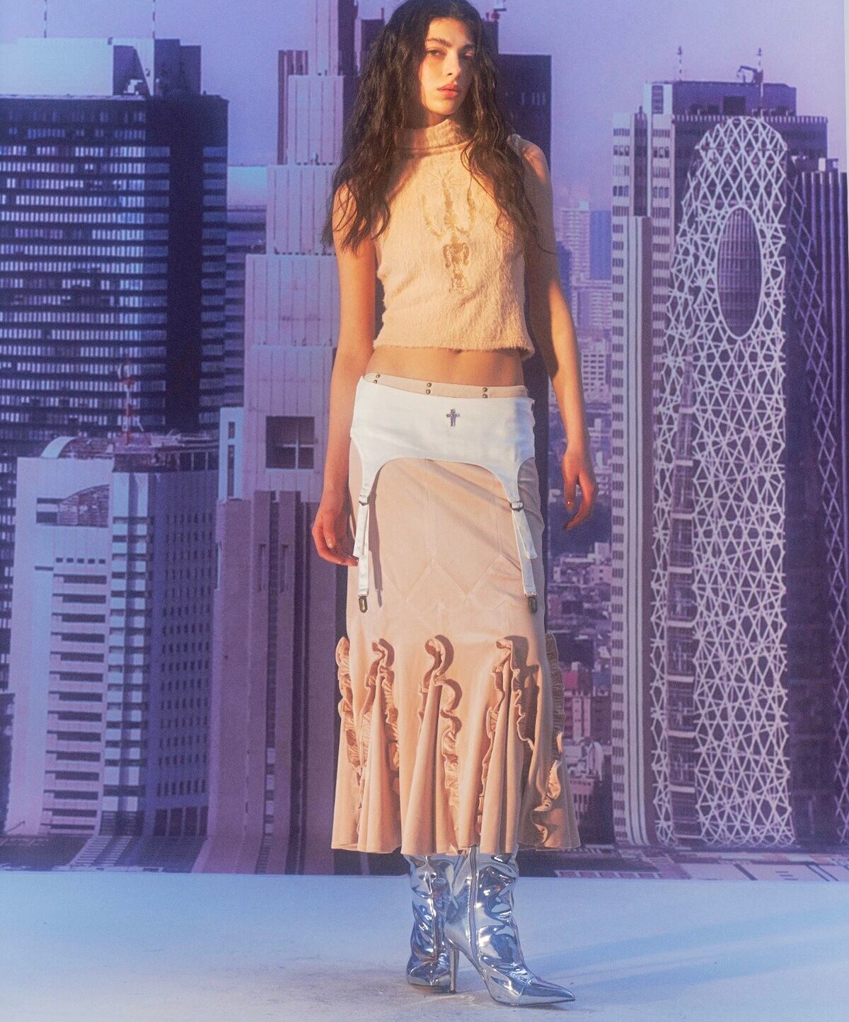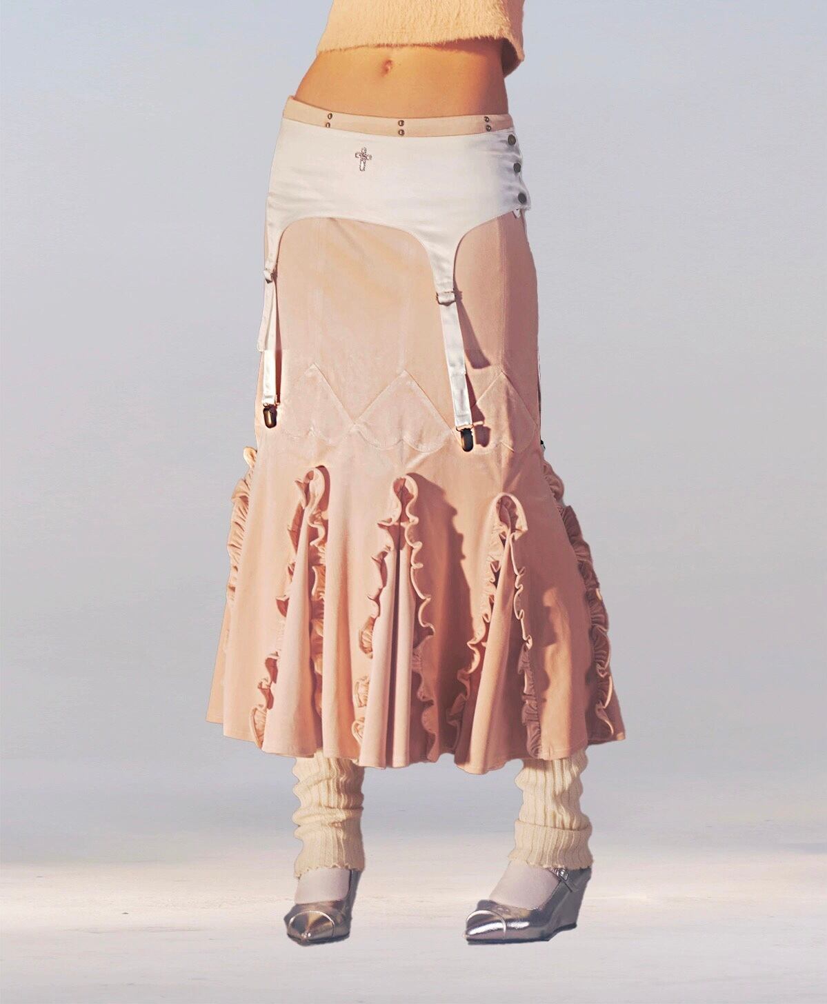 【ボトムス】黒 ピンク レザー マキシ フリル