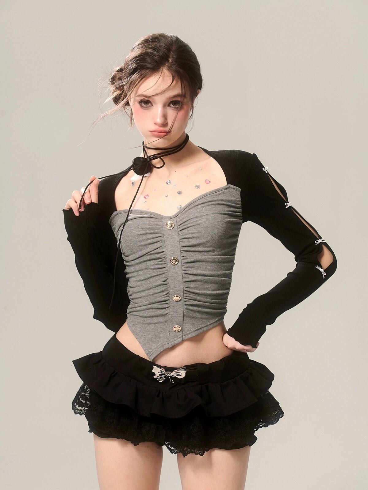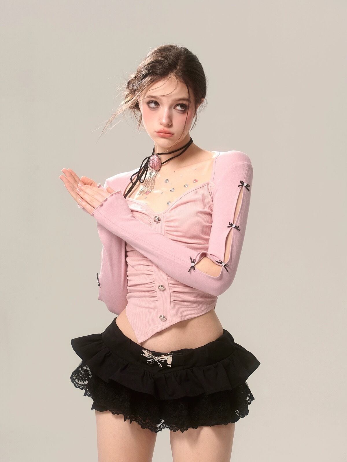 トップス 黒 グレー ピンク カーディガン ブラウス
