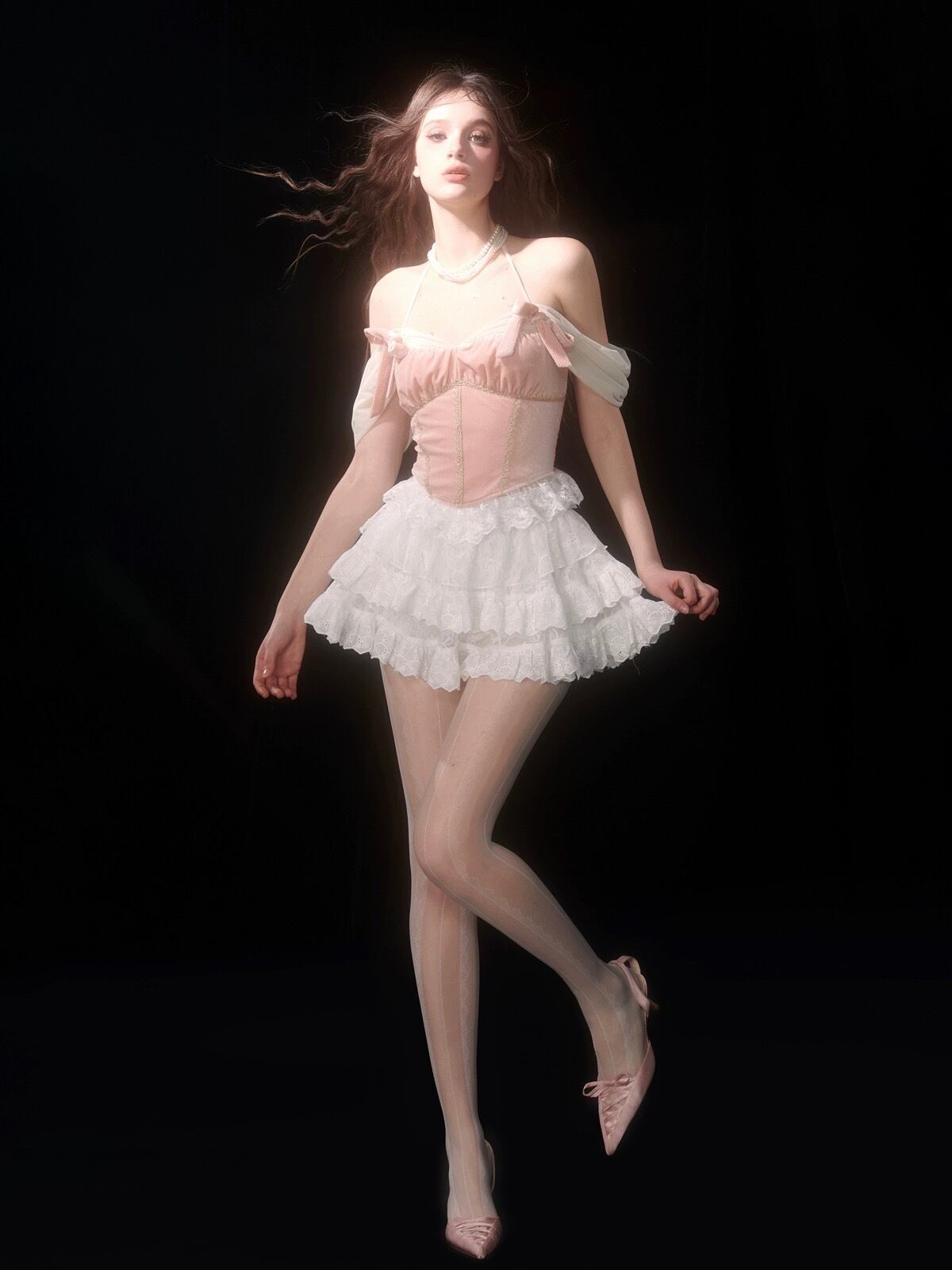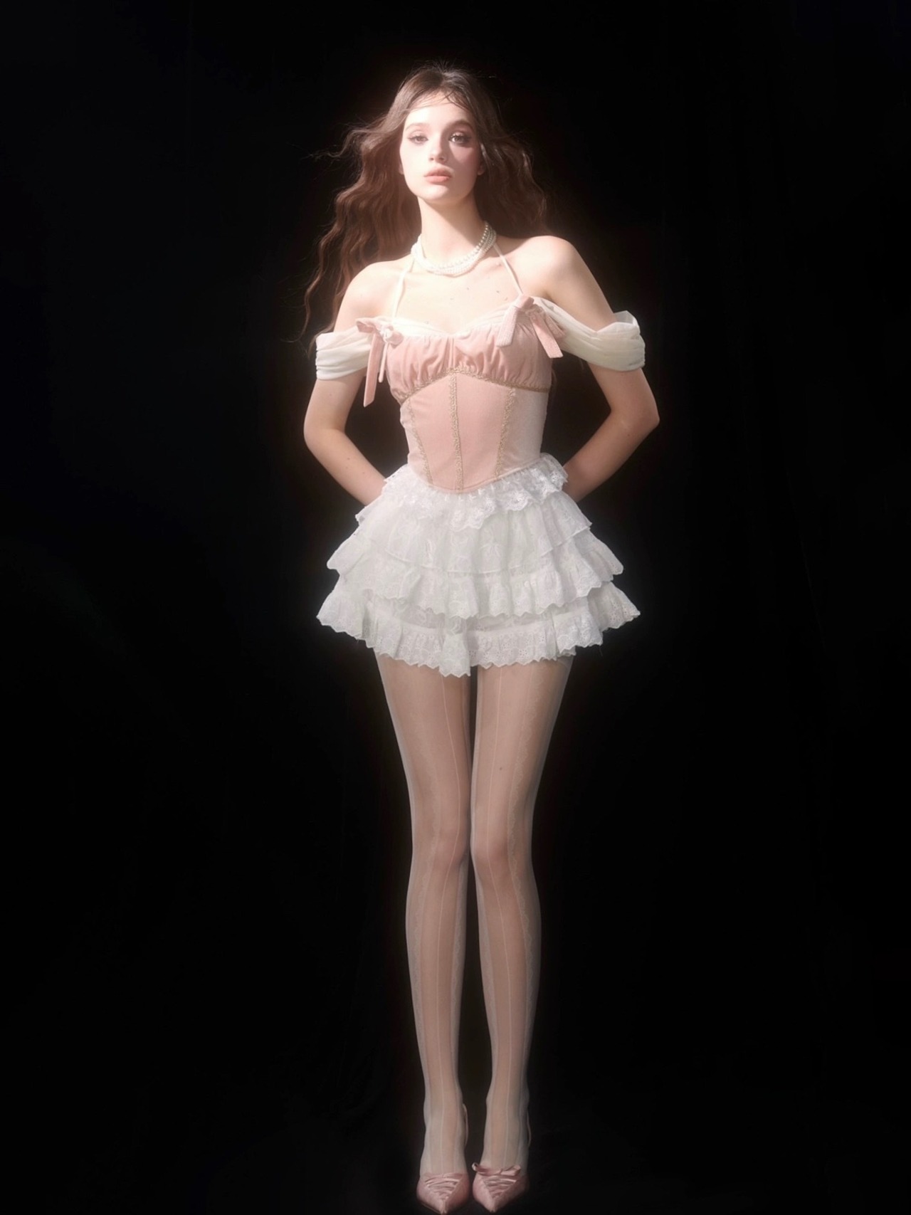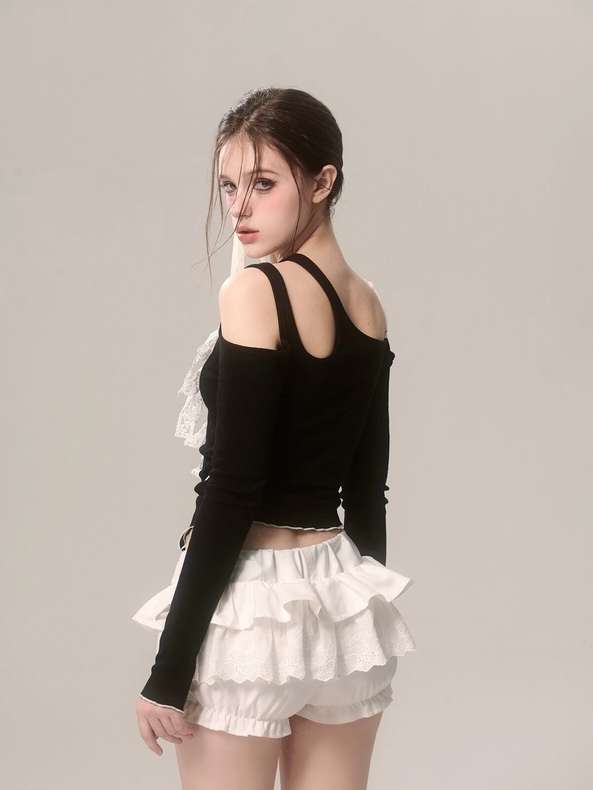 トップス 黒 ピンク リボン オフショルダー リボン ガーリー