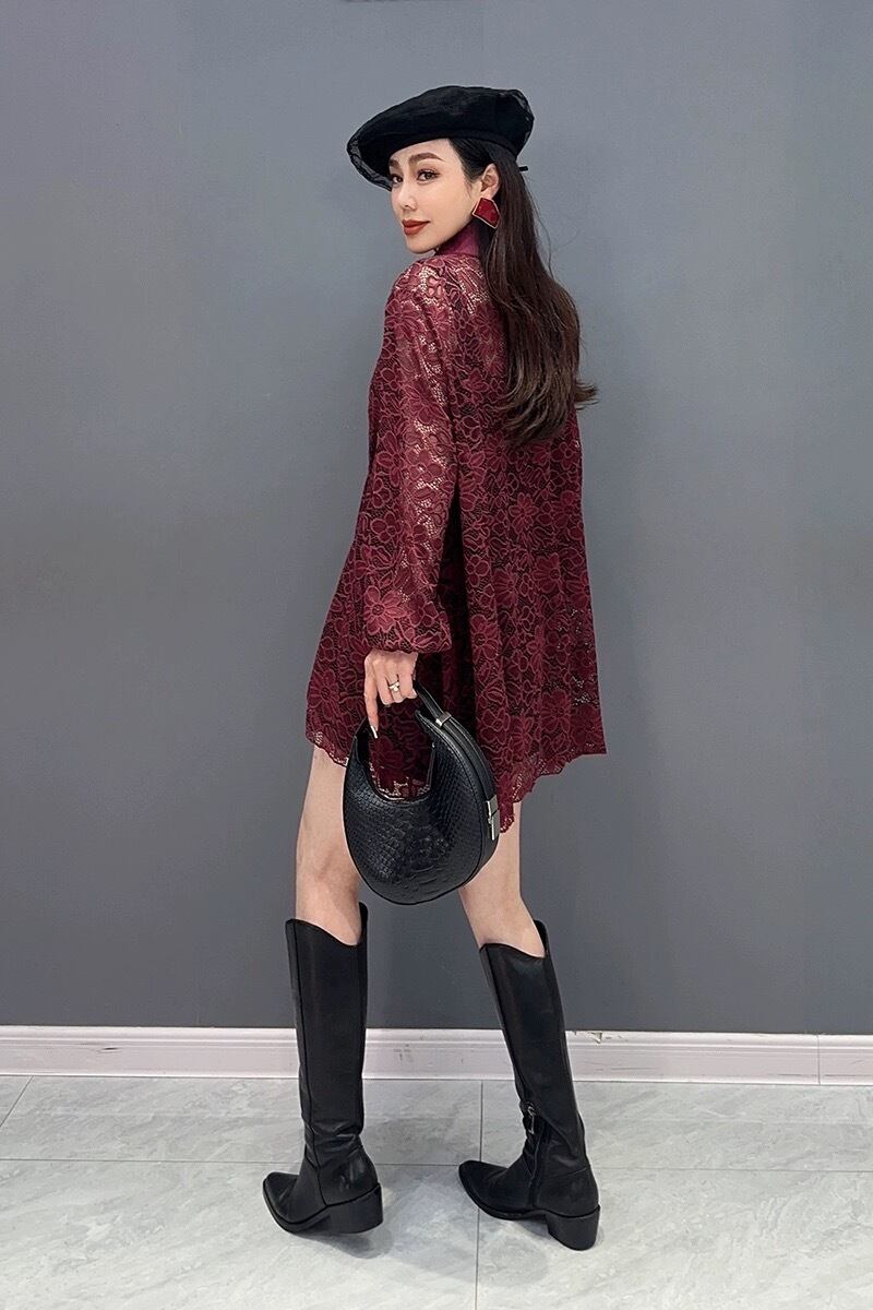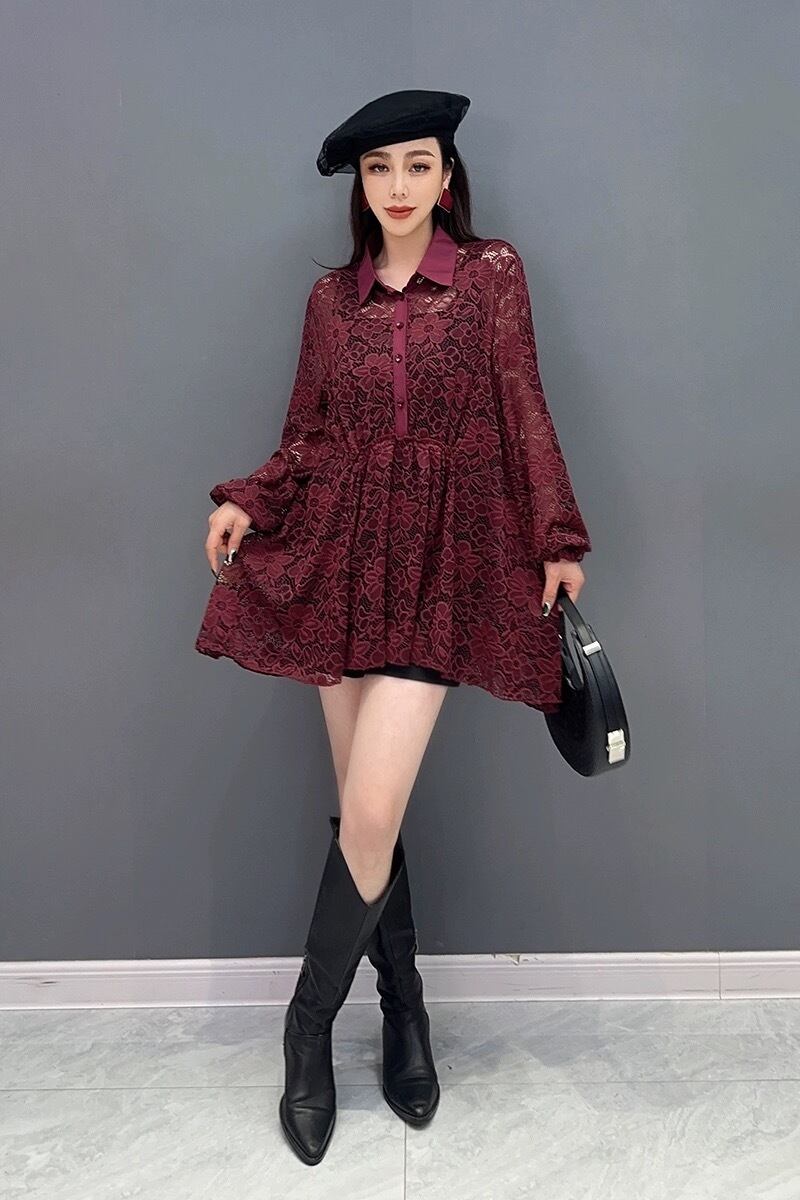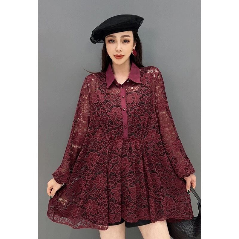 ブラウス シースルー 黒 赤 花柄 エレガント フラワー