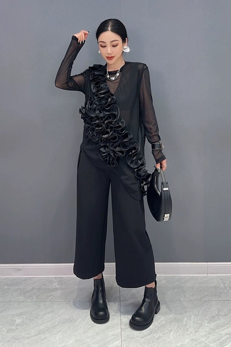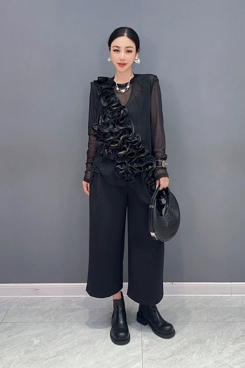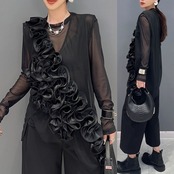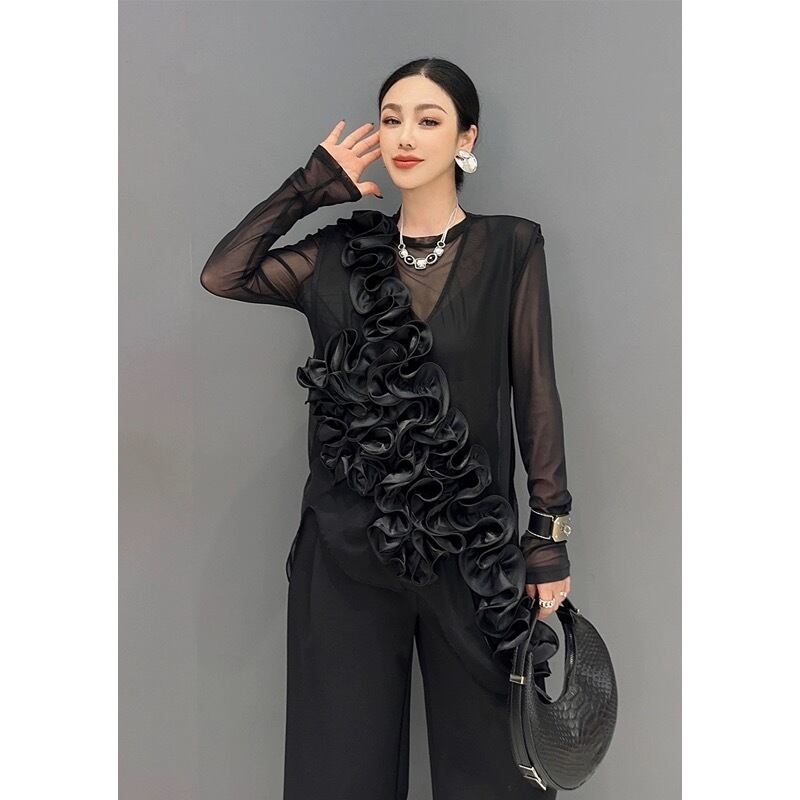 ブラウス トップス ブラウス 黒 ブラック フラワー 花柄