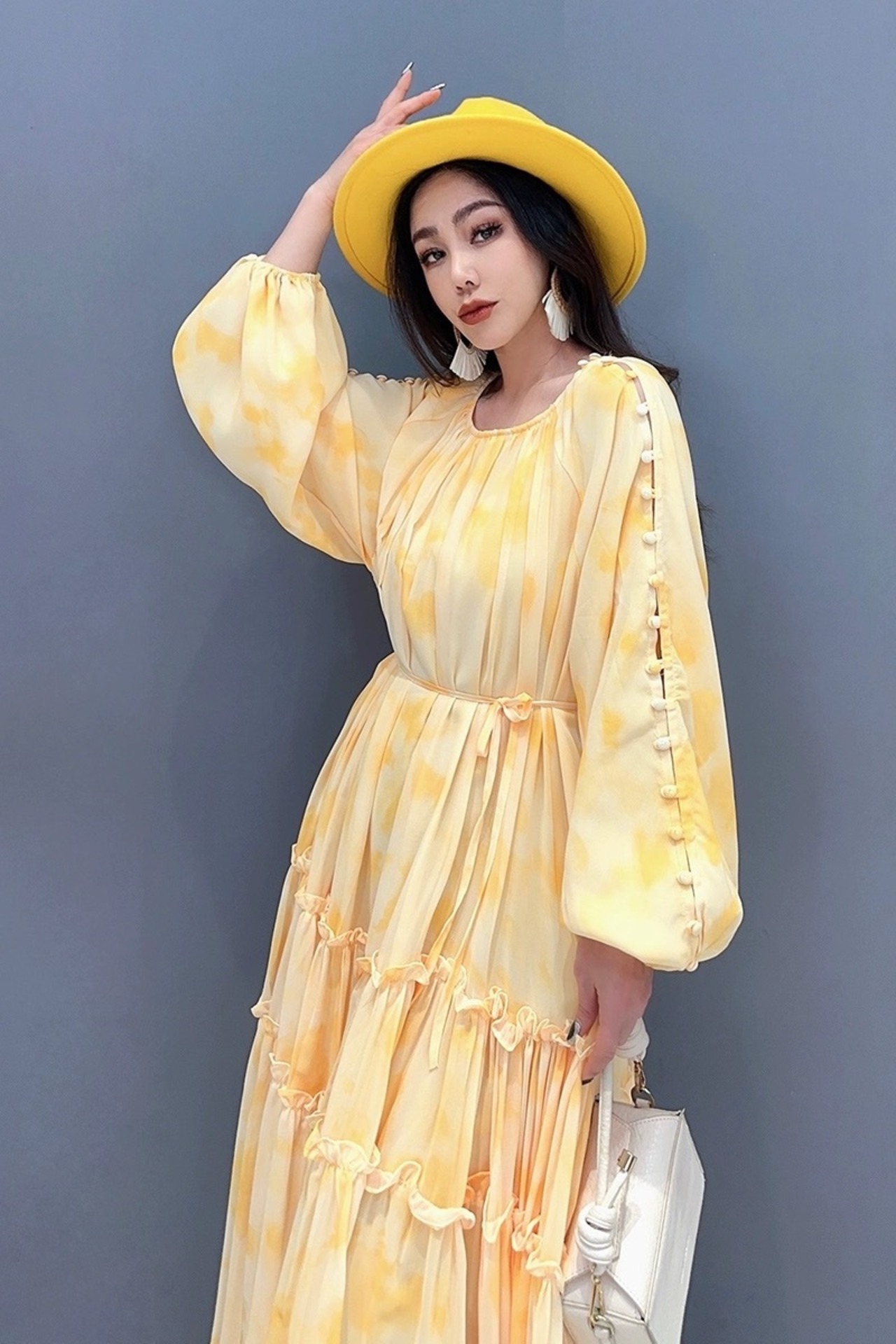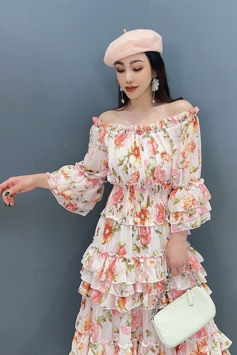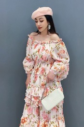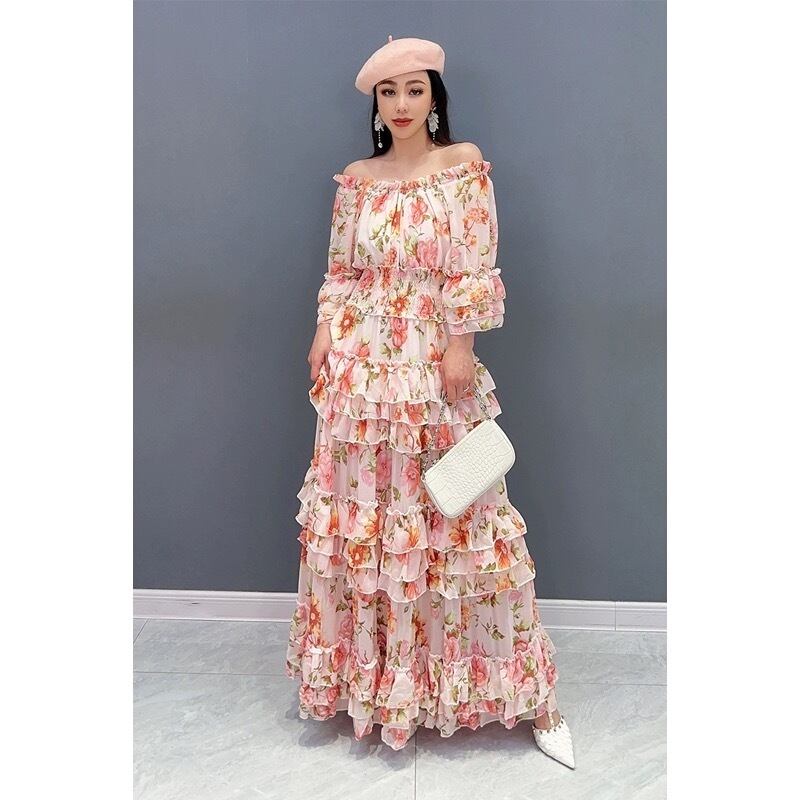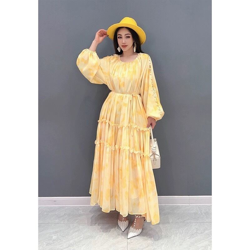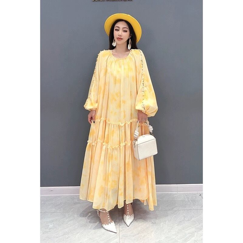 黄色 花柄 フラワー オレンジ 赤 マキシ ワンピース