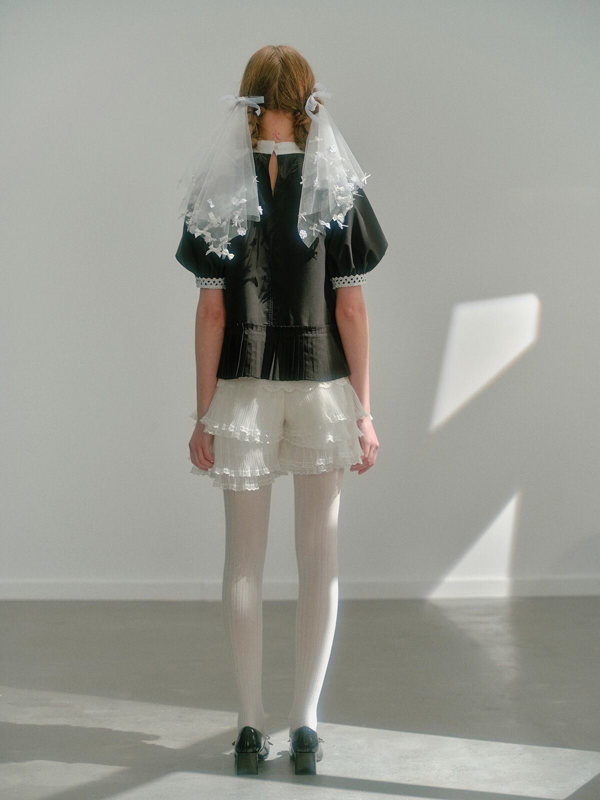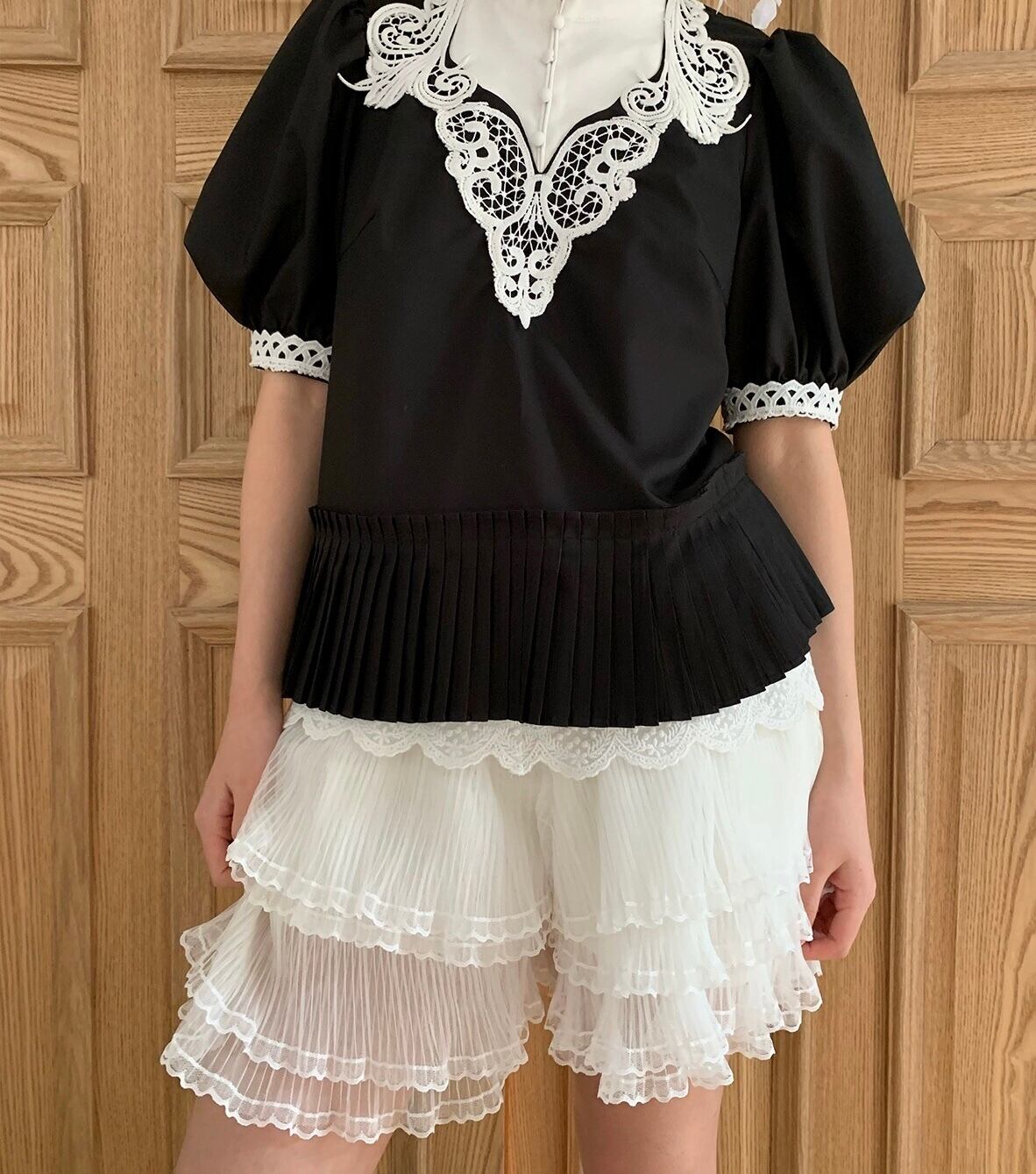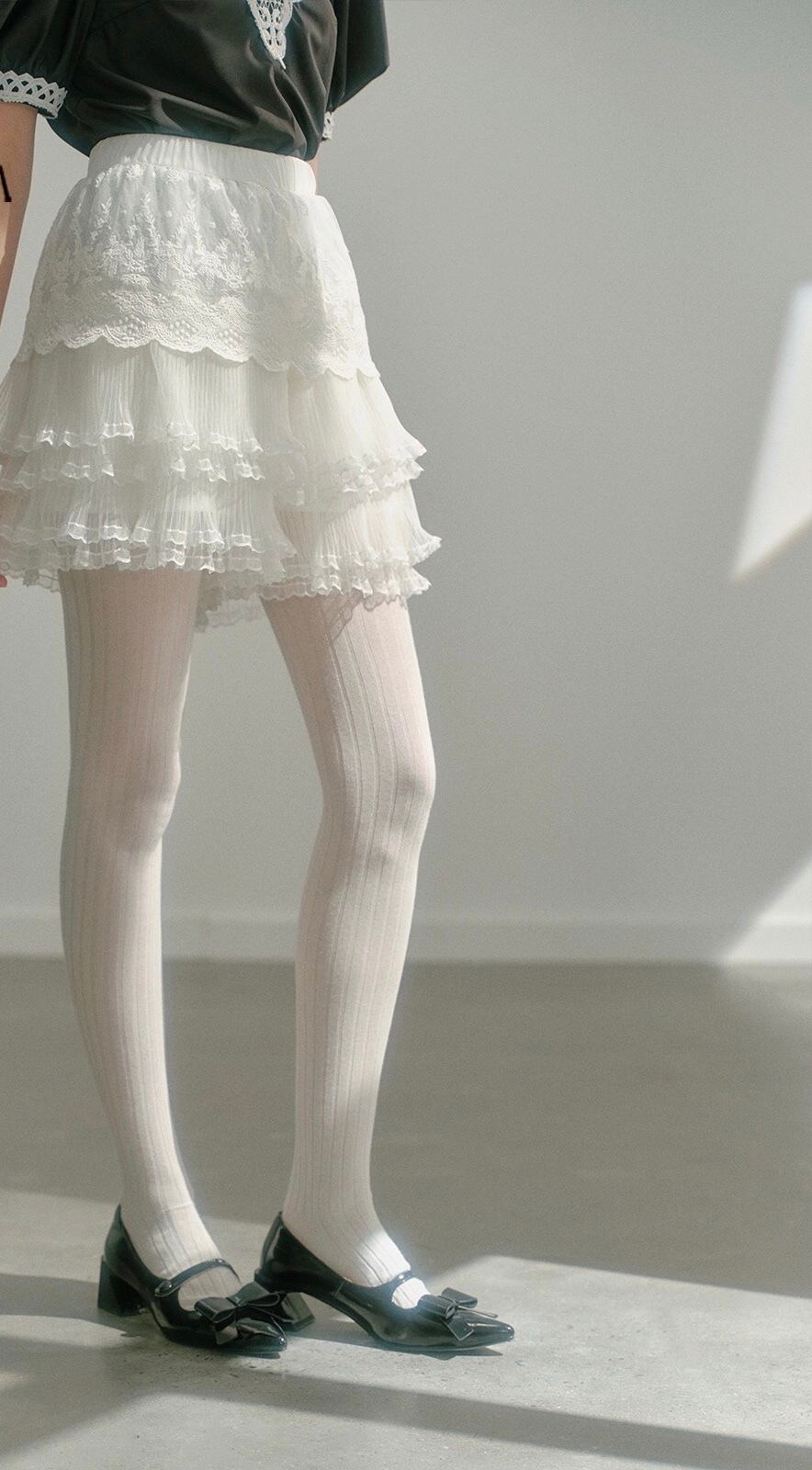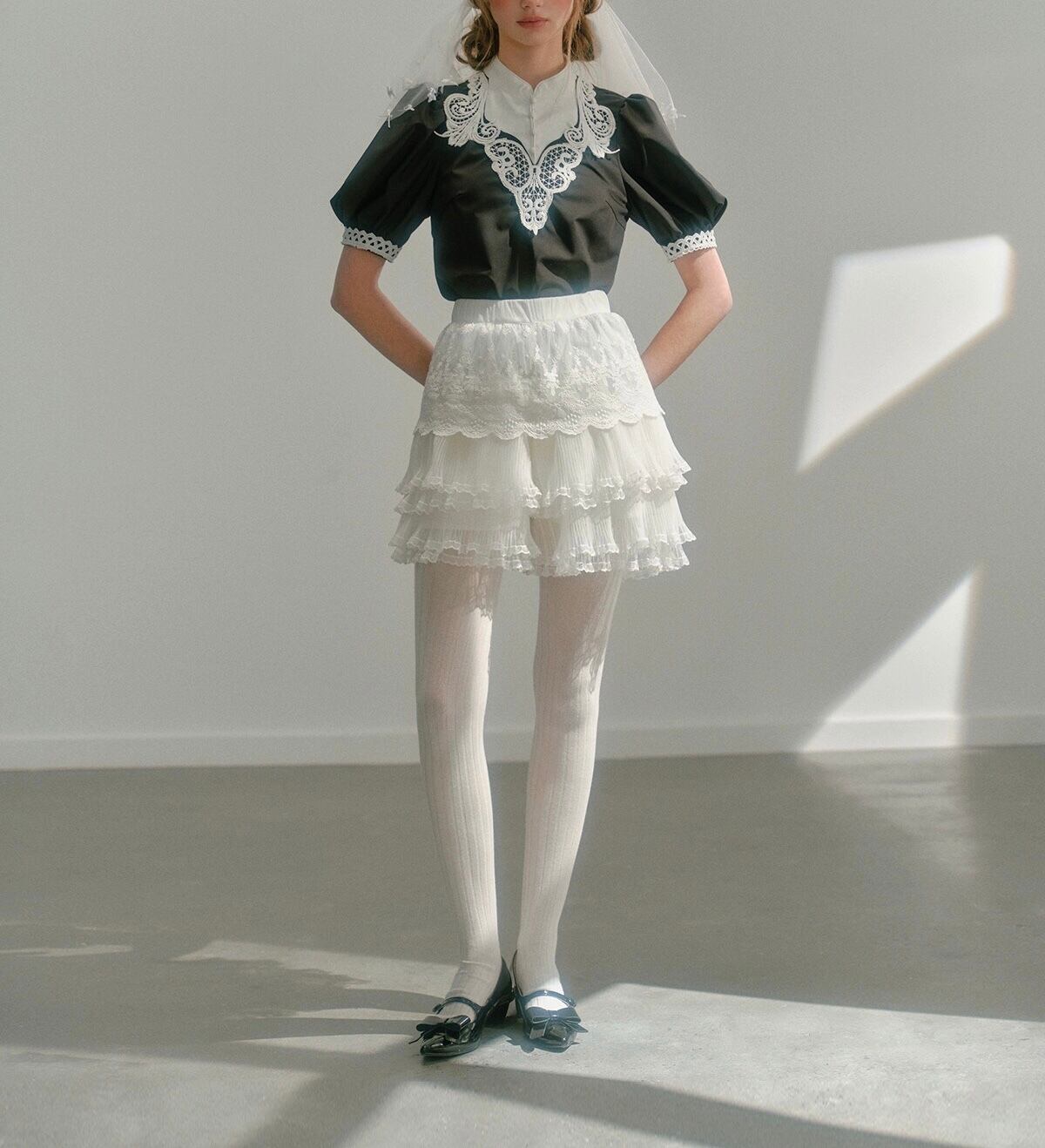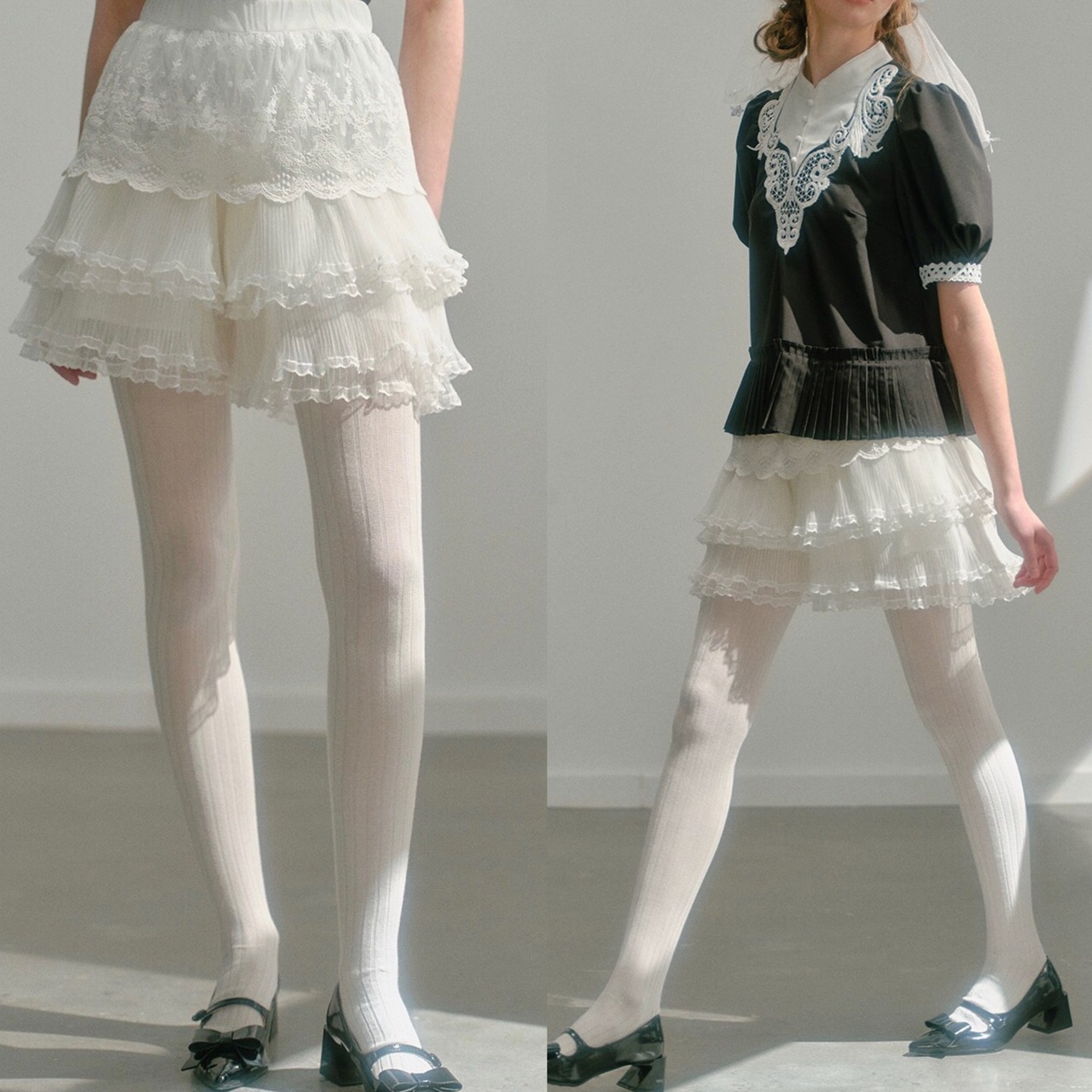 【ボトムス】白 スカート フリル リボン ホワイト ミニスカ キュロット