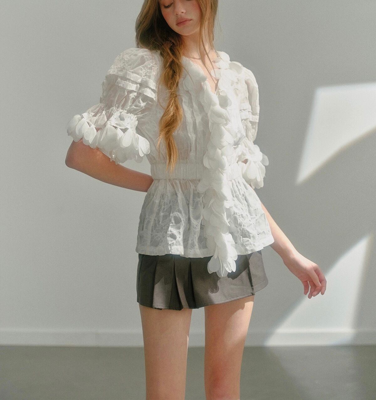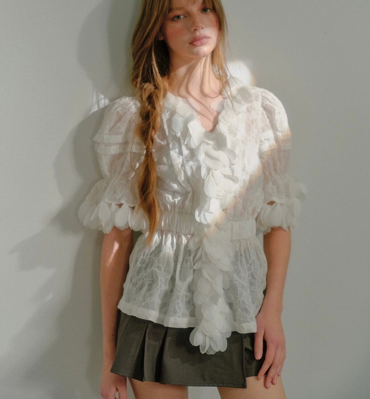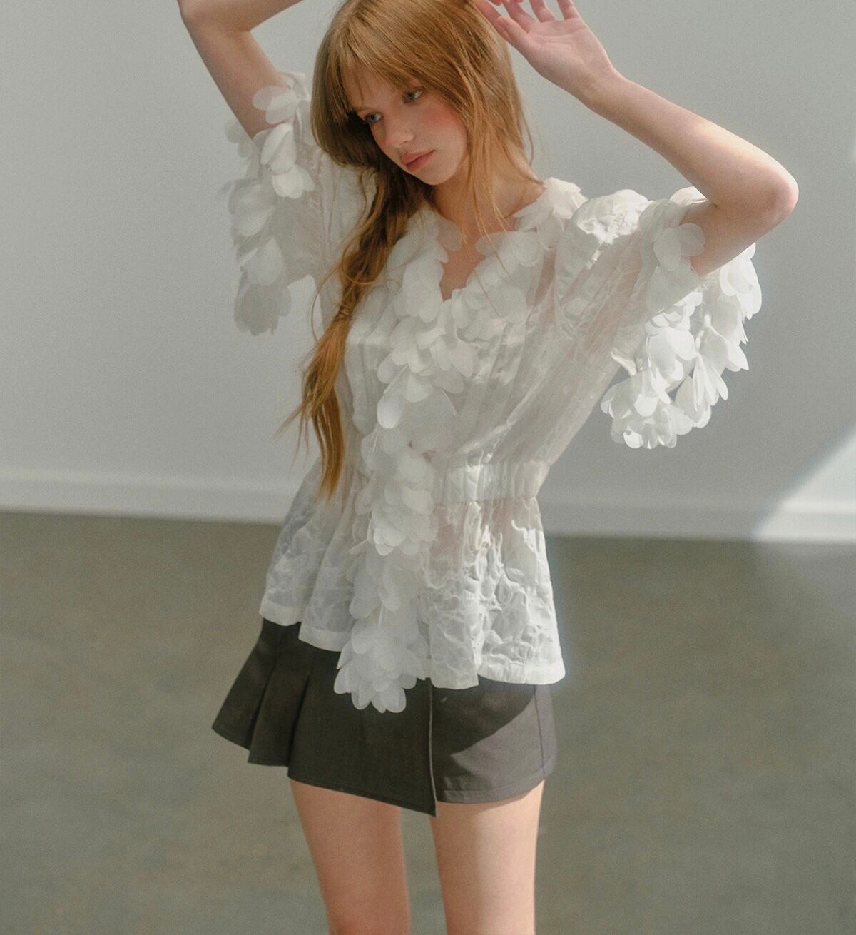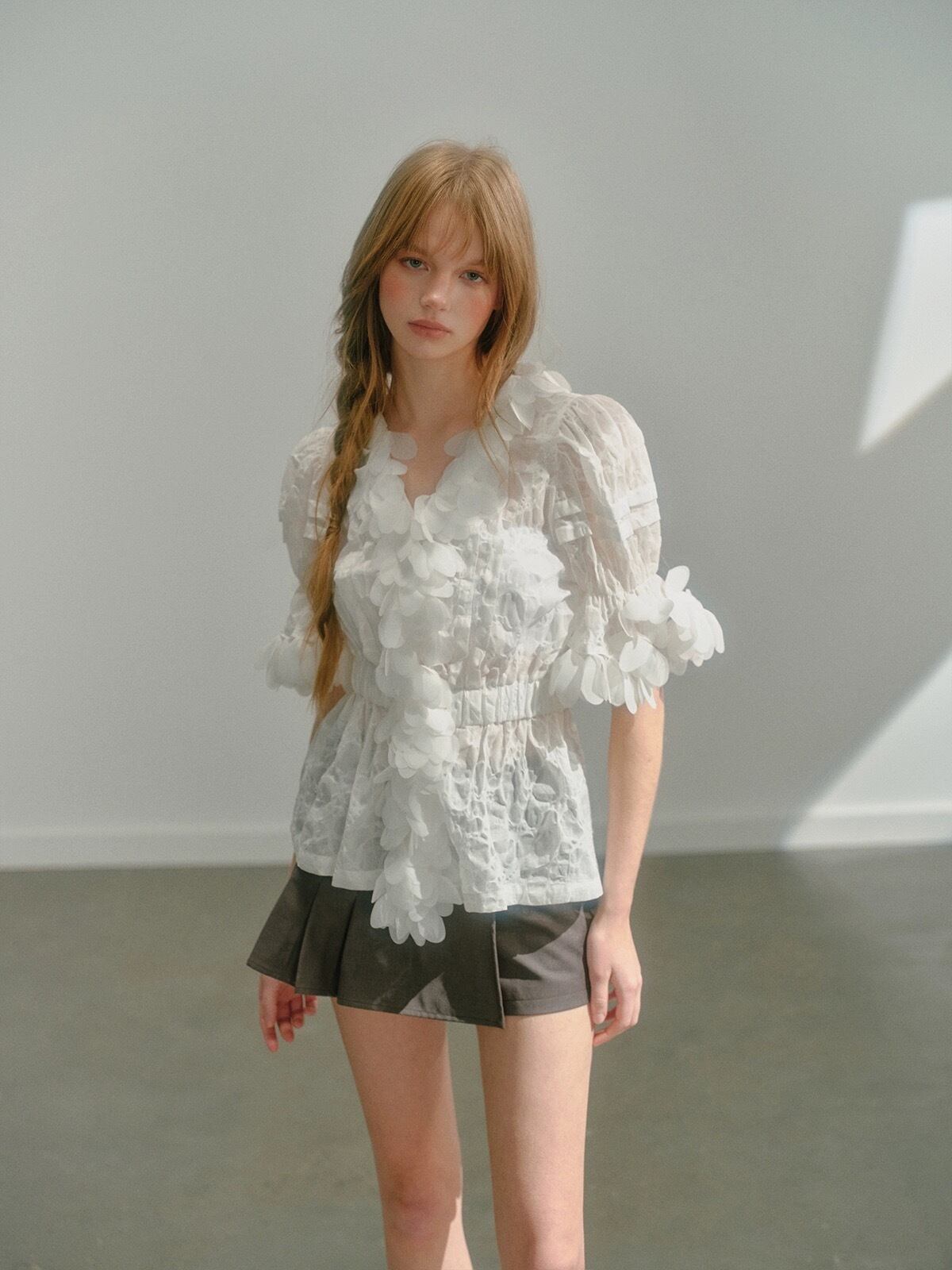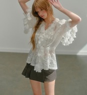 白 ガーリー カーディガン トップス ブラウス 花柄 フラワー