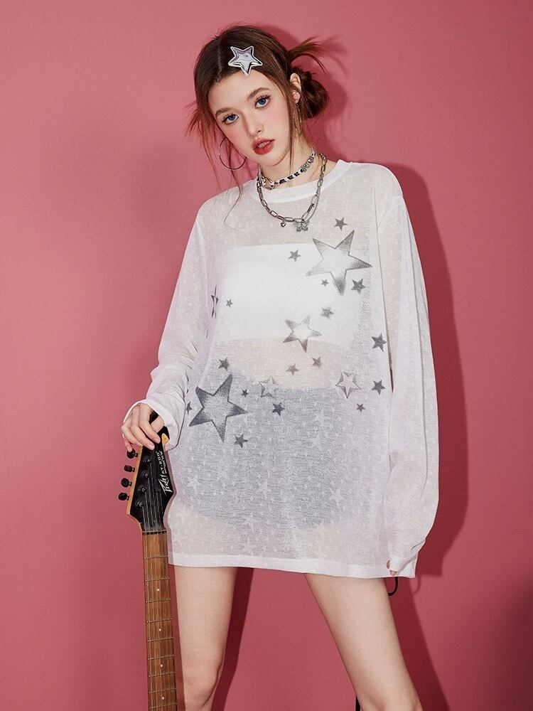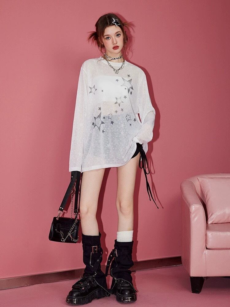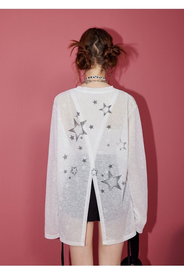 白 カジュアル ブラウス スウェット 星 ホワイト ガーリー トップス トレーナー