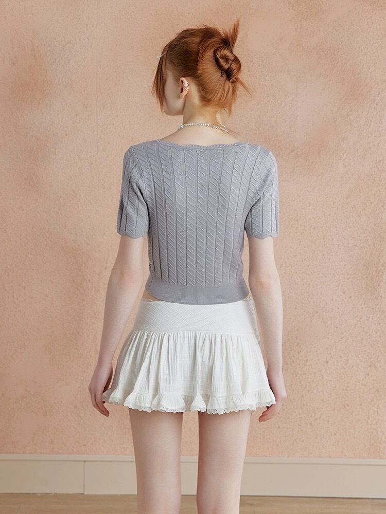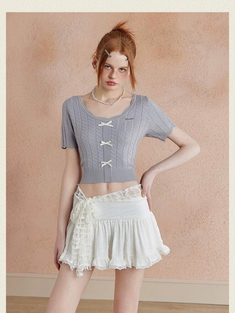 カーディガン グレー リボン ピンク ガーリー 白 トップス セーター