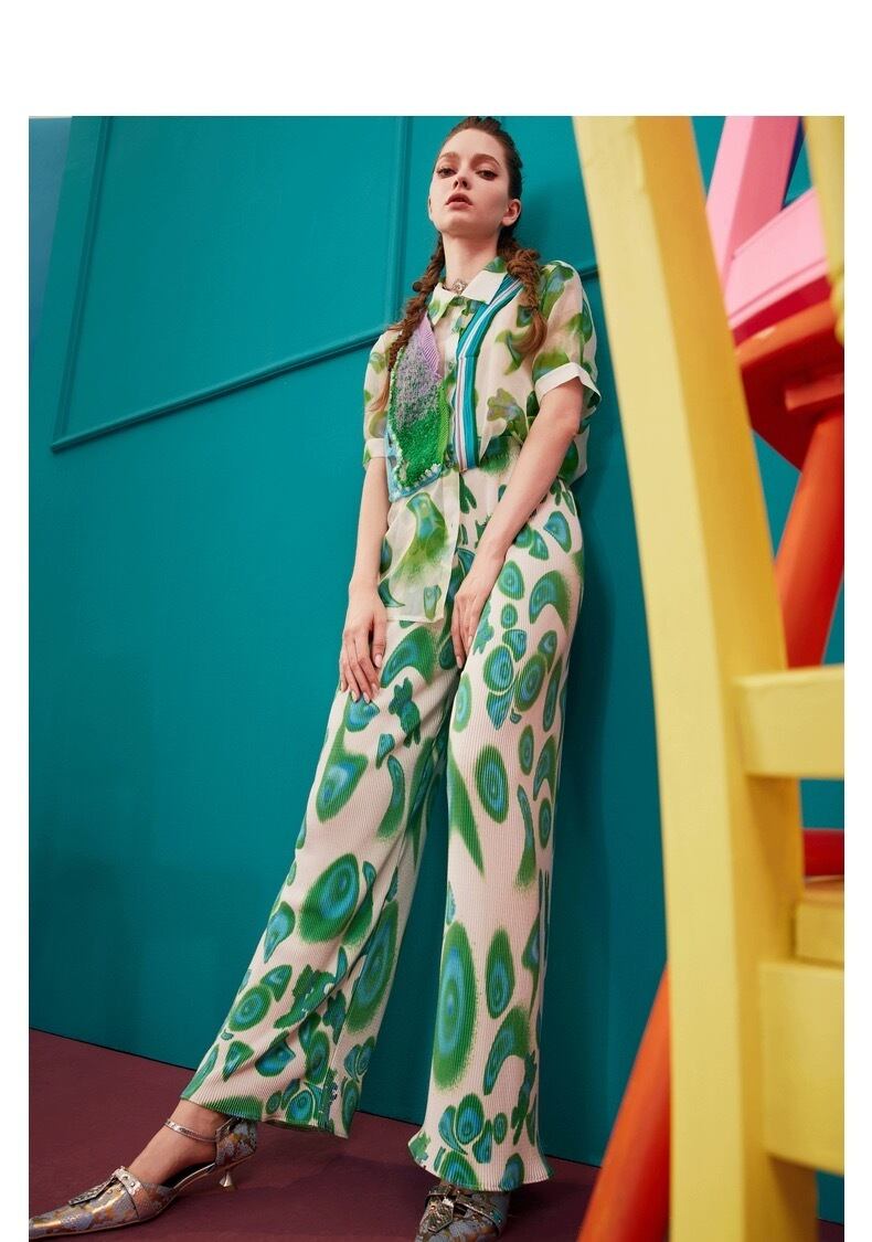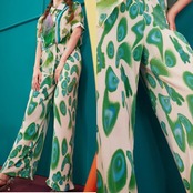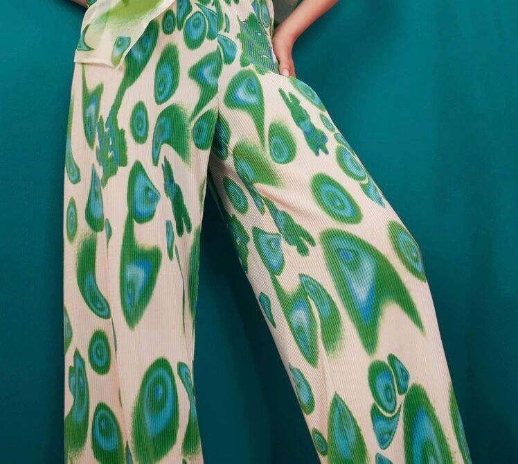 ボトムス 緑 水玉 ドット カジュアル パンツ スウェット エレガント