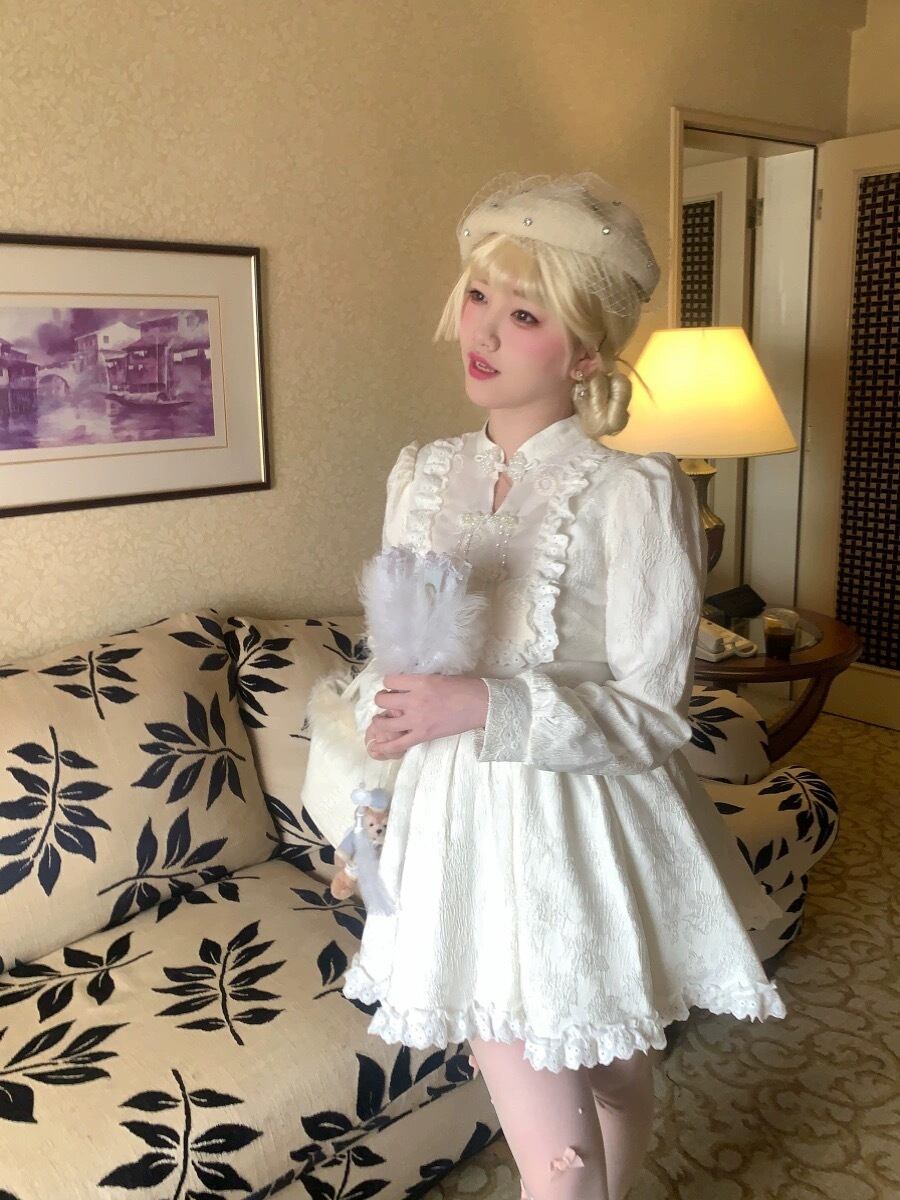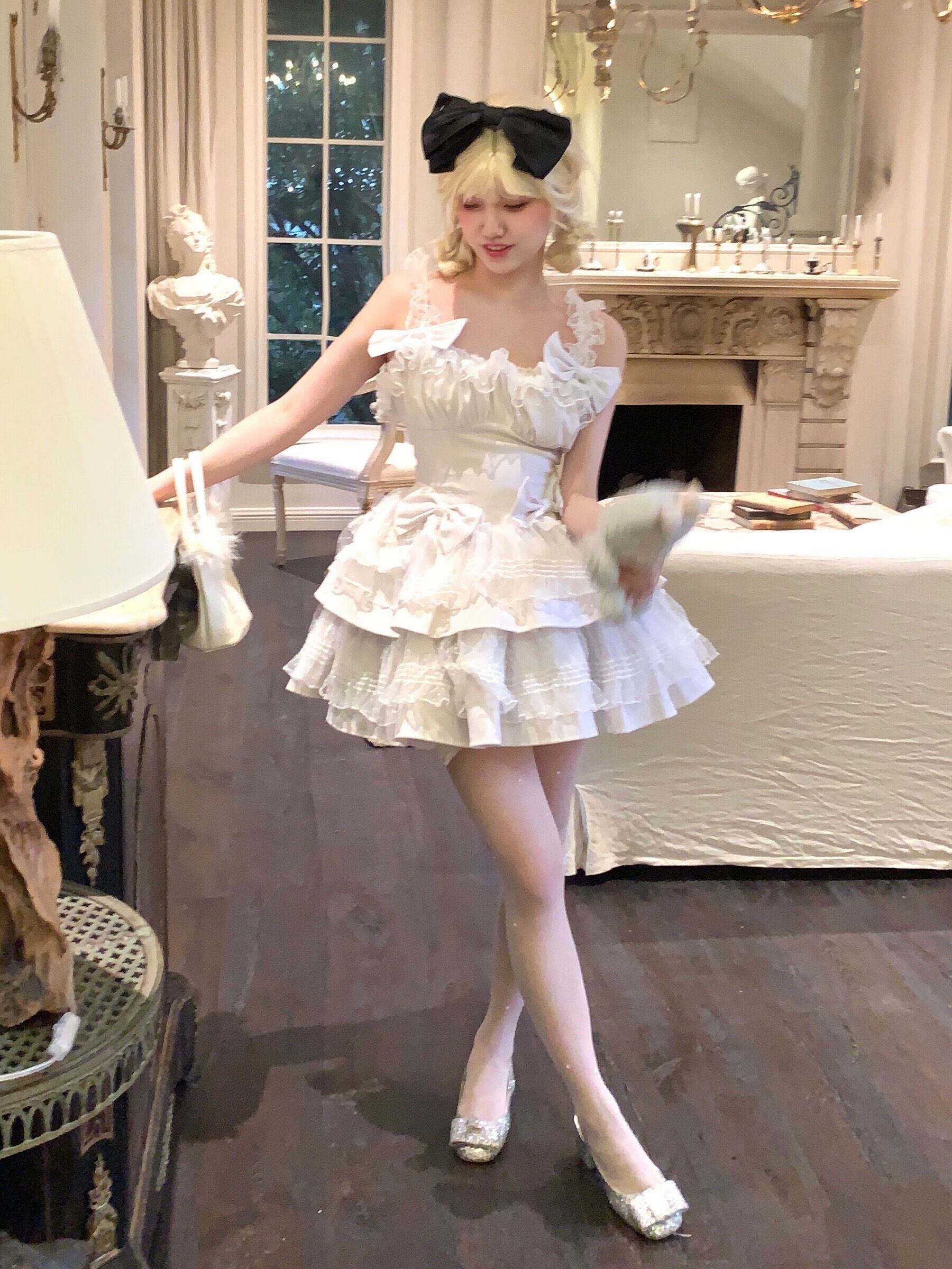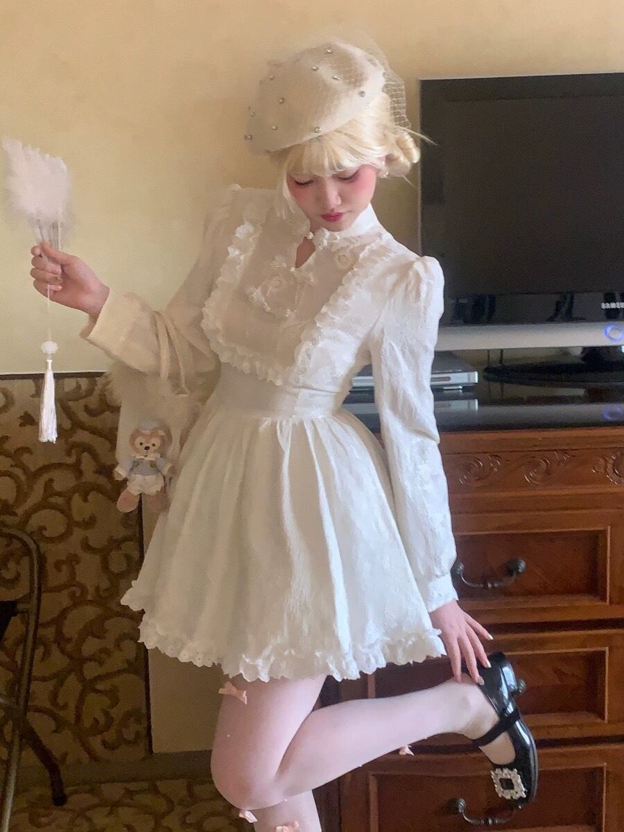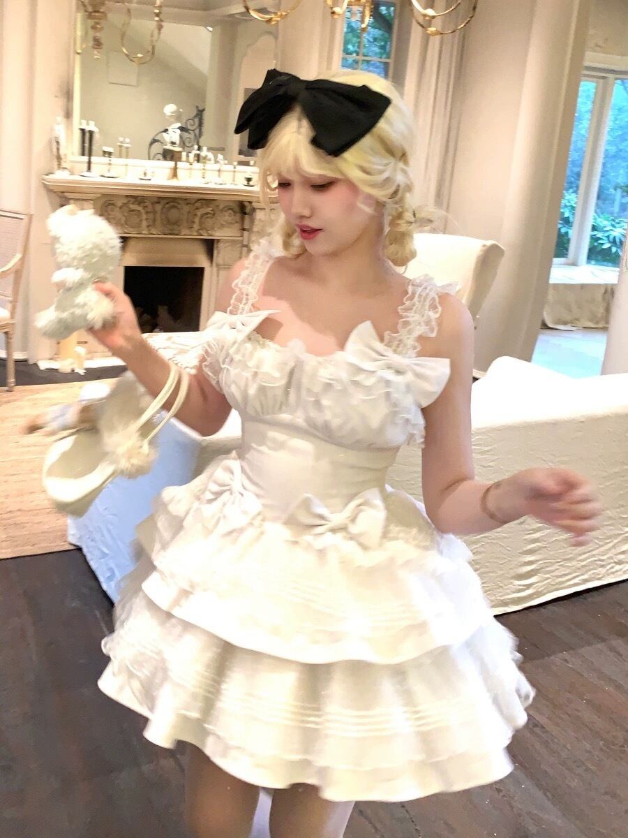 白 ホワイト ワンピース ガーリー お嬢様 ピンク 姫 リボン