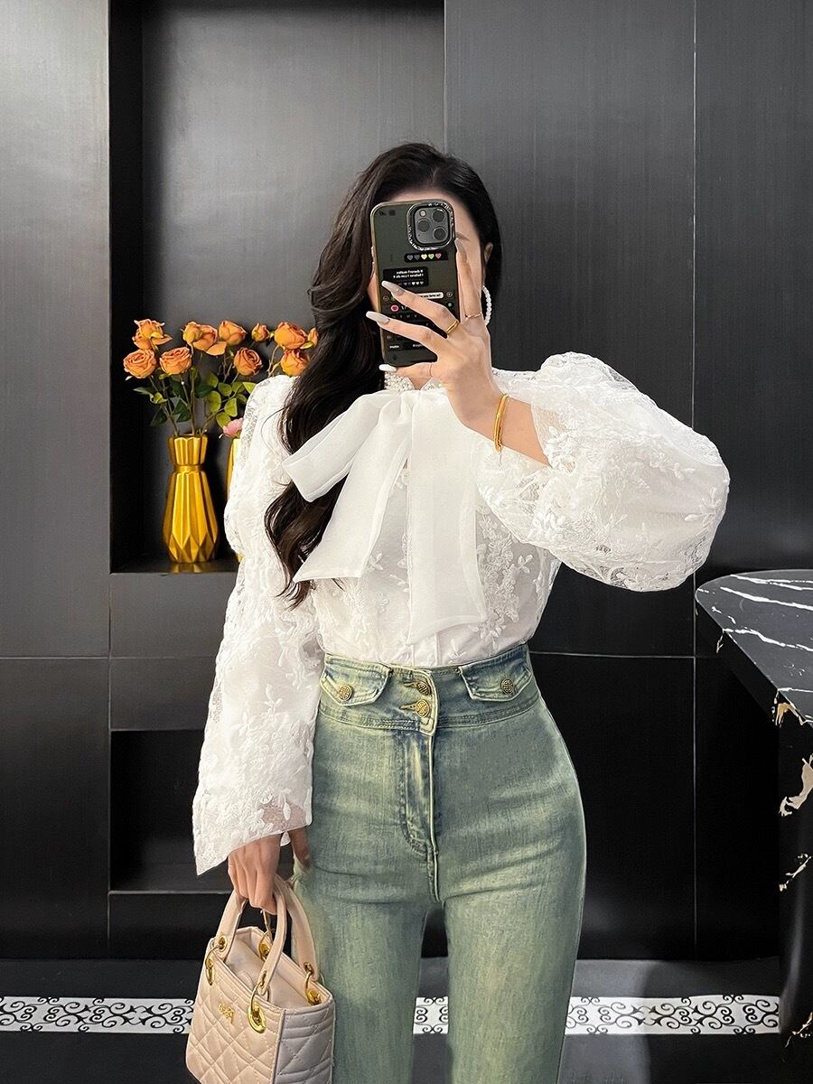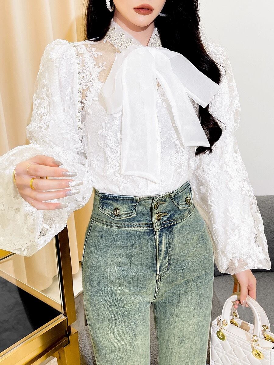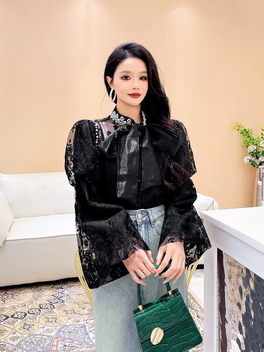 ブラウス レース 黒 白 花柄 フラワー エレガント リボン トップス