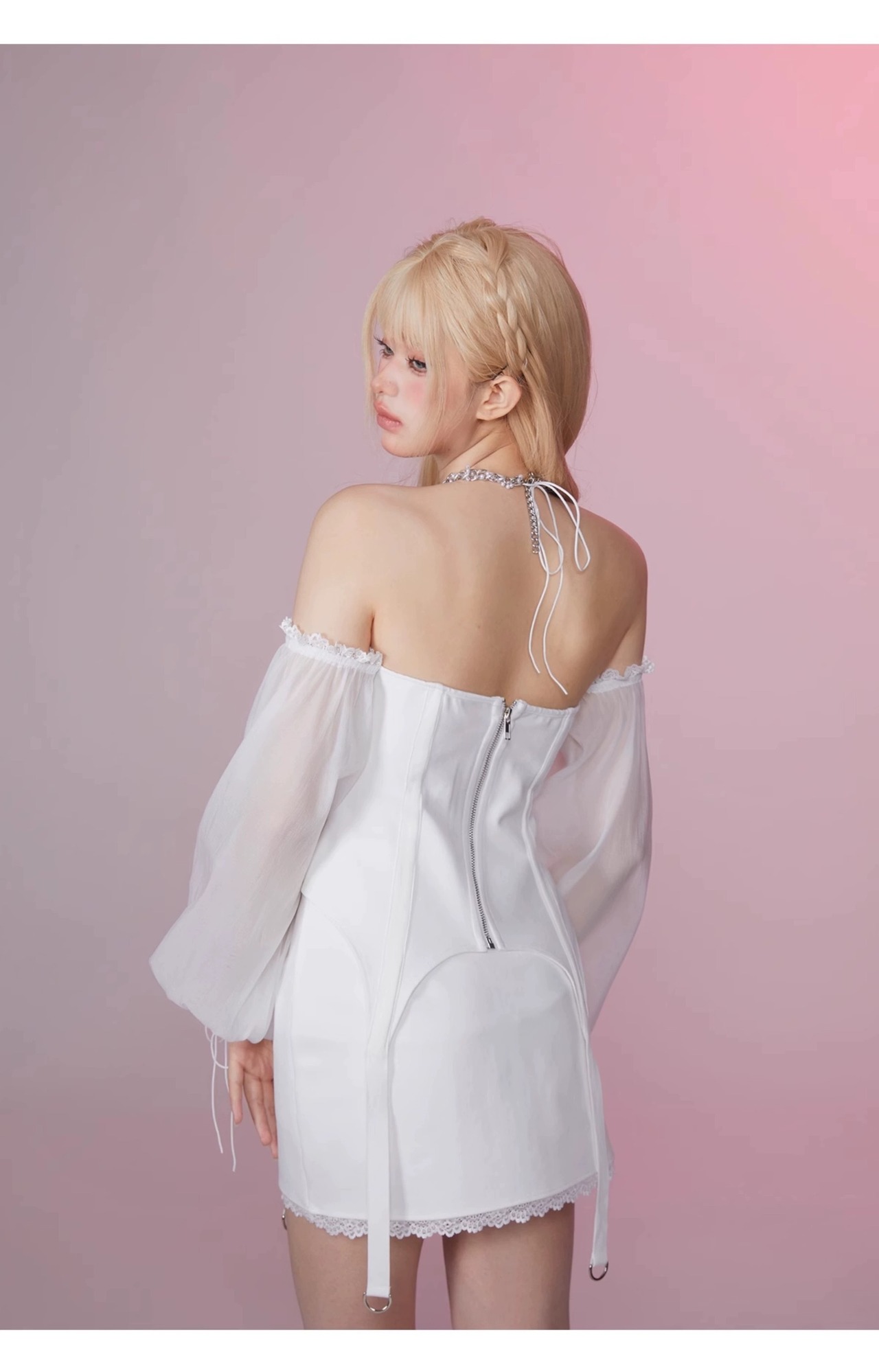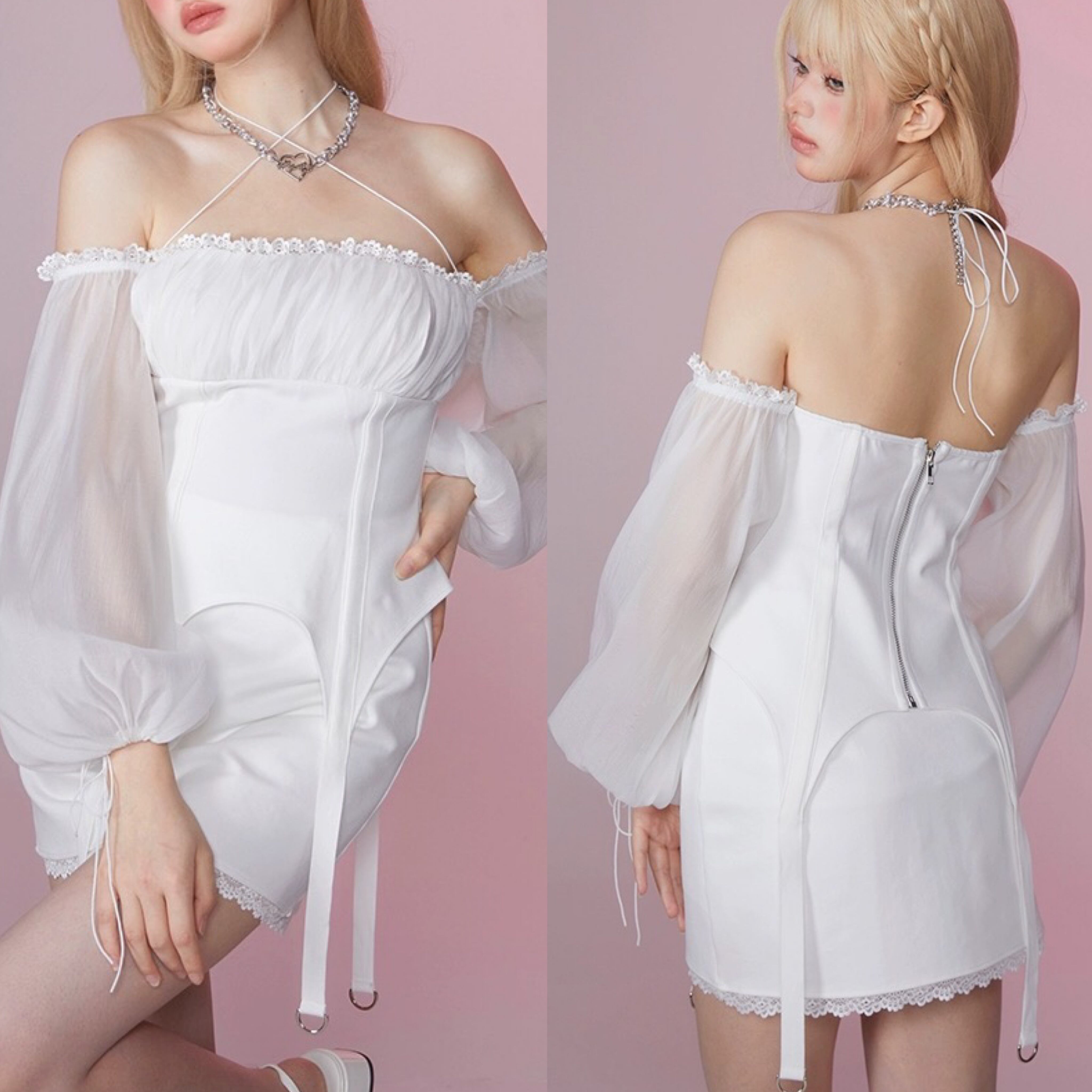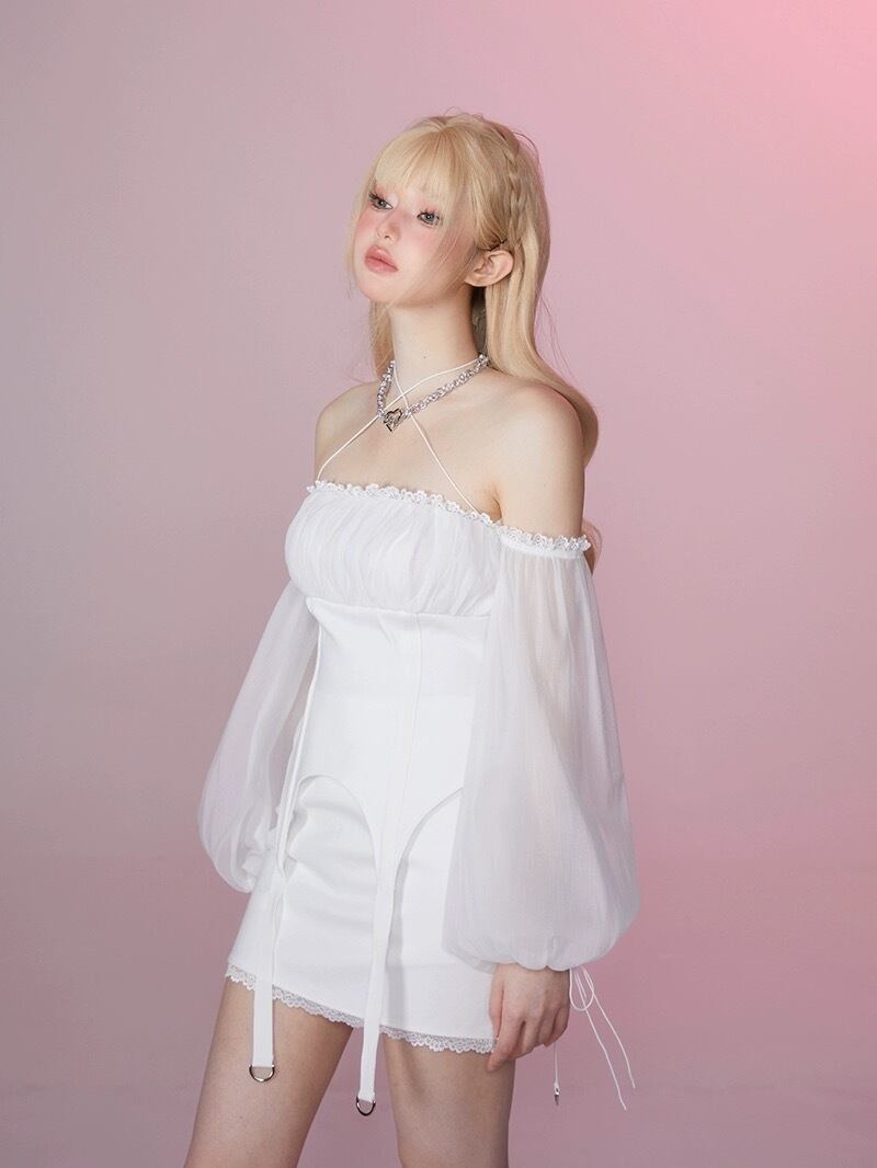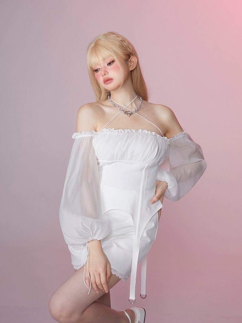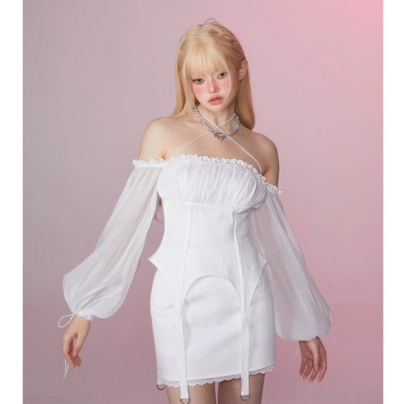 【セットアップ】ピンク 白 ブラウス オフショルダーミニスカ ホワイト ブラウス オフショルダー