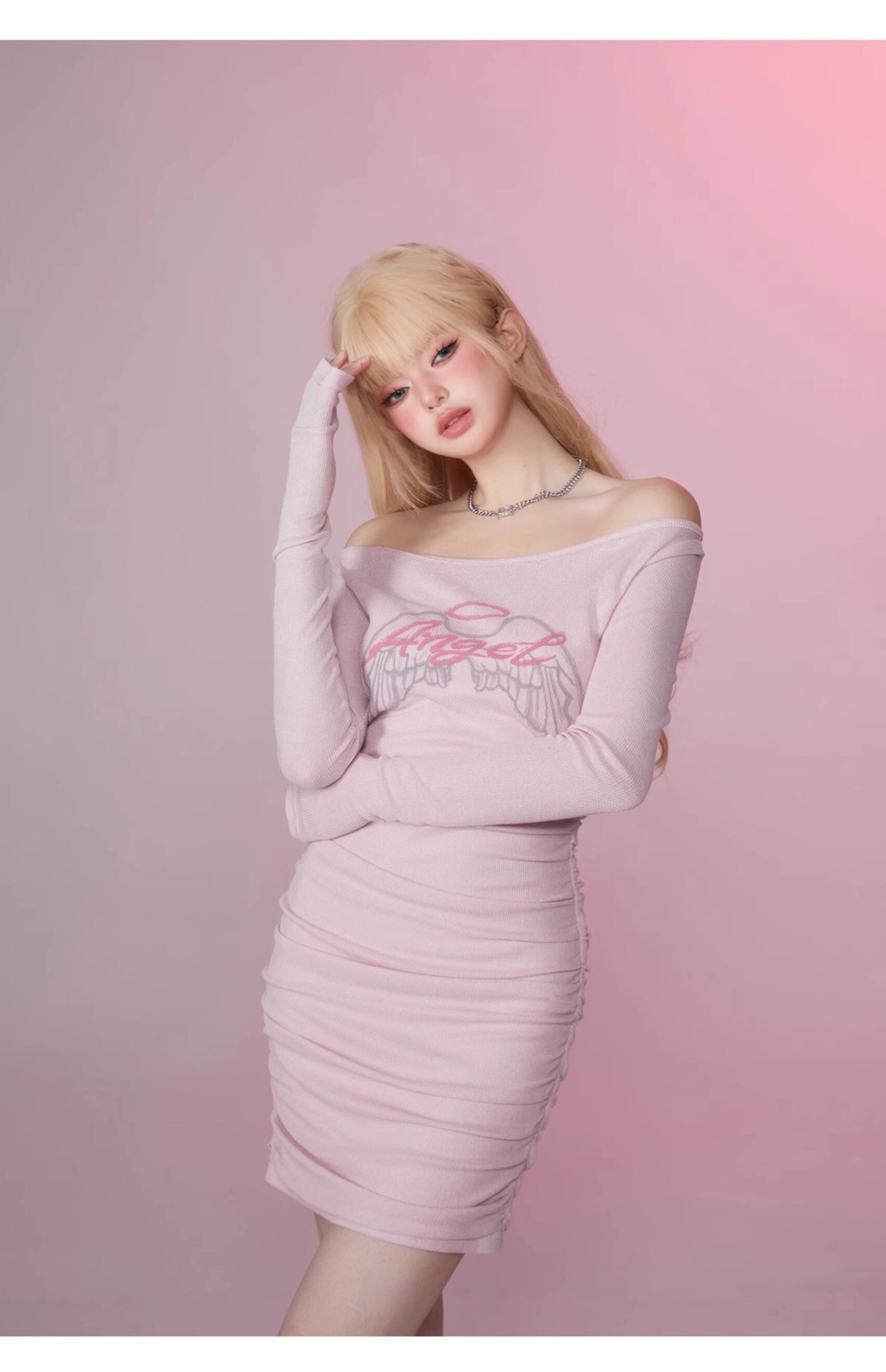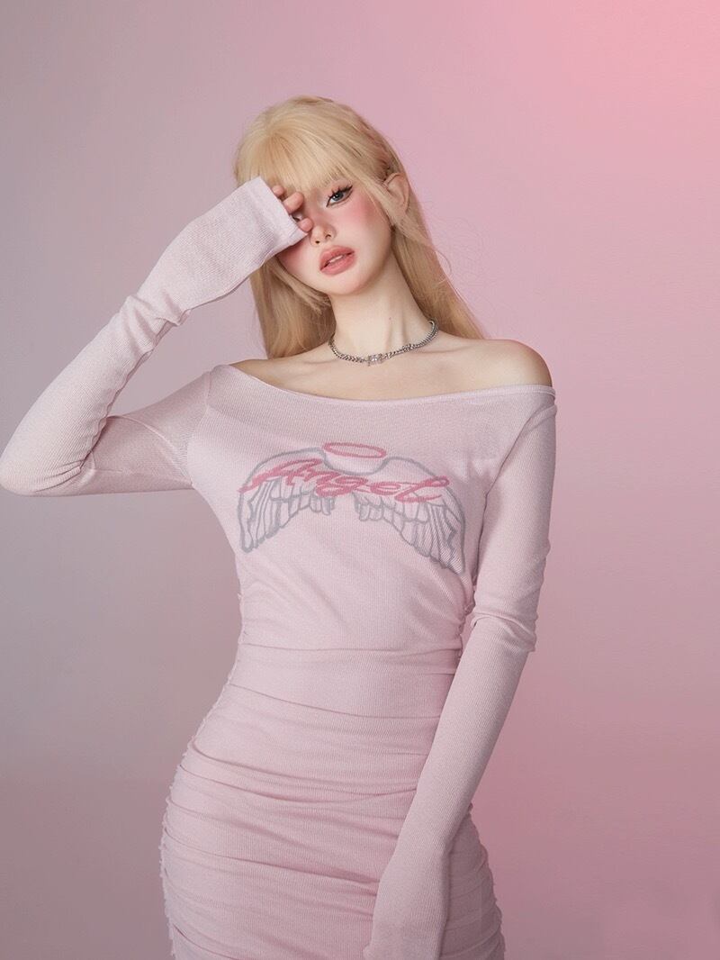 オフショルダー ピンク ワンピース キャミソール ガーリー 可愛い カーディガン