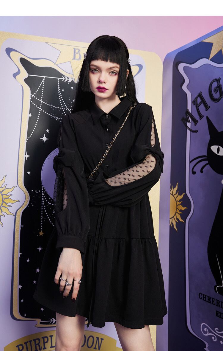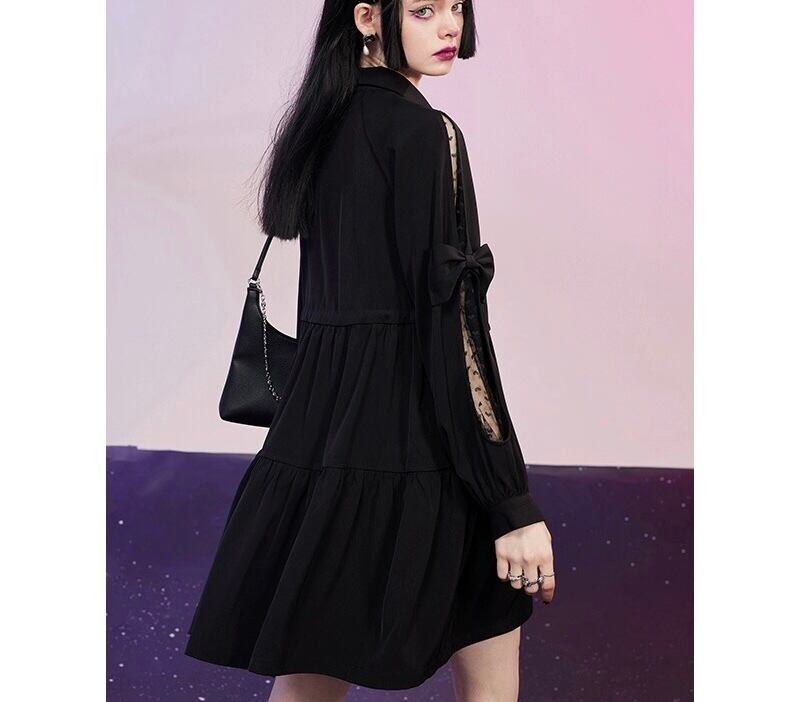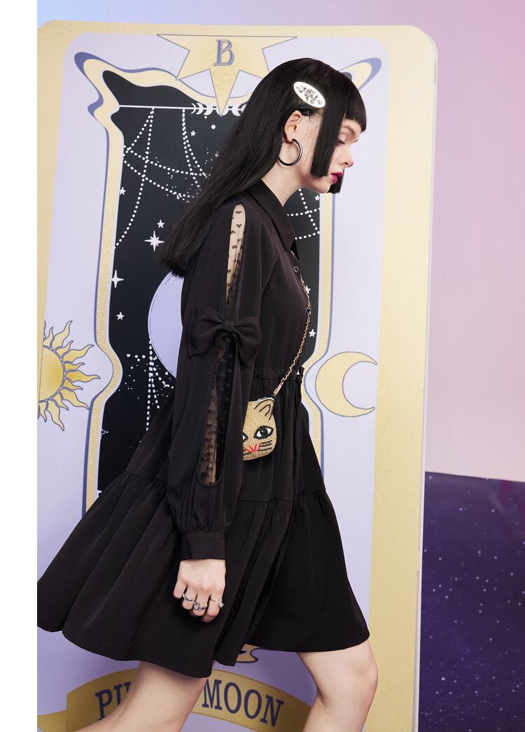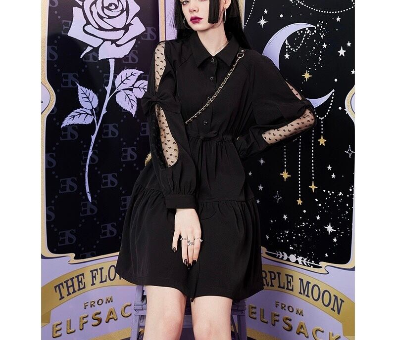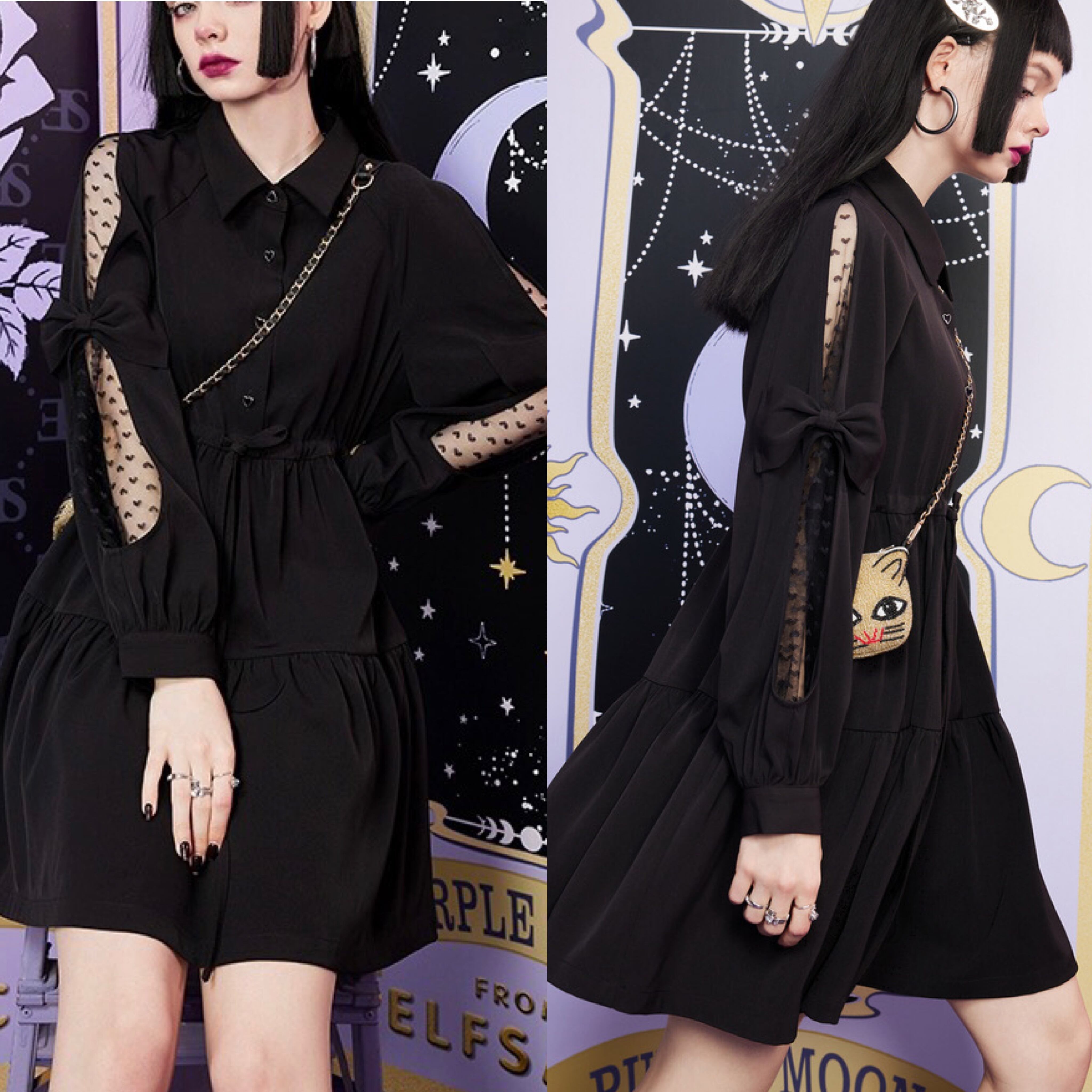 黒 リボン レース ワンピース ガーリー お嬢様 姫 エレガント ブラック