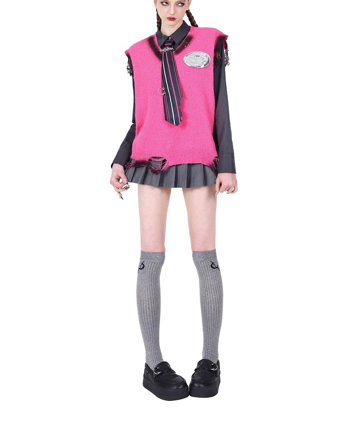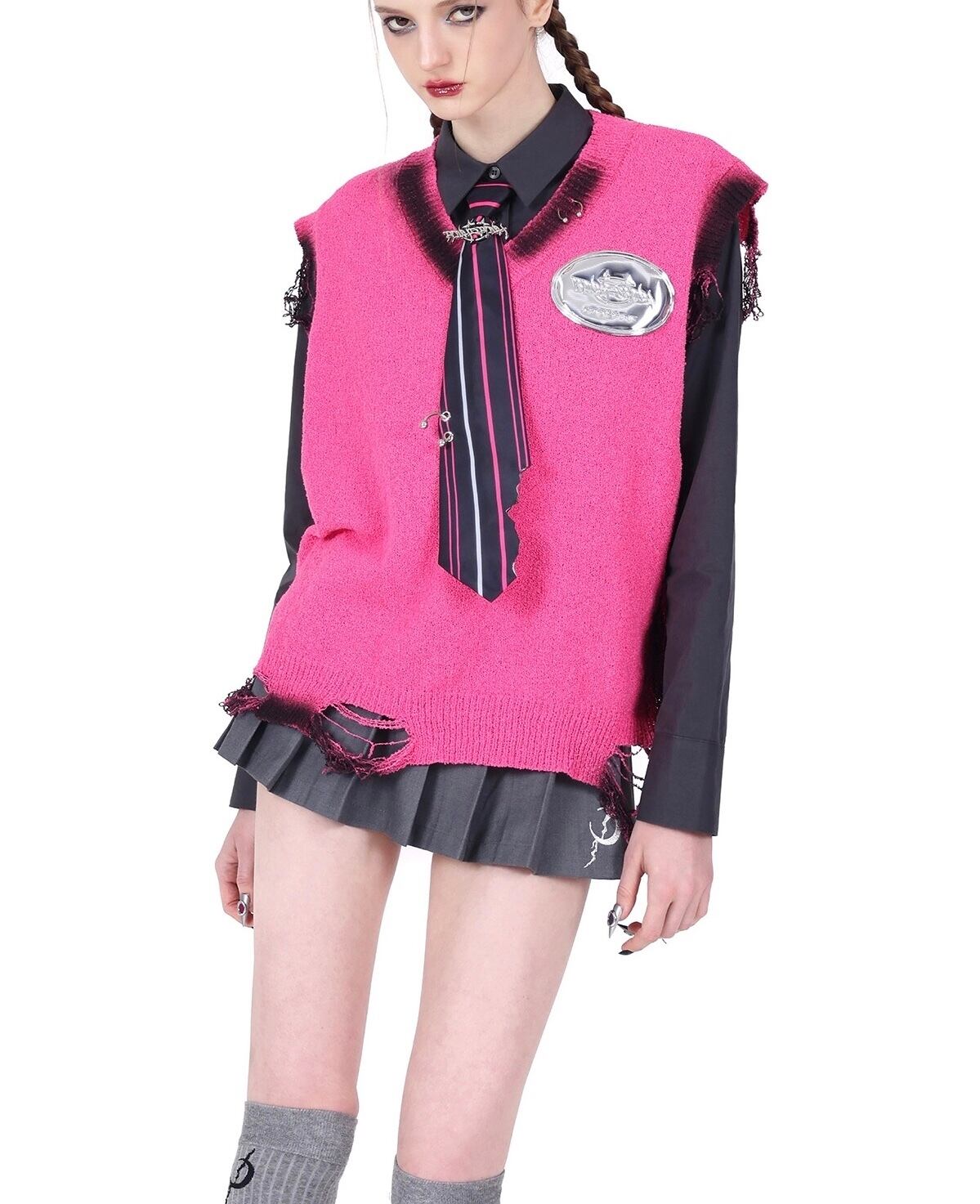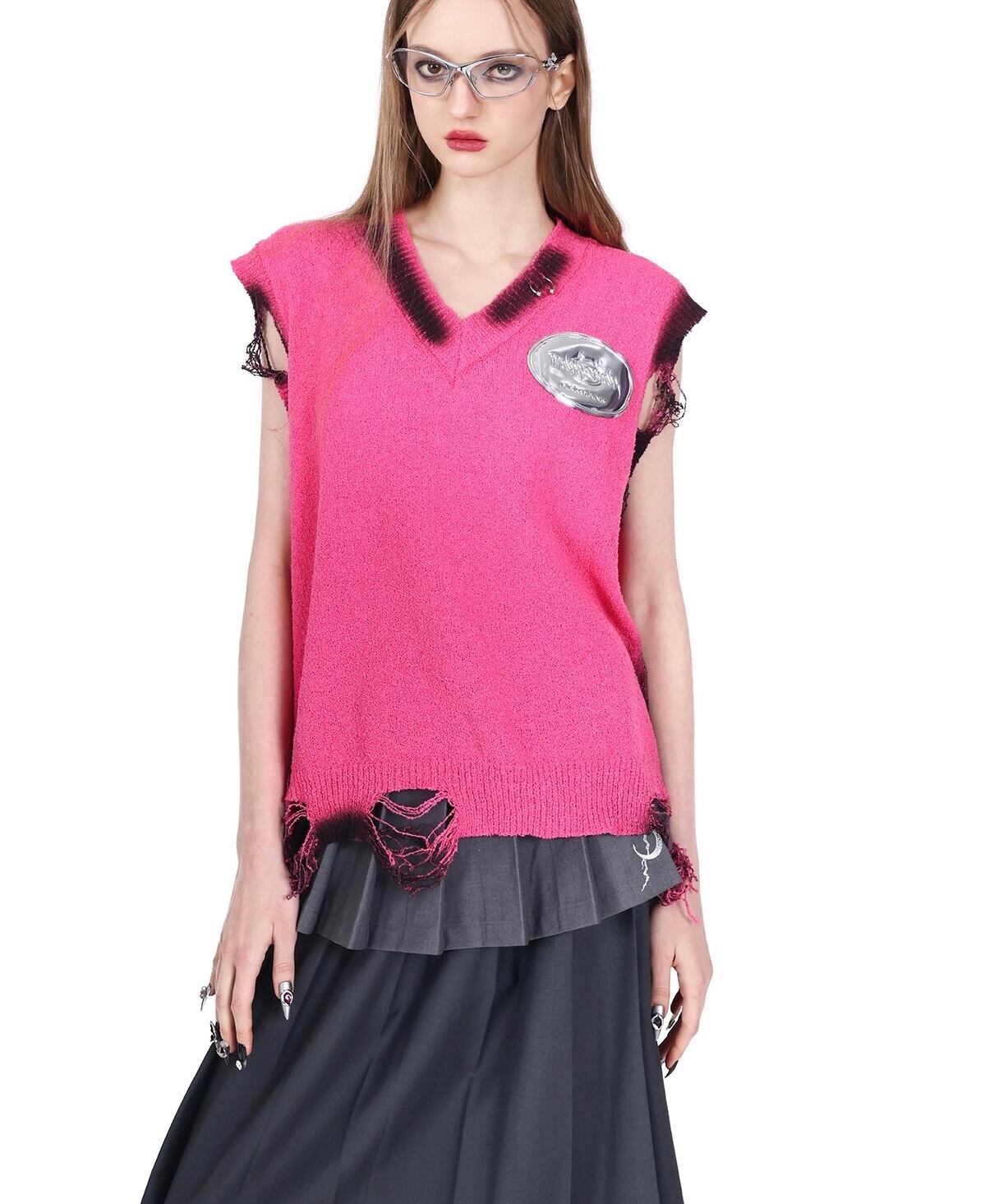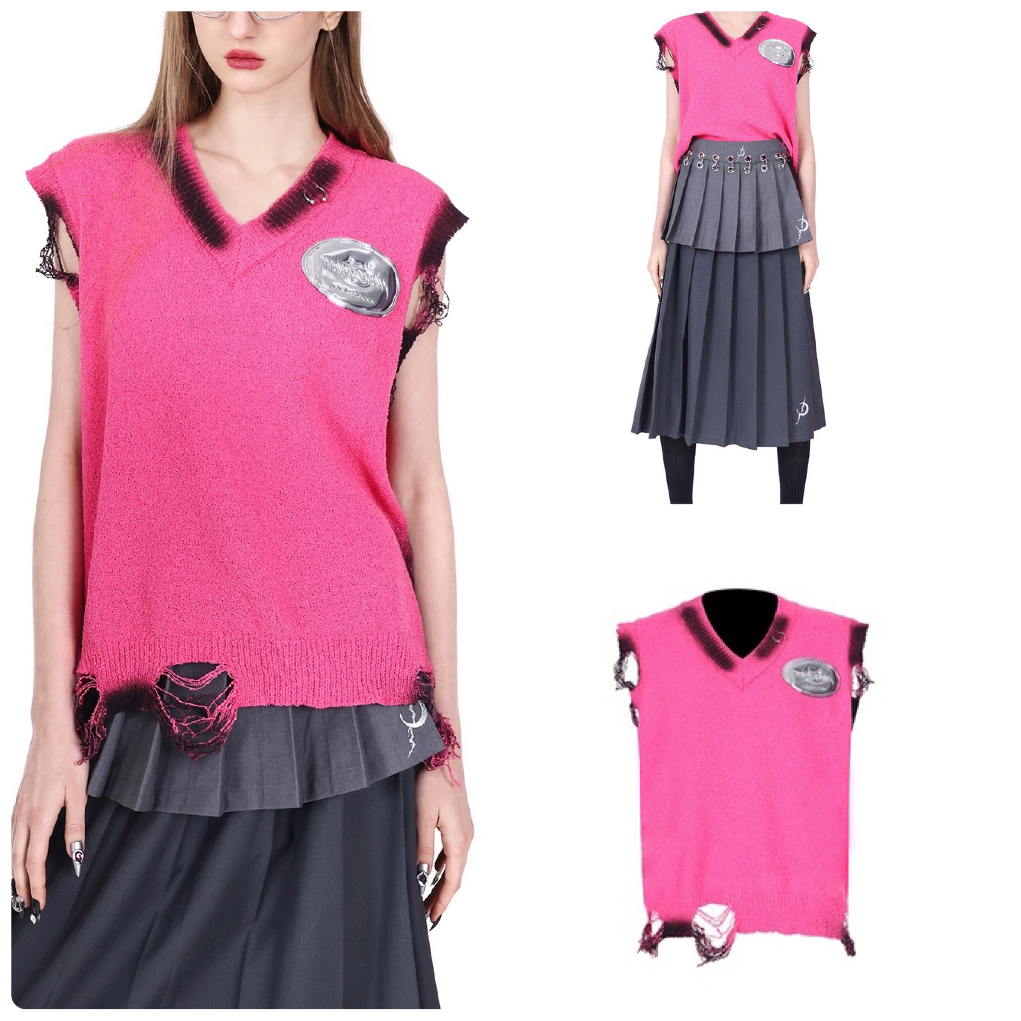 ダメージ セーター トップス ニット ピンク カーディガン ブラウス アウター