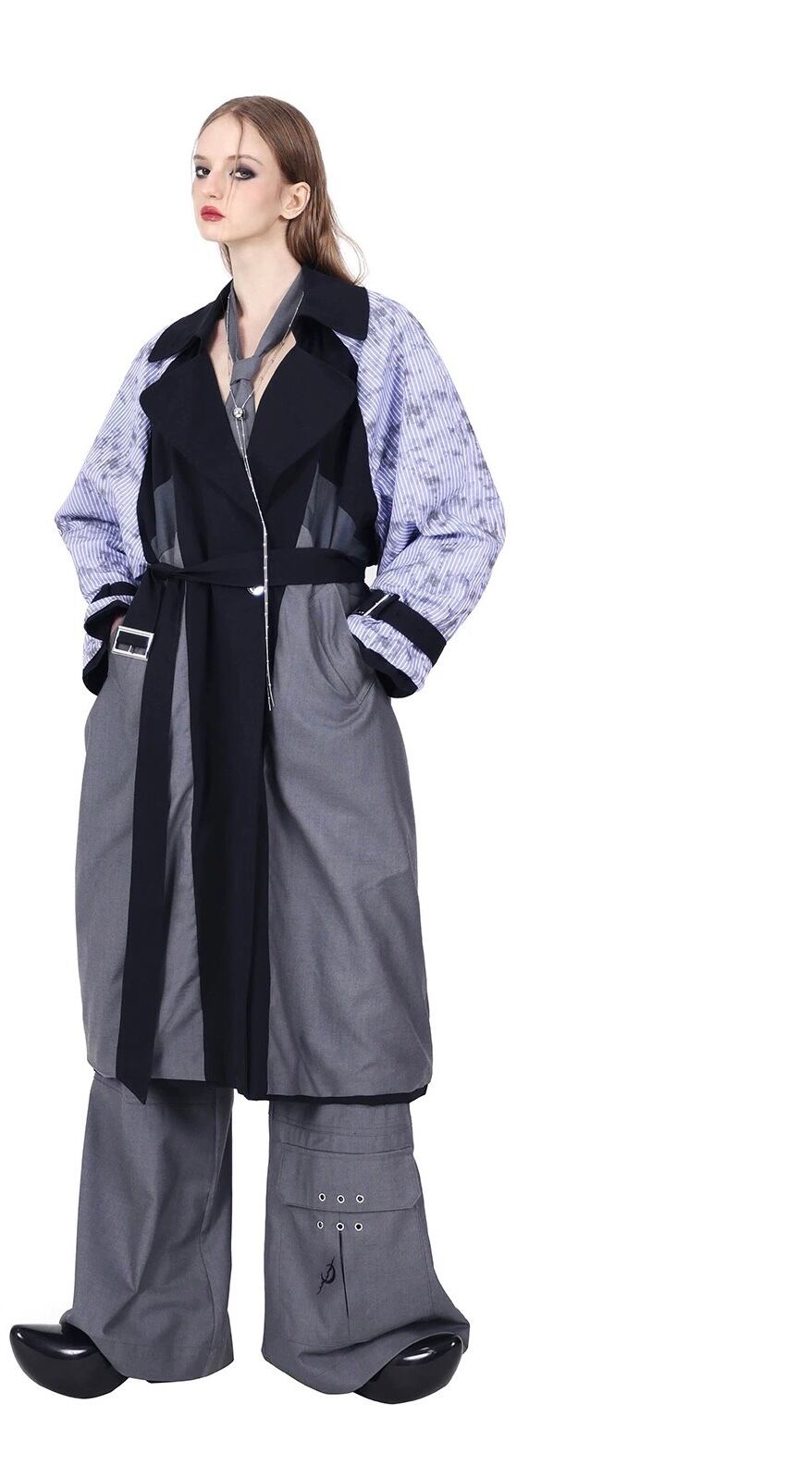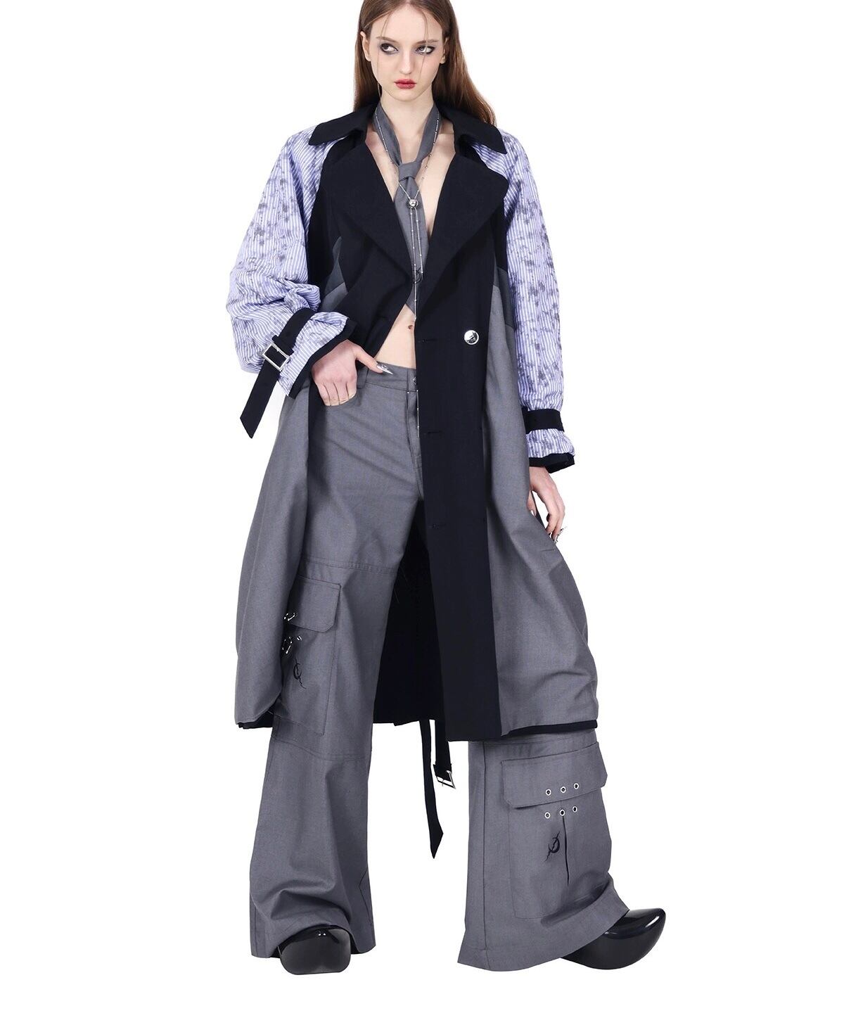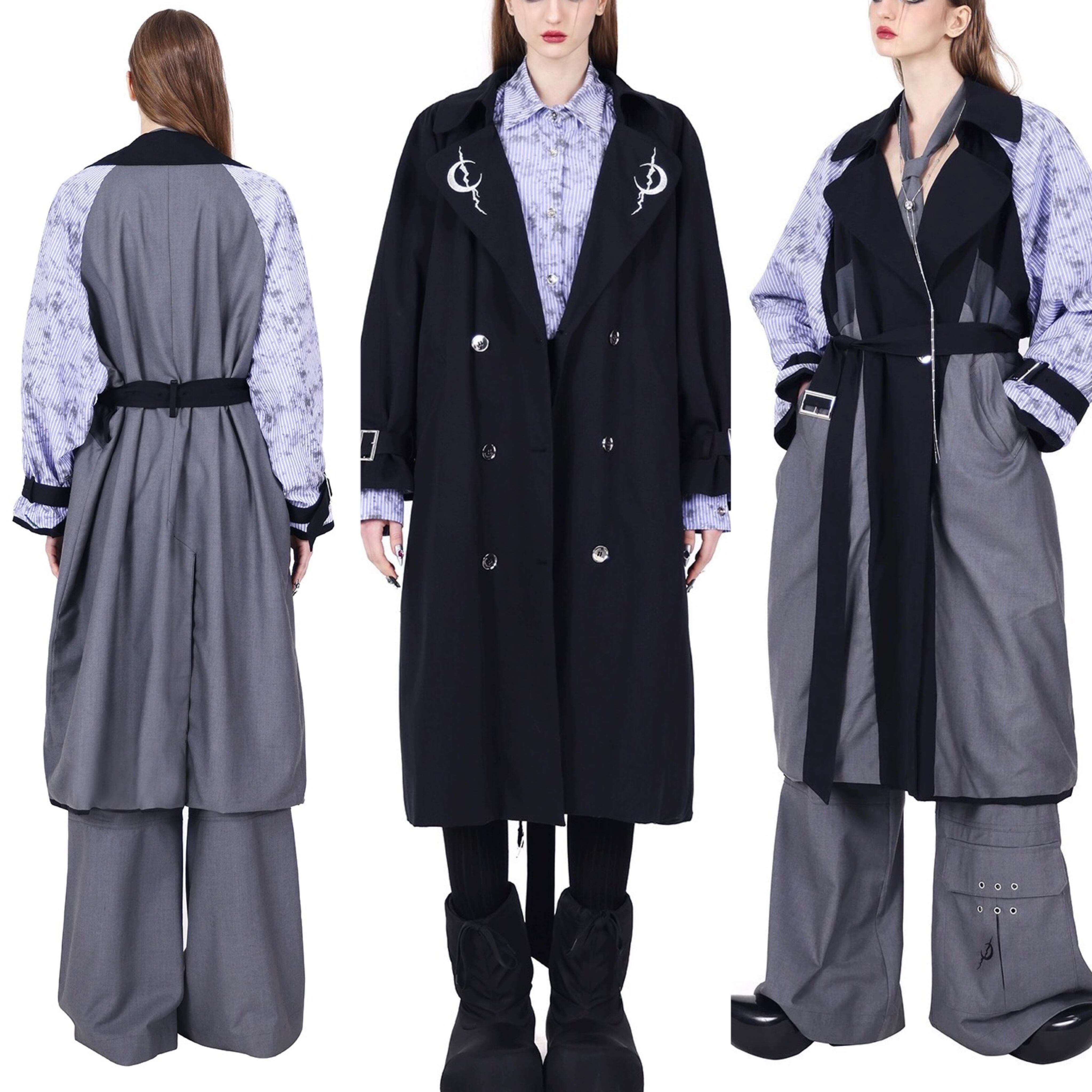 【リバーシブル】スプリングコート ジャケット アウター コート グレー ストリート モード 水色 ジャケット