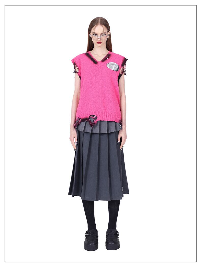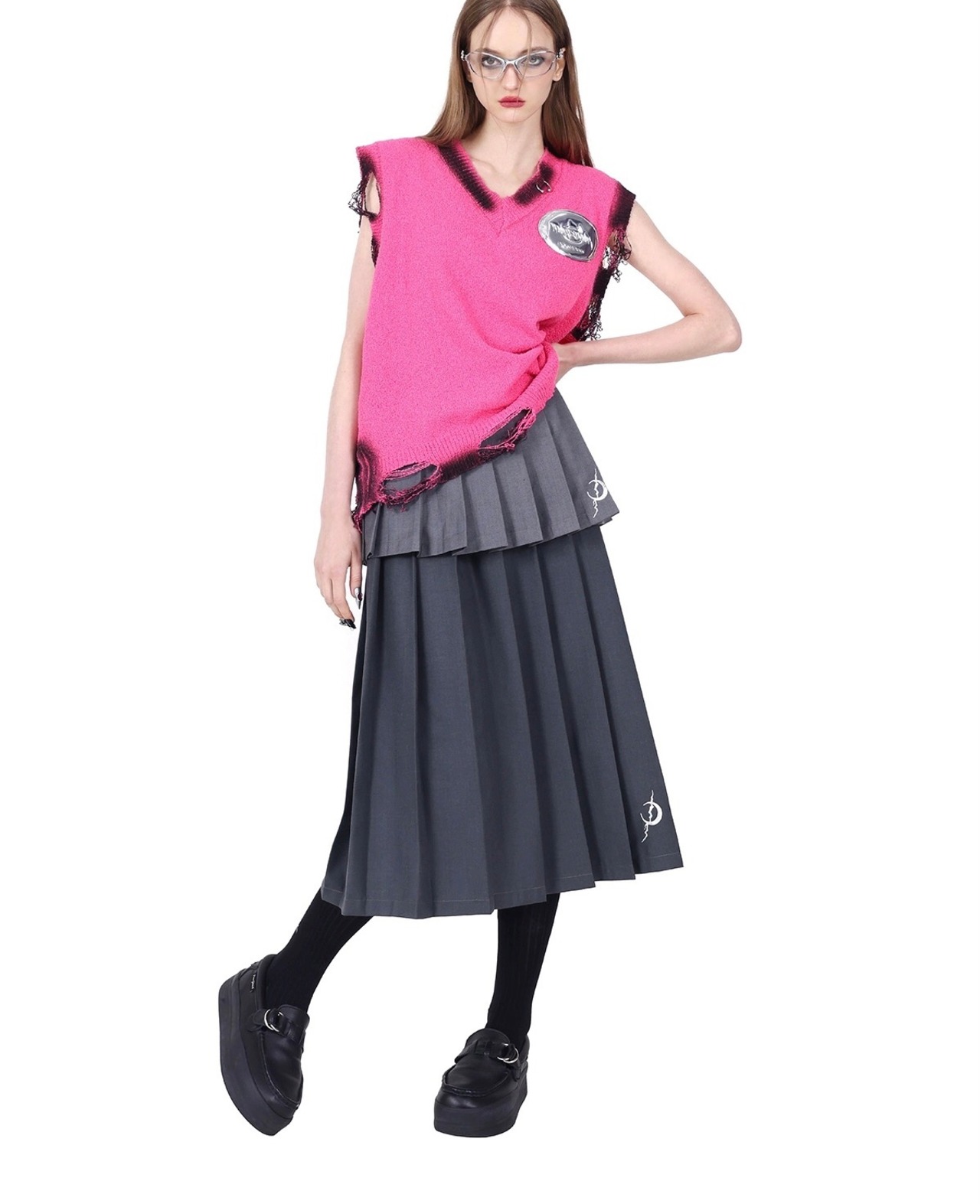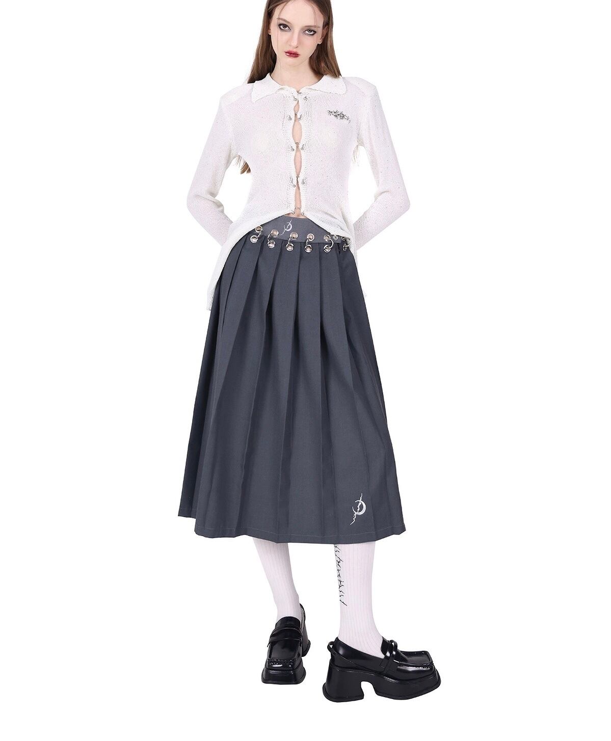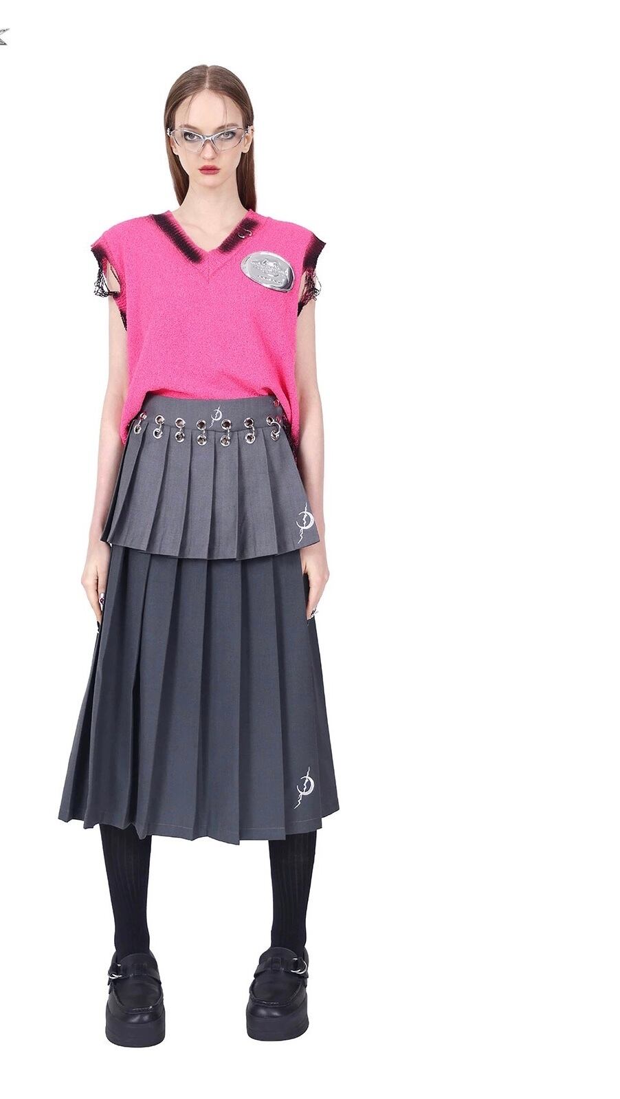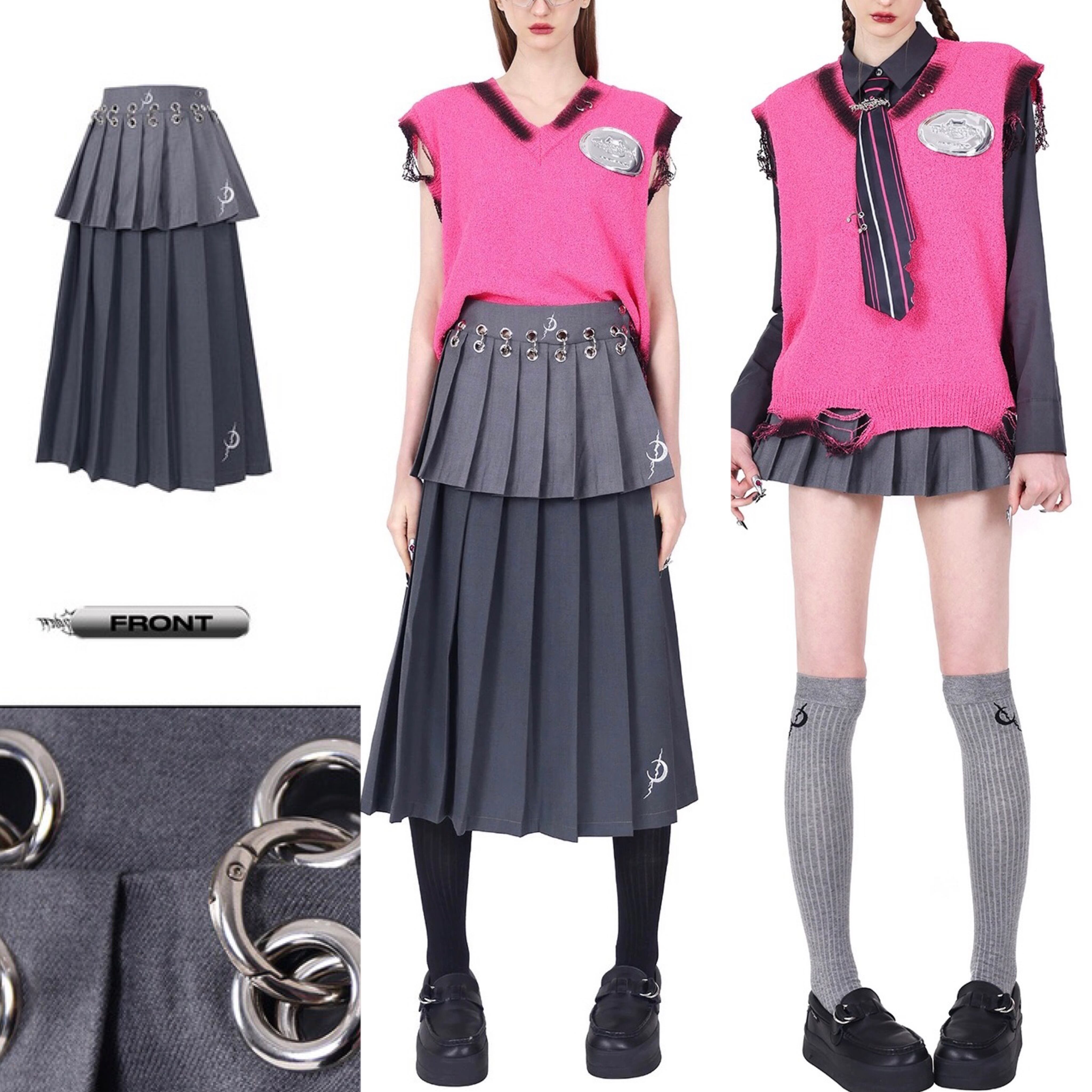 【3way】スカート プリーツ グレー スクール 制服 マキシ ミニスカート インナー