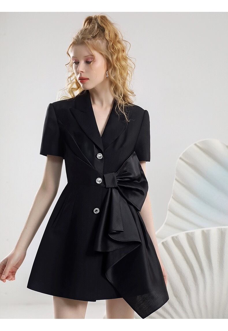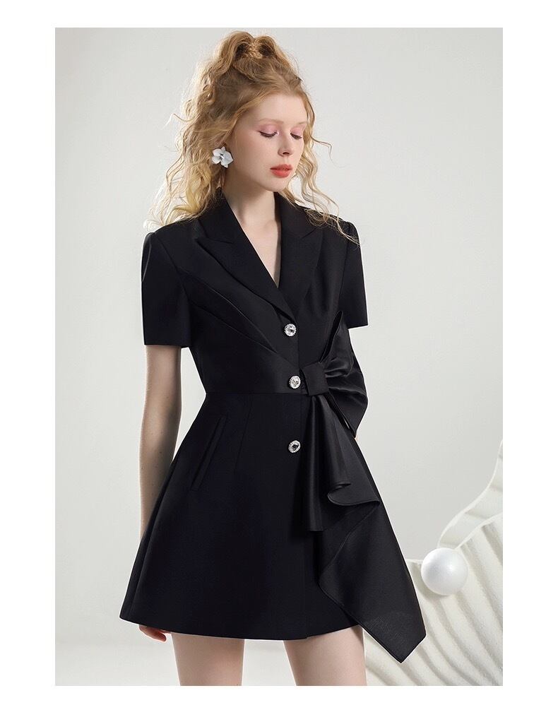 ジャケット ワンピース 黒 エレガント リボン お嬢様 ブラック