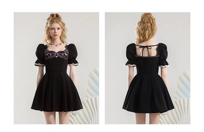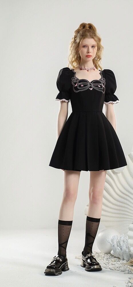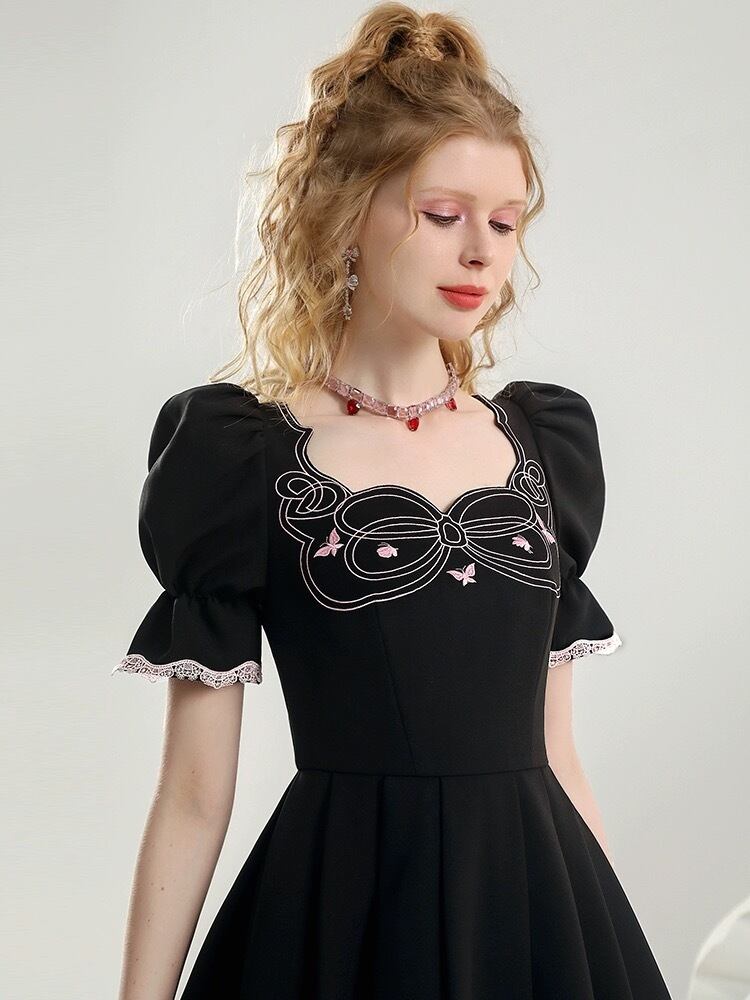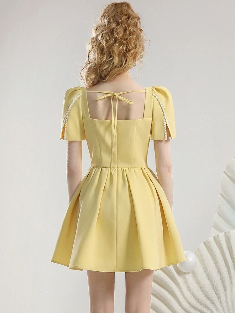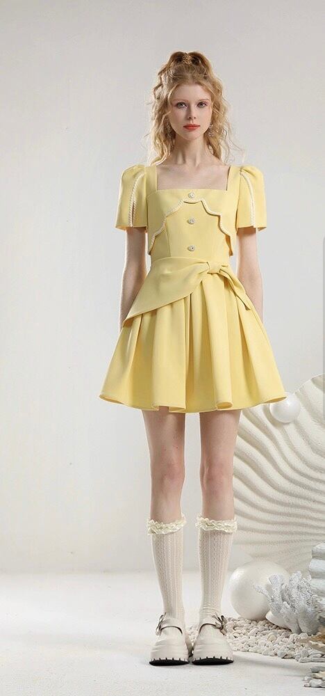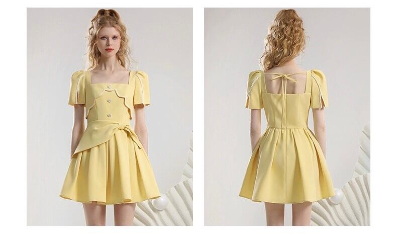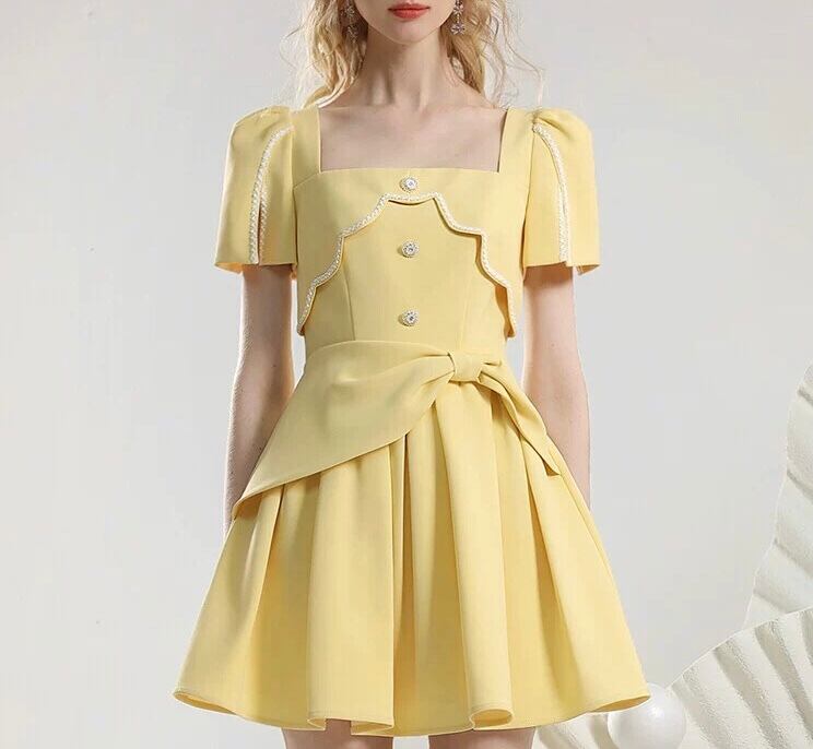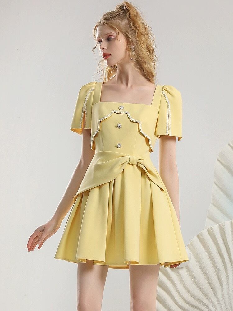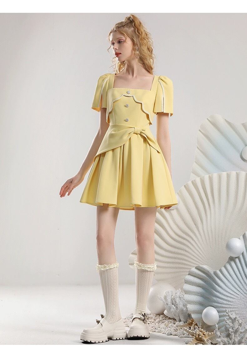 ワンピース リボン ガーリー お嬢様 エレガント 黄色 黒 ガーリー ブラウス