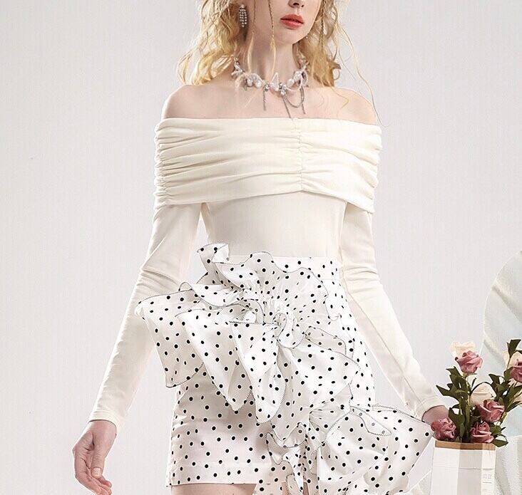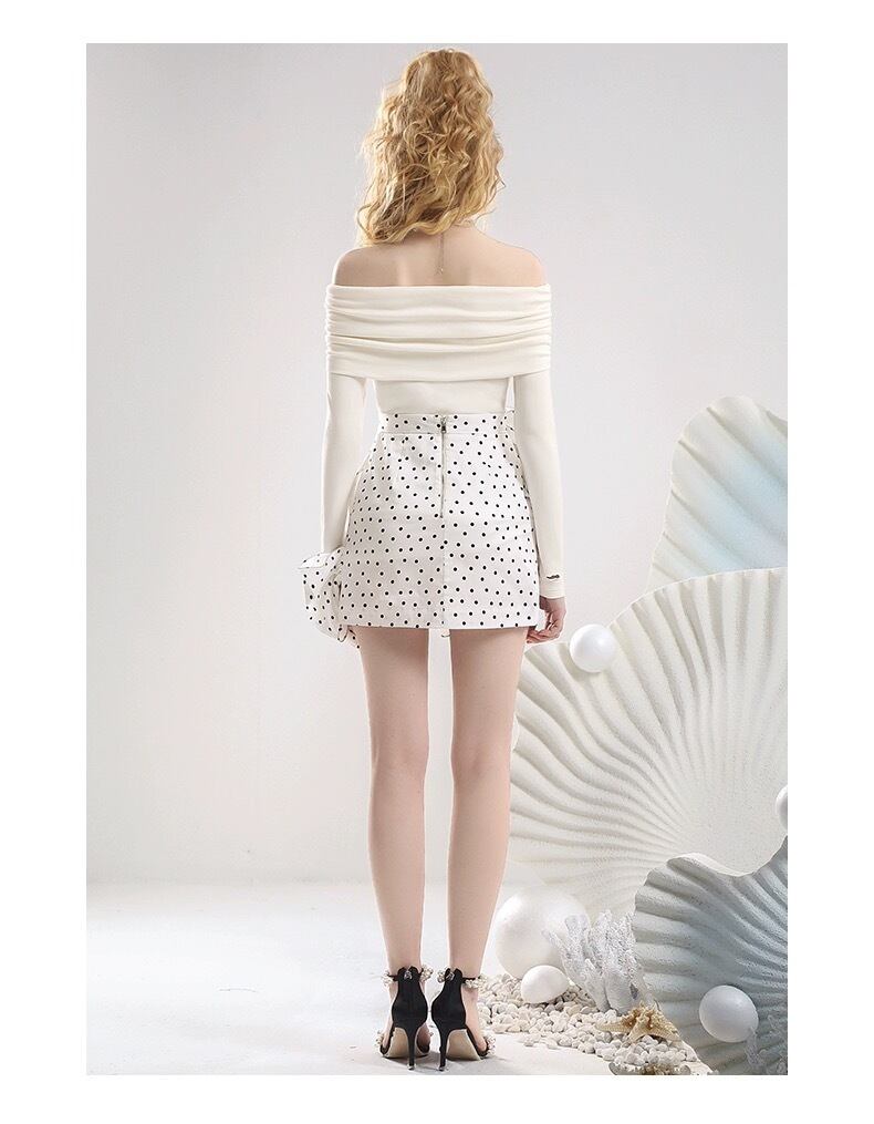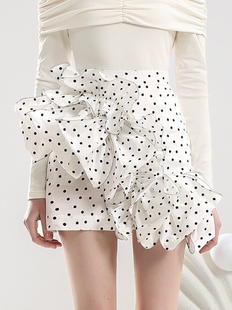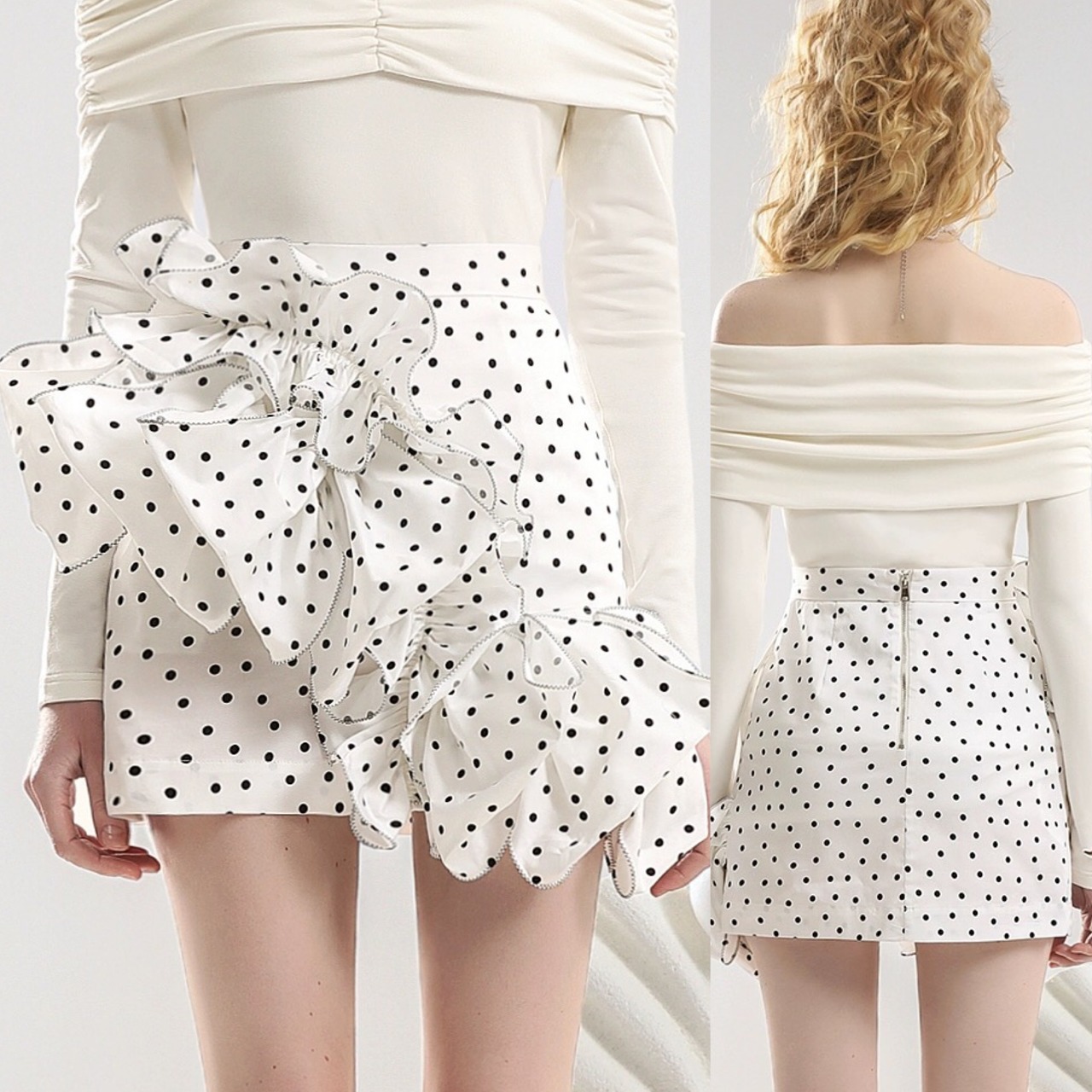 【ボトムス】水玉 スカート 白 ミニスカート ドット フリル リボン ガーリー お嬢様