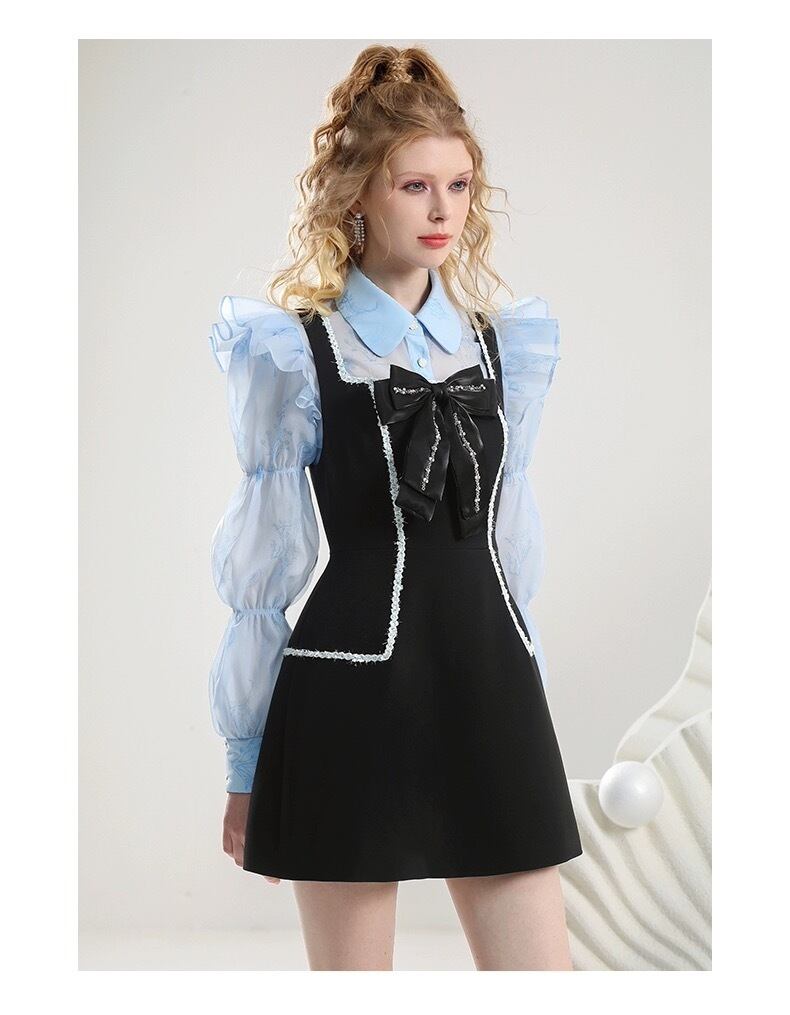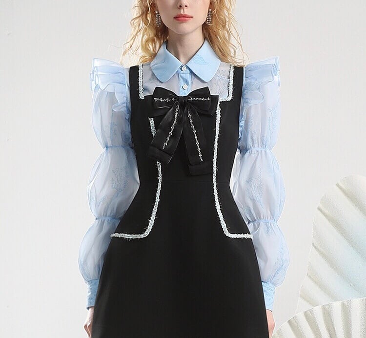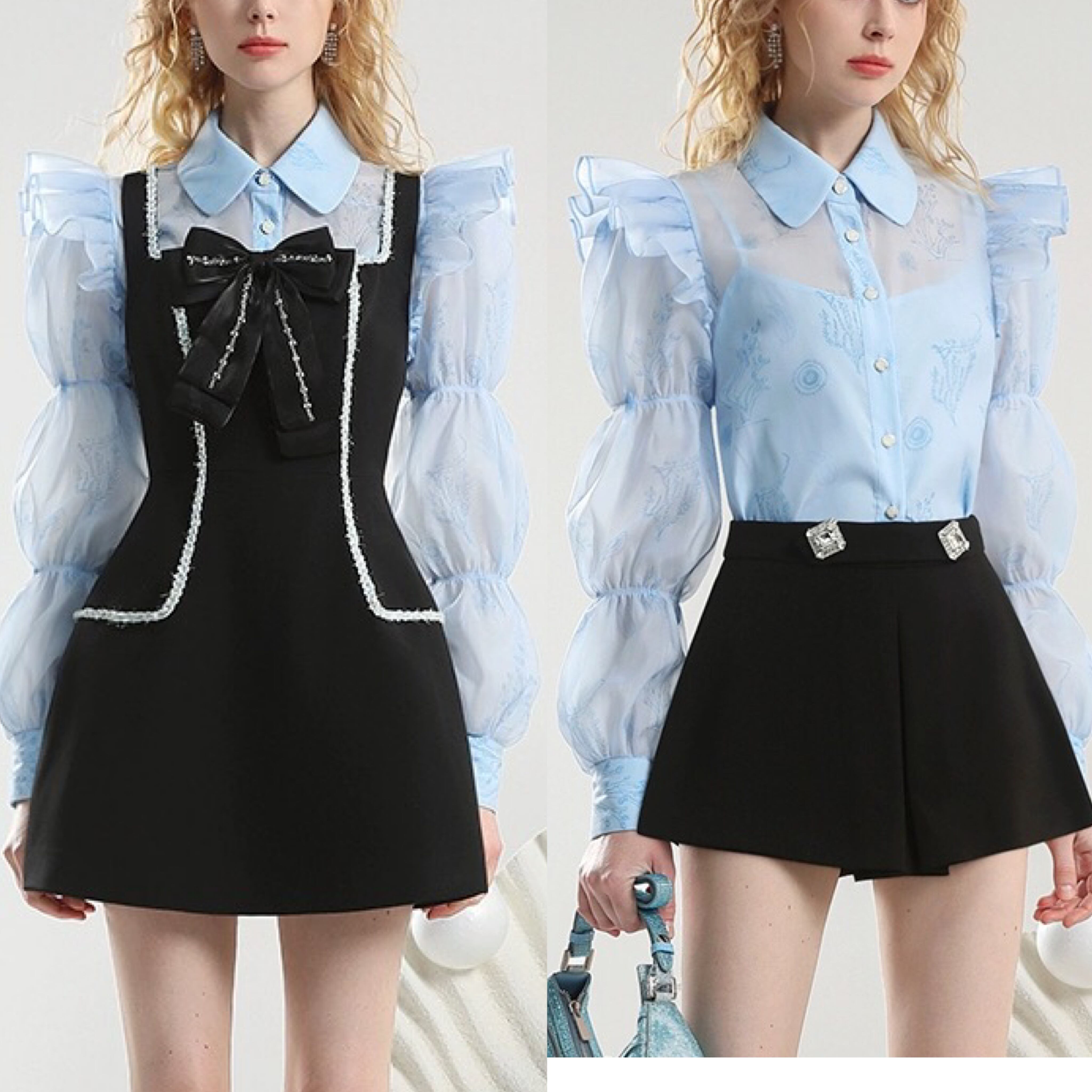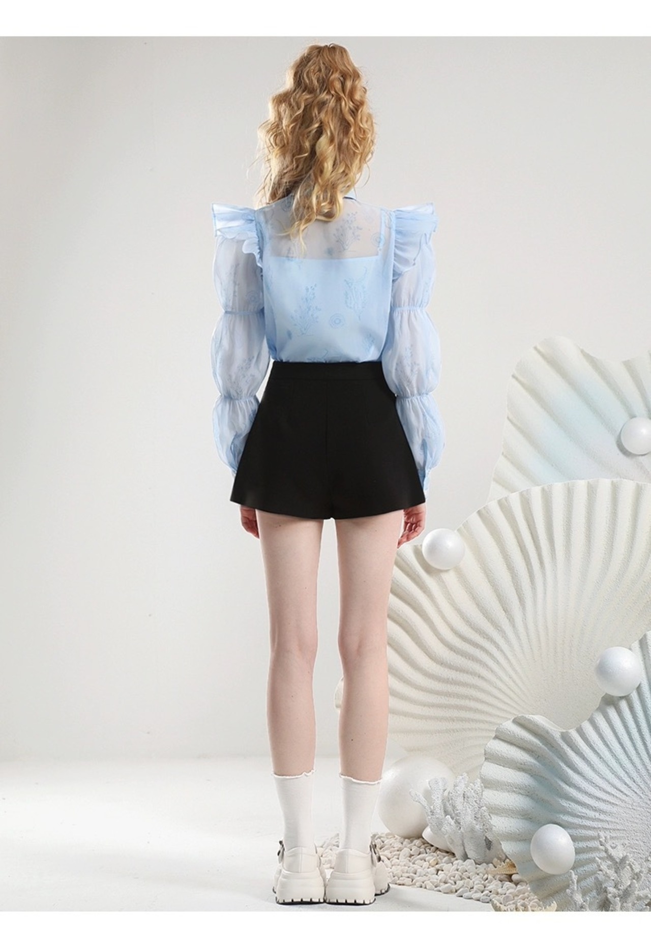 【ブラウス】水色 レース エレガント トップス ガーリー 可愛い