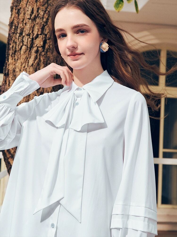ブラウス 白 リボン 爽やか シャツ トップス シンプル ホワイト