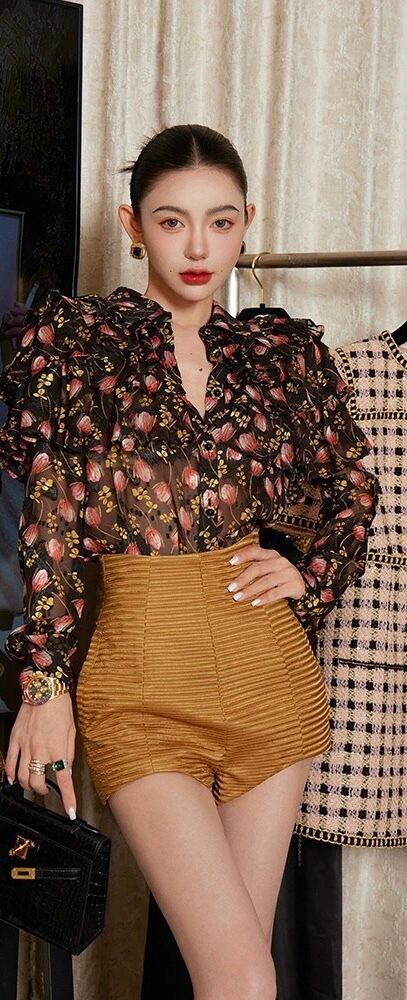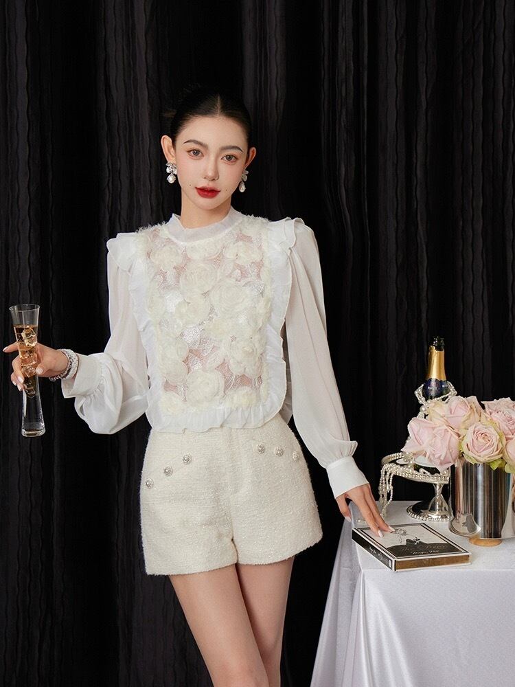 【ボトムス】白 オレンジ ショートパンツ スカート ミニスカート 白 お嬢様 エレガント