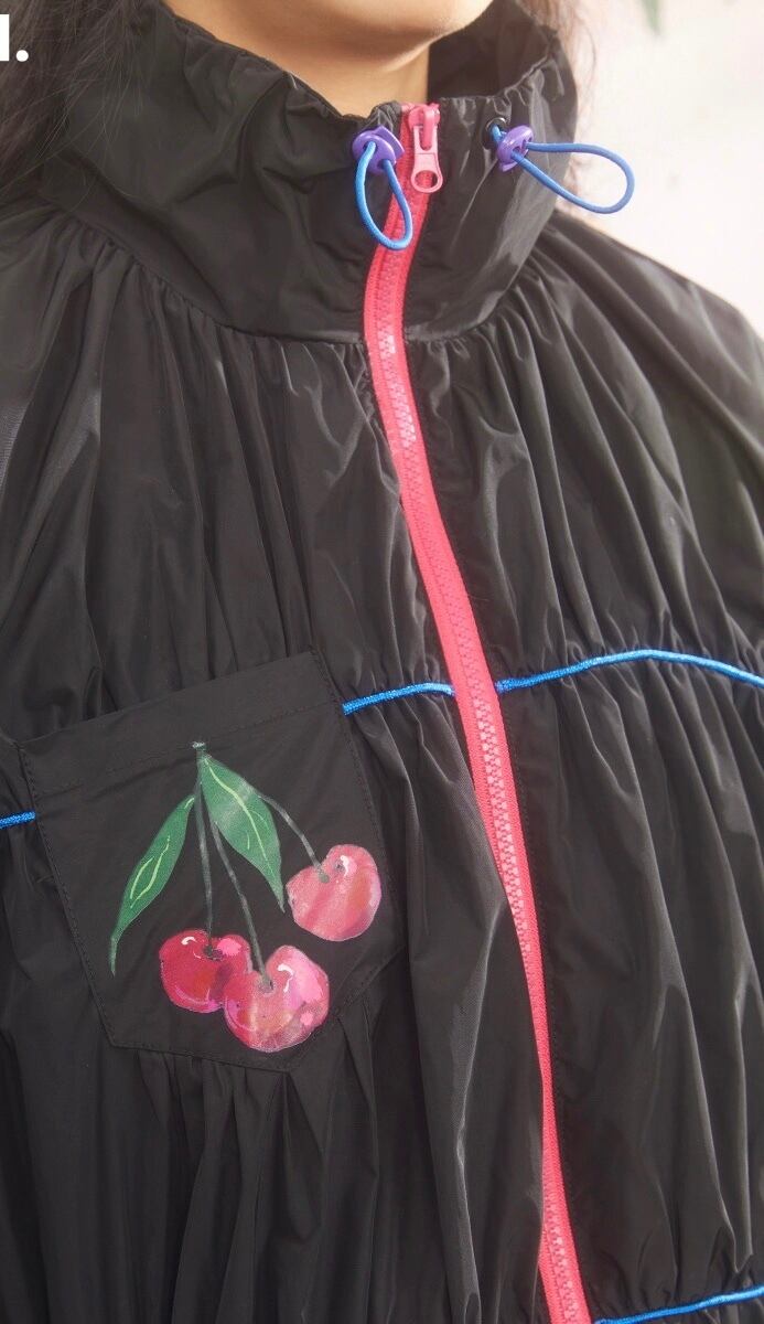 【ジャンパー】黒 さくらんぼ ジャケット カーディガン ズウエスト 黒