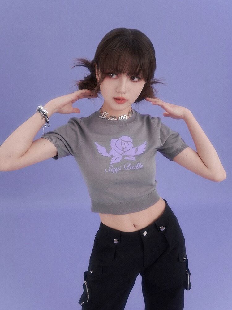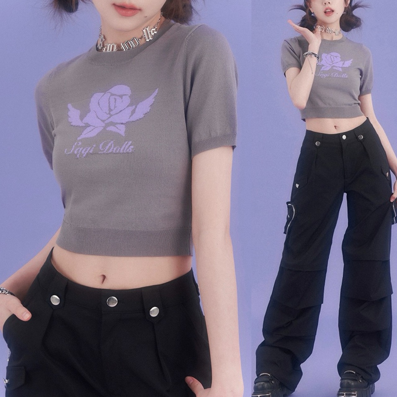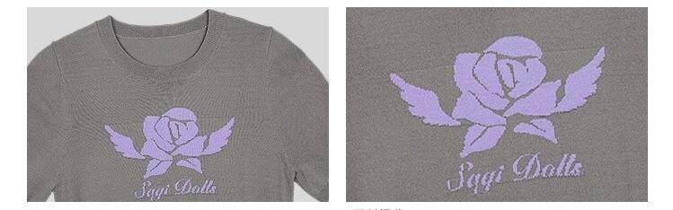 グレー ガーリー トップス セーター 紫 薔薇 フラワー ブラウス カーディガン