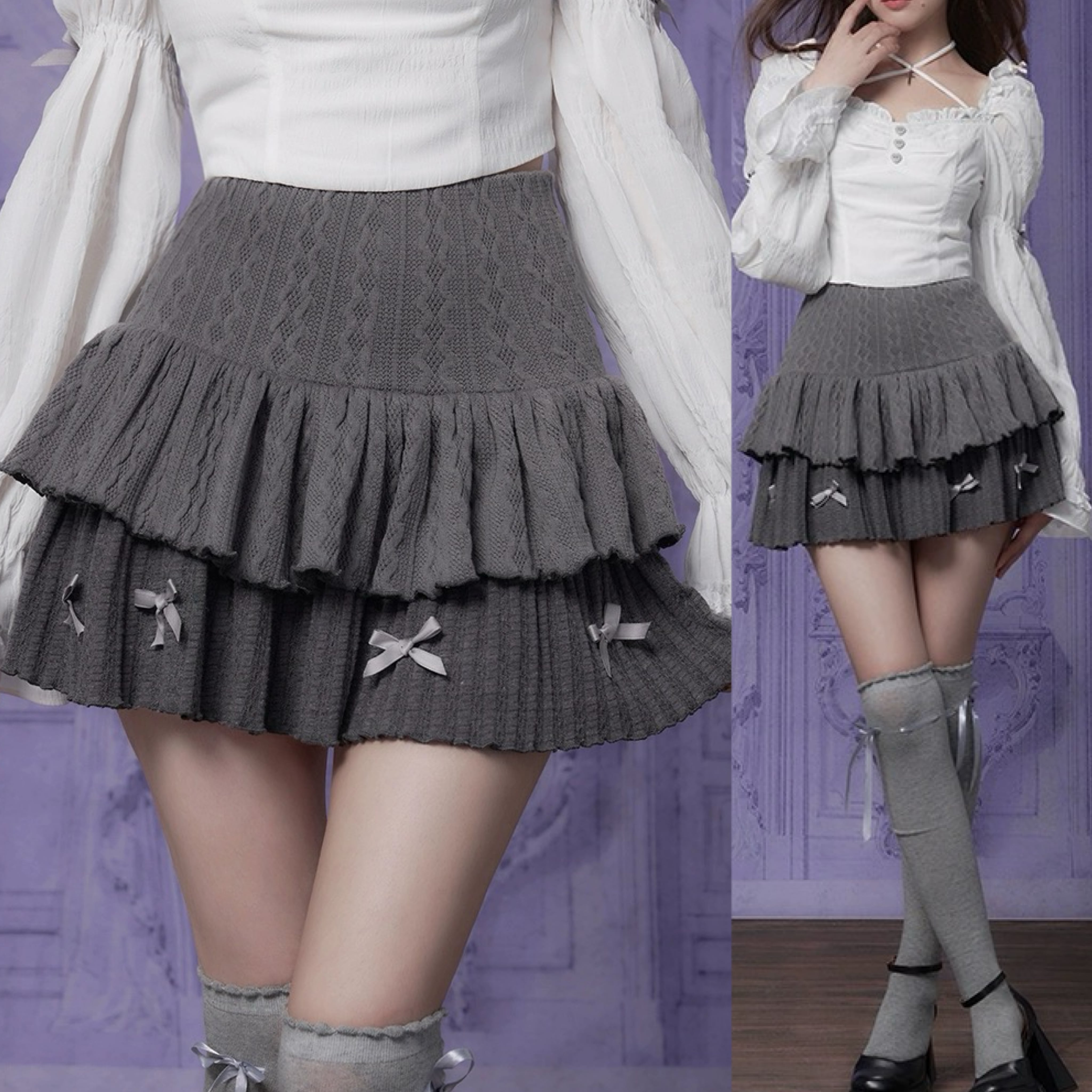 スカート ボトムス グレー リボン ニット カジュアル ガーリー