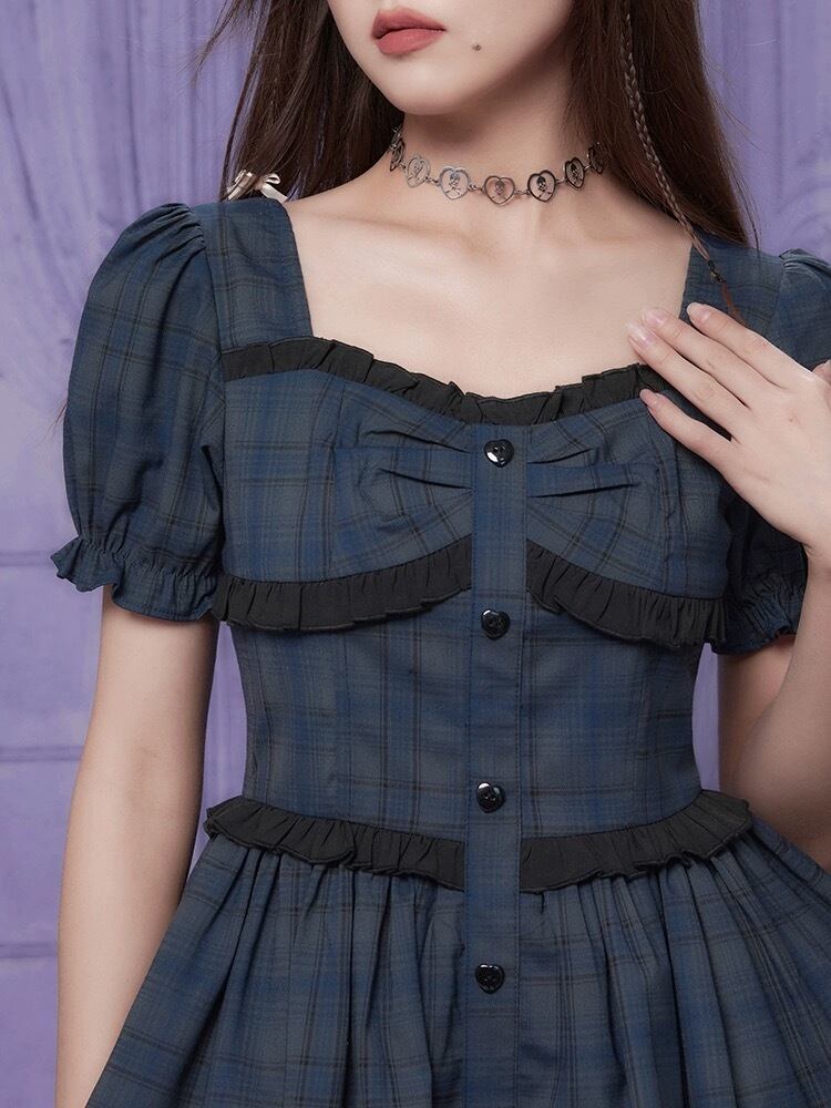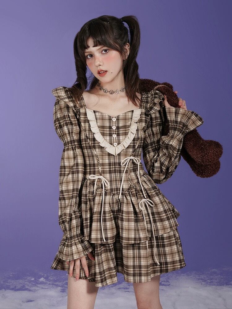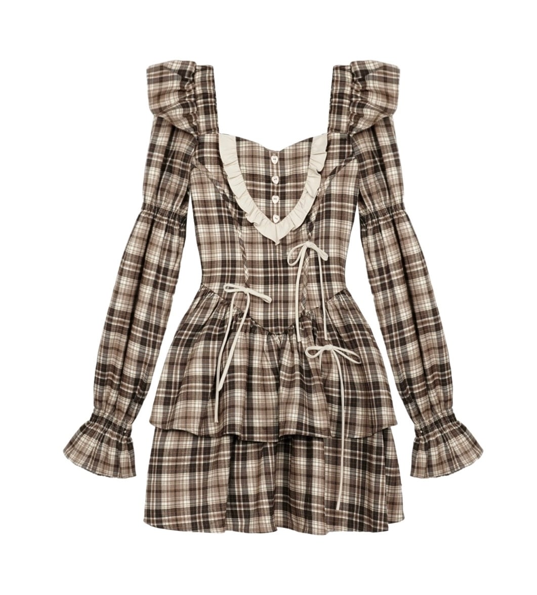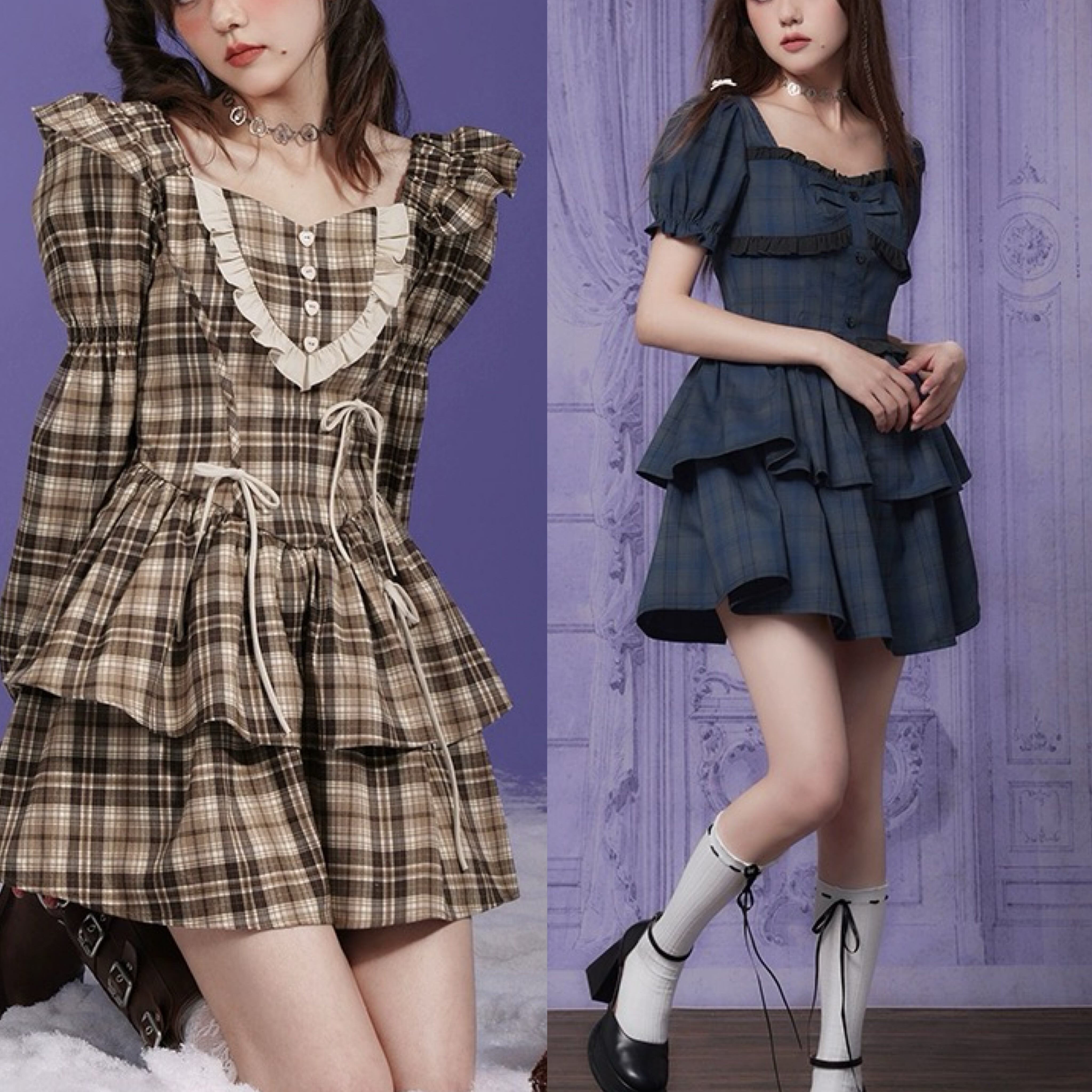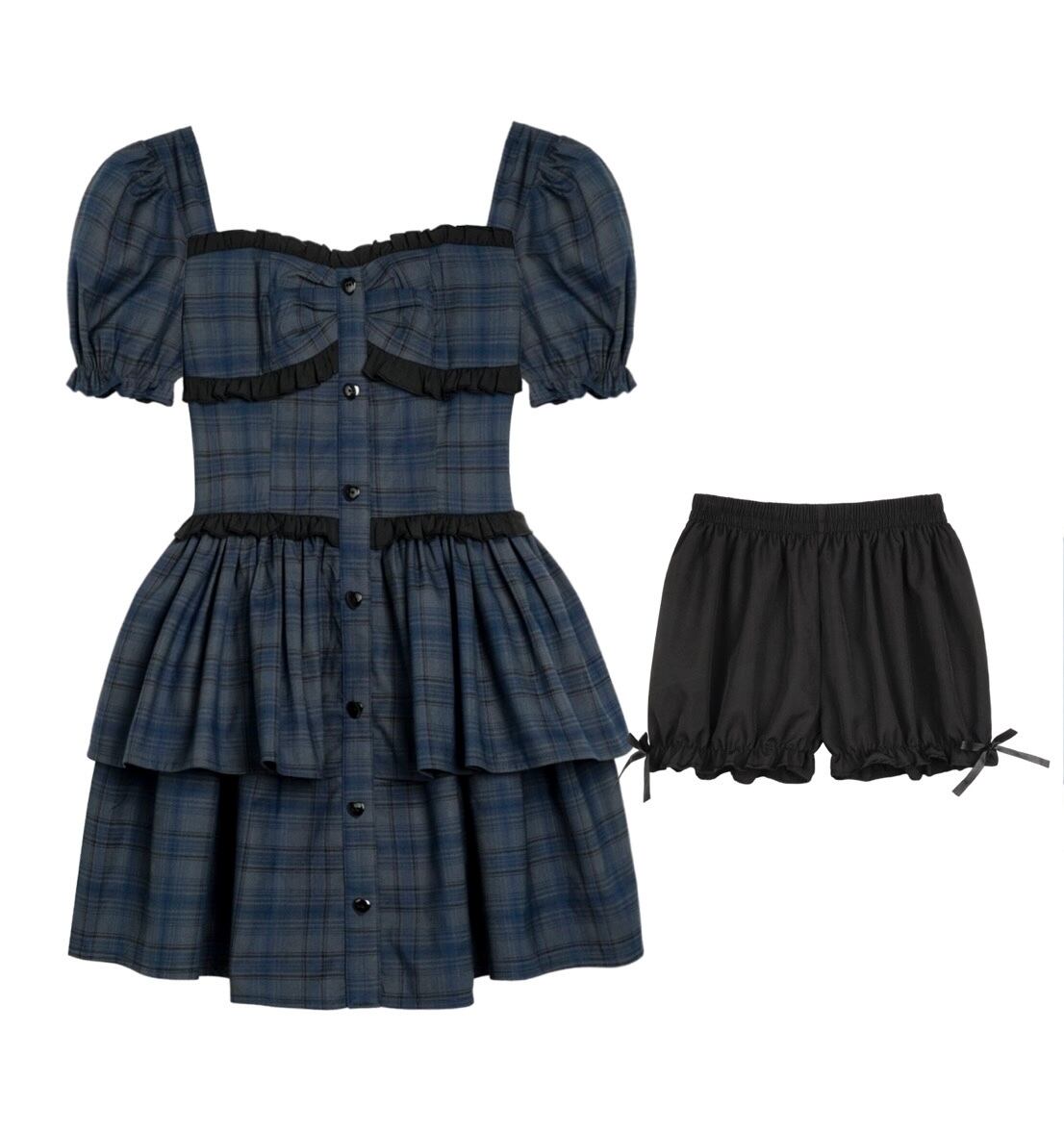 チェック ワンピース ベージュ 黒 ネイビー ブラウス ミニスカート