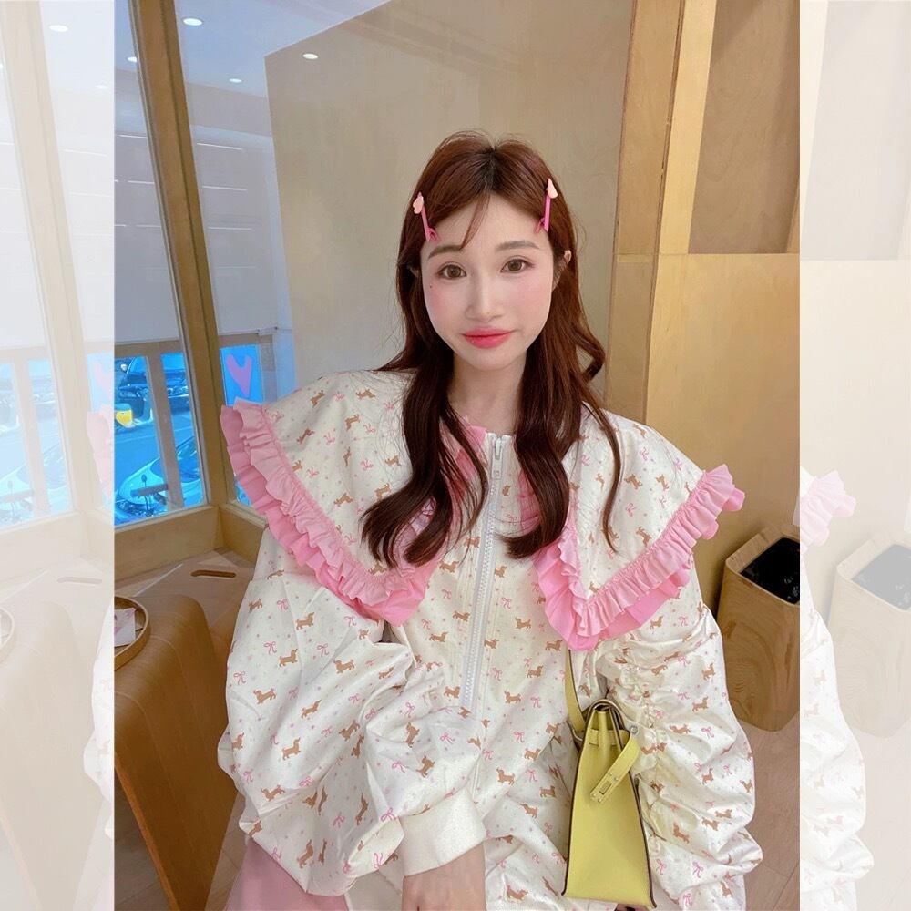 ピンク 花柄 フラワー ジャケット ジャンパー ピンク カーディガン アウター コート 可愛い 原宿