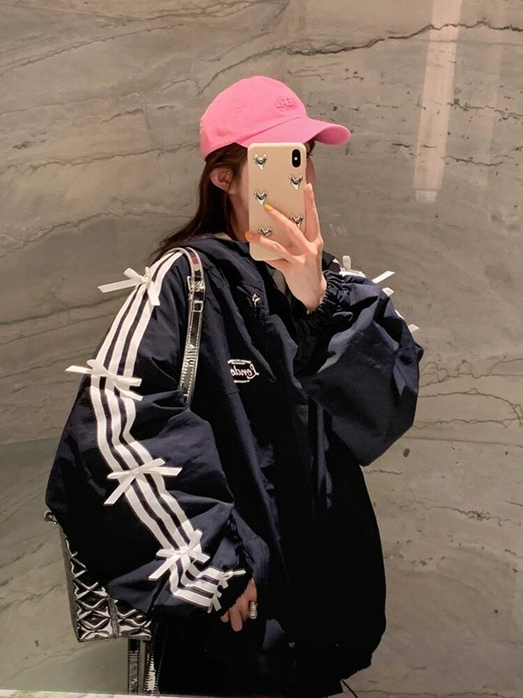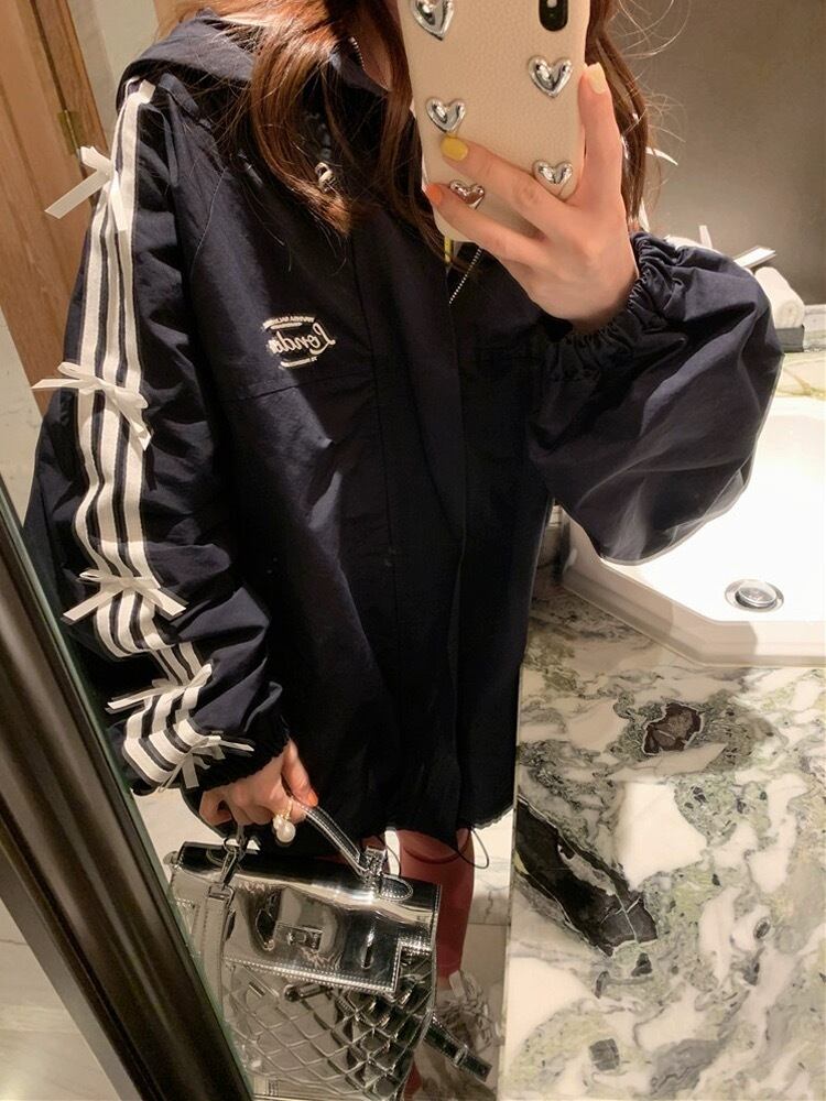 ジャケット ジャンパー アウター カジュアル スウェット カーディガン リボン 原宿 ストリート