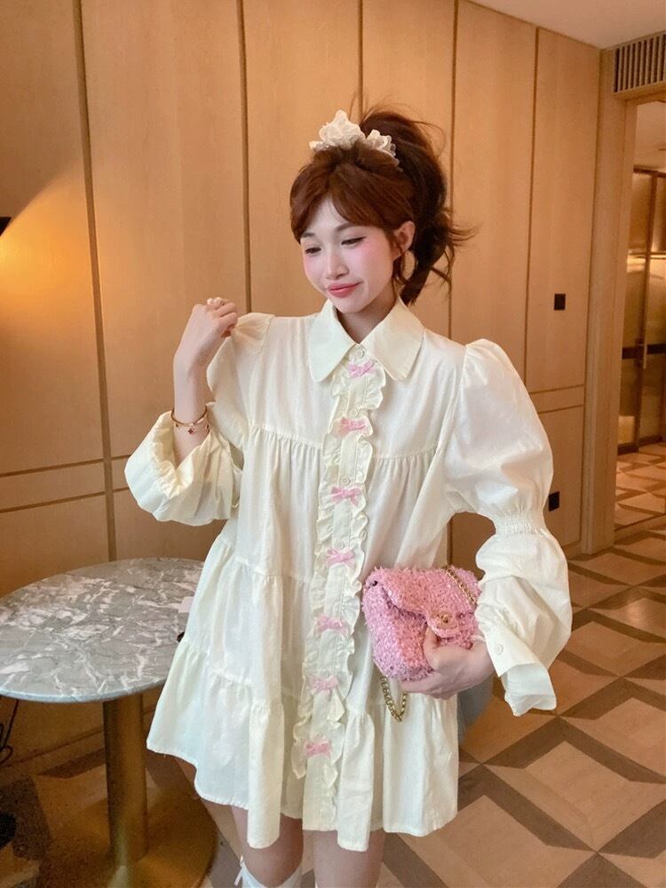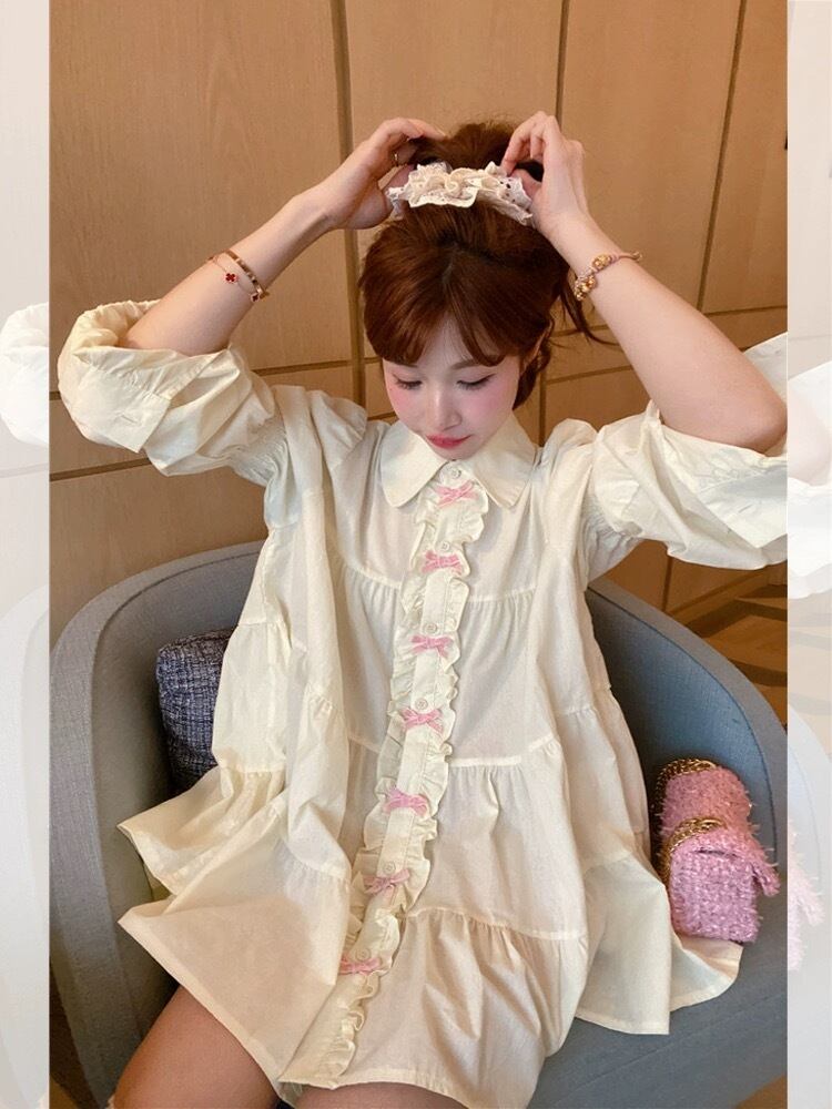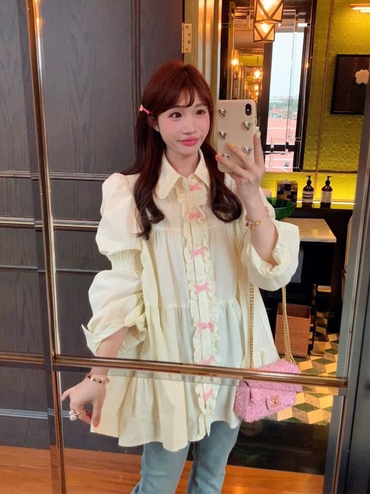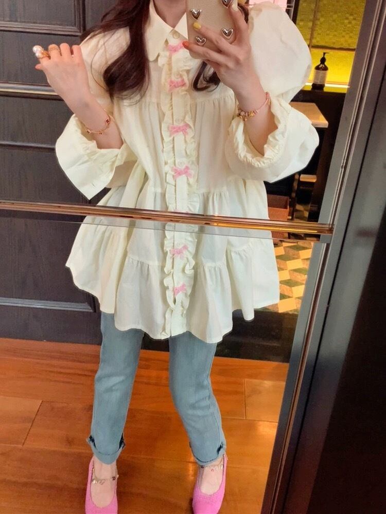 ピンク リボン ブラウス カジュアル トップス ガーリー カジュアル