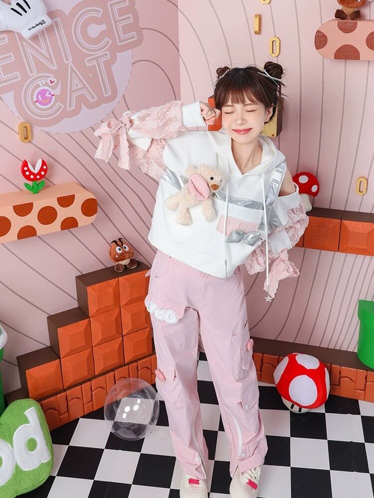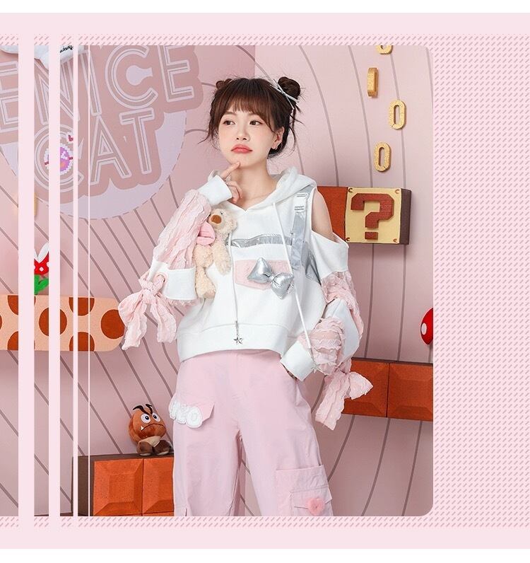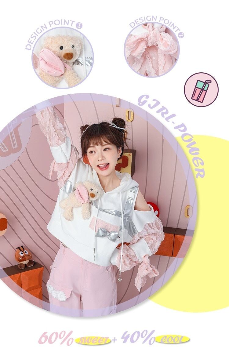 ジャケット ジャンパー リボン ピンク アウター コート オフショルダー
