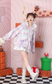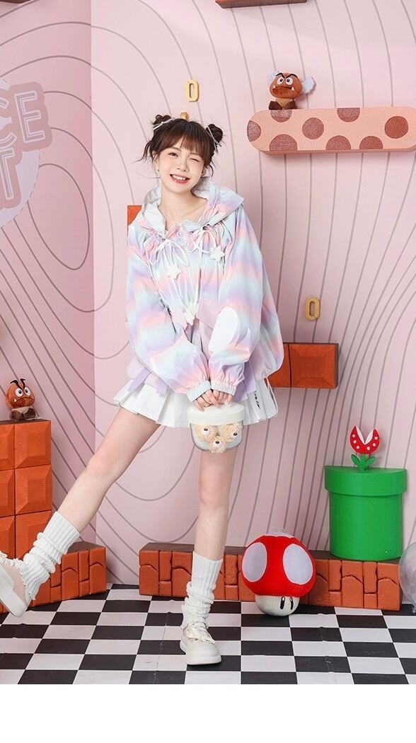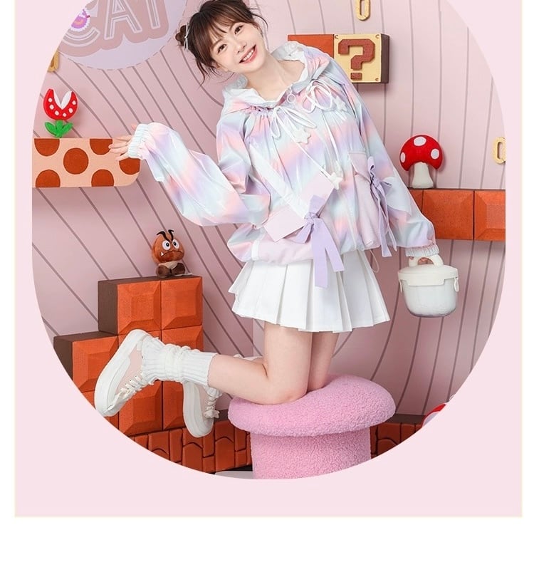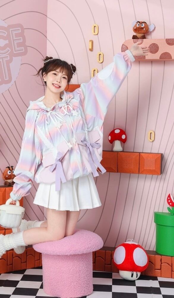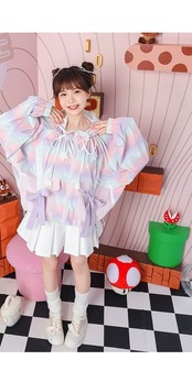 グラデーション ピンク 紫 ジャケット ジャンパー リボン ピンク アウター コート オフショルダー
