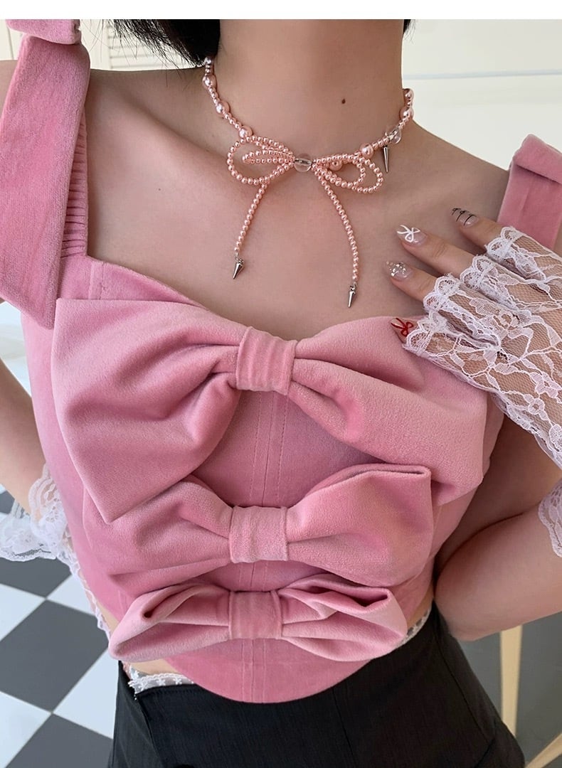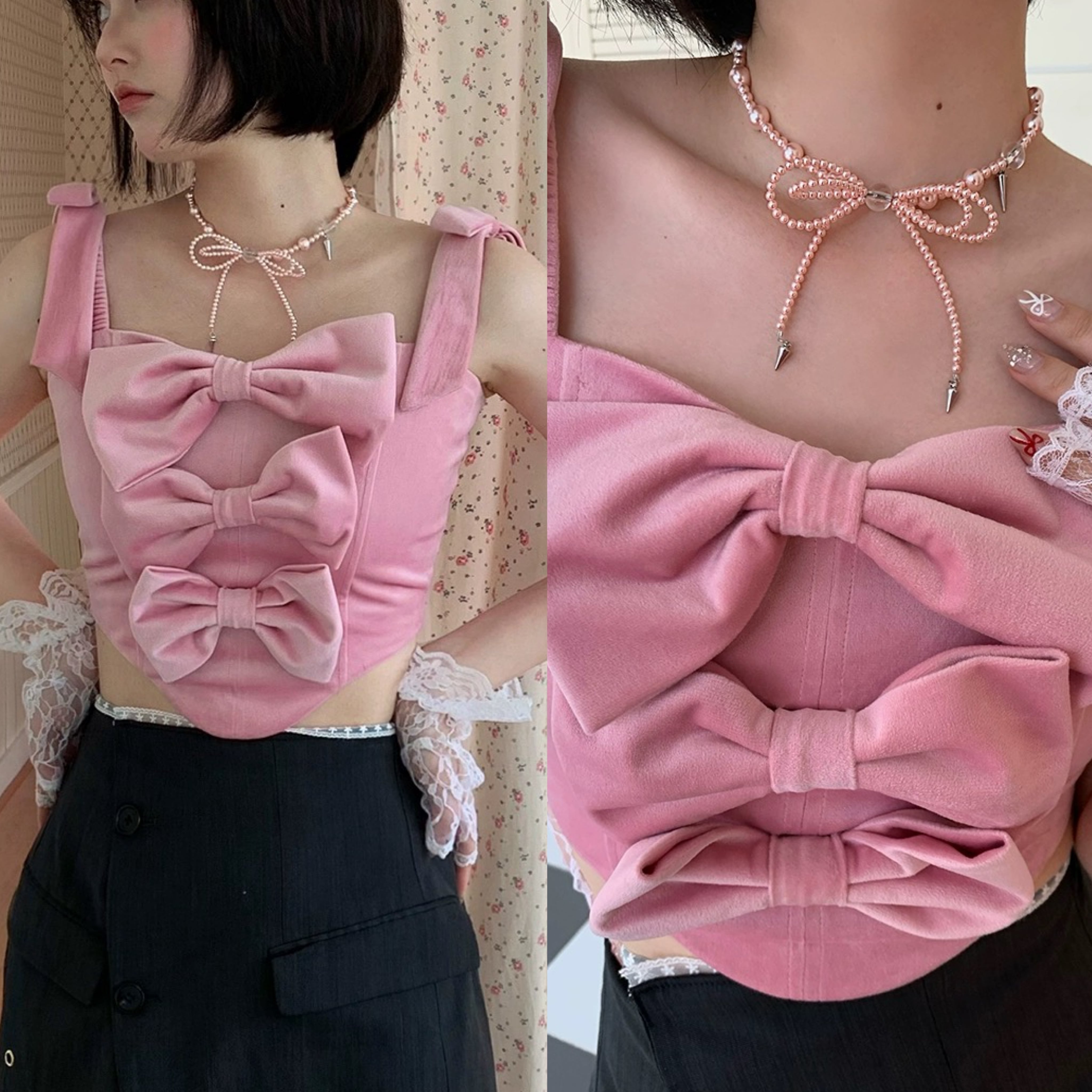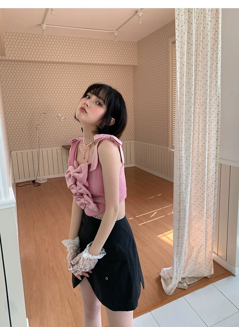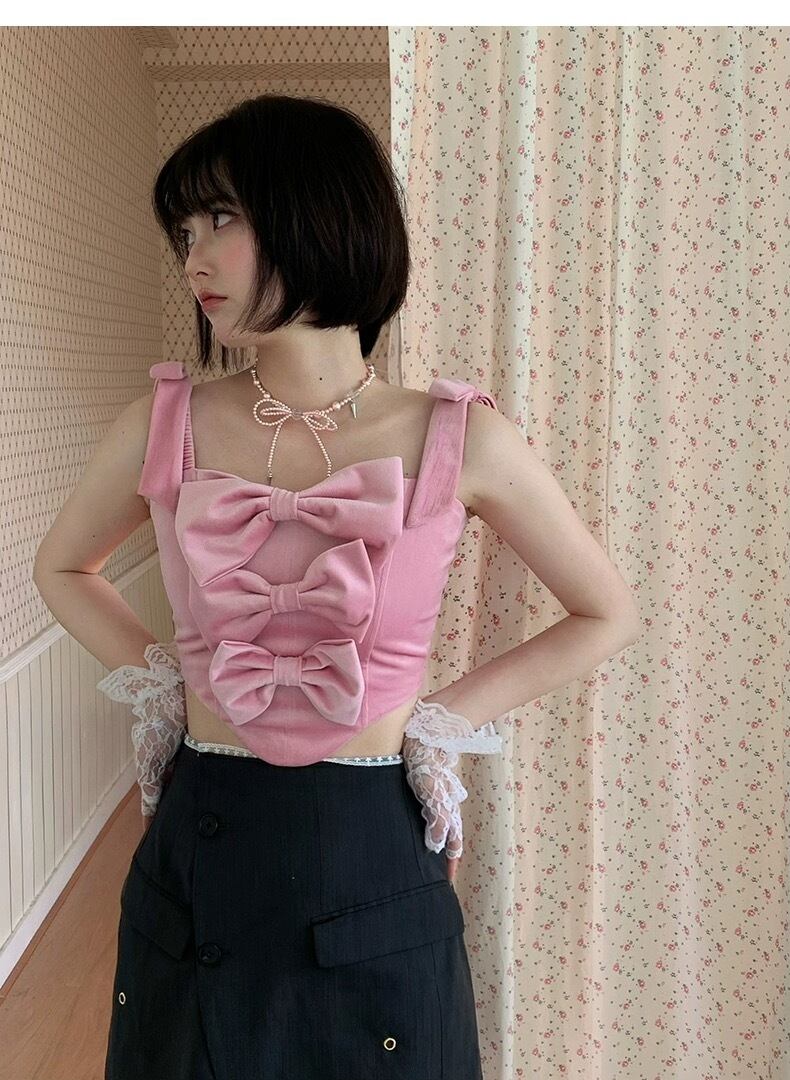 トップス ピンク リボン キャミソール 可愛い ブラウス トップス